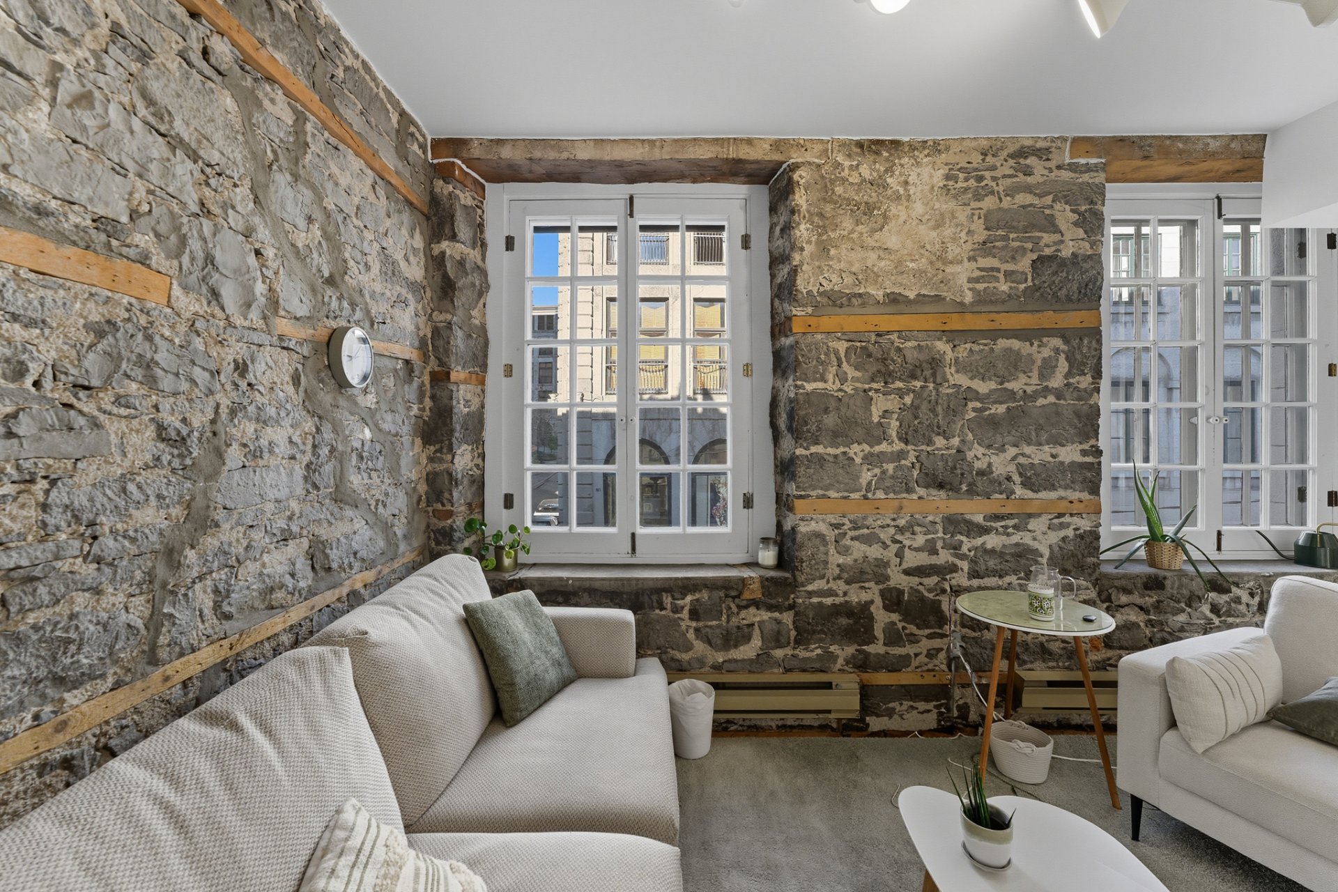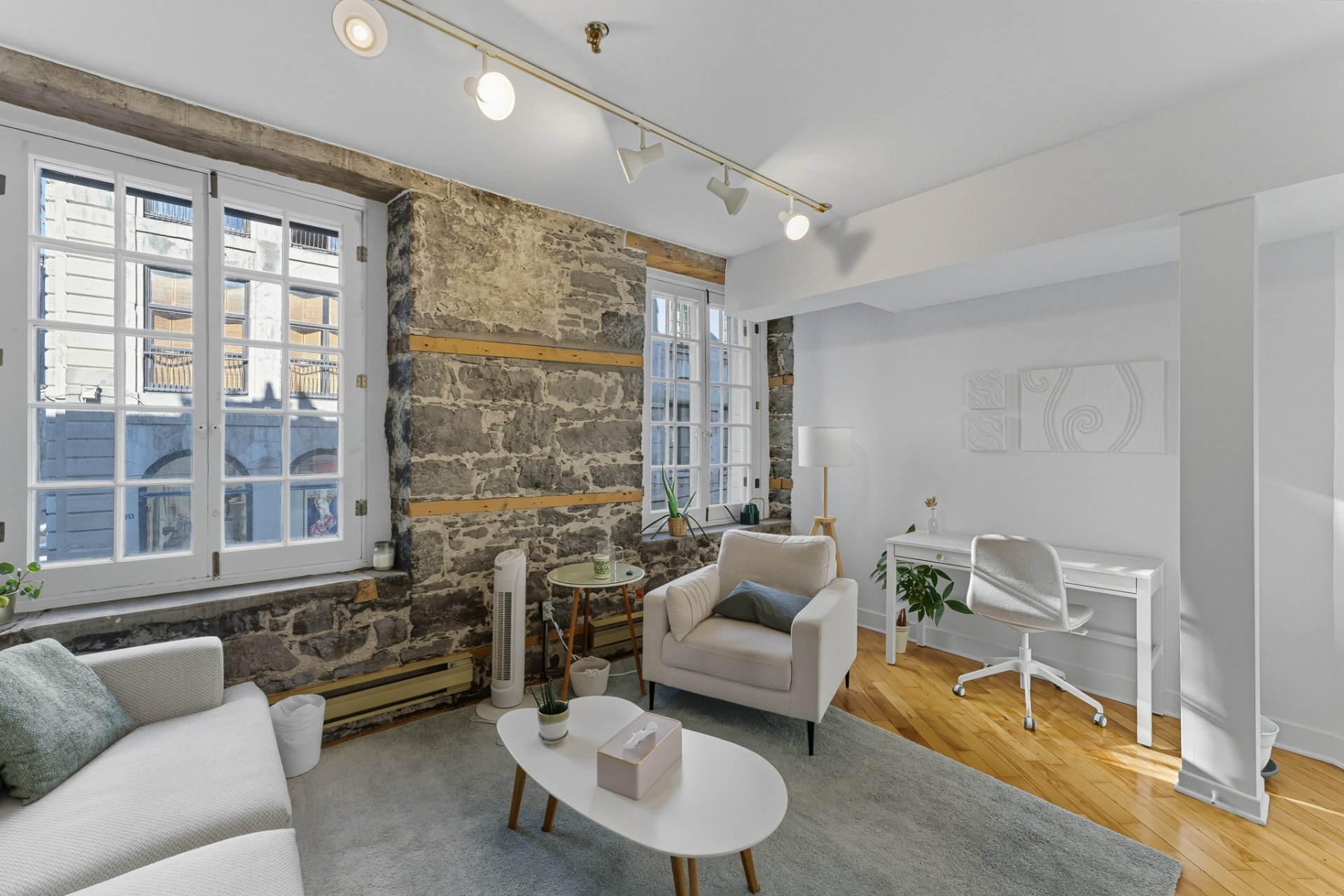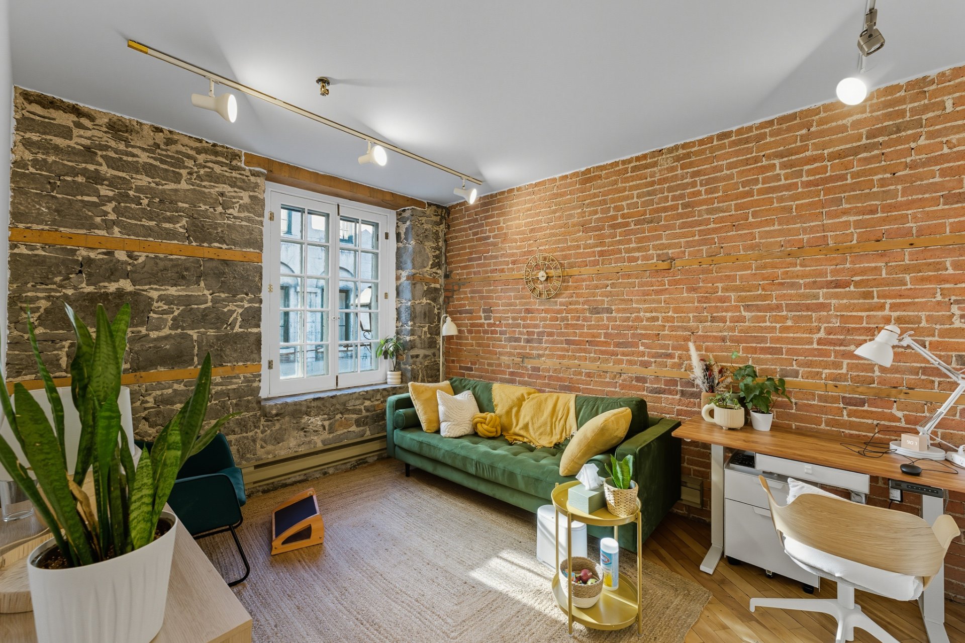 Nestled on Rue Saint-Paul Ouest, this 974 sq.ft. corner unit in a historic stone building offers a rare residential and commercial opportunity. Currently used as an office, it charms with exposed brick and stone walls, high ceilings, and large windows that flood the space with natural light. Just steps from Place Jacques-Cartier, the Old Port, restaurants, boutiques, and art galleries, this property is ideal for a one-of-a-kind living space or professional setting.
