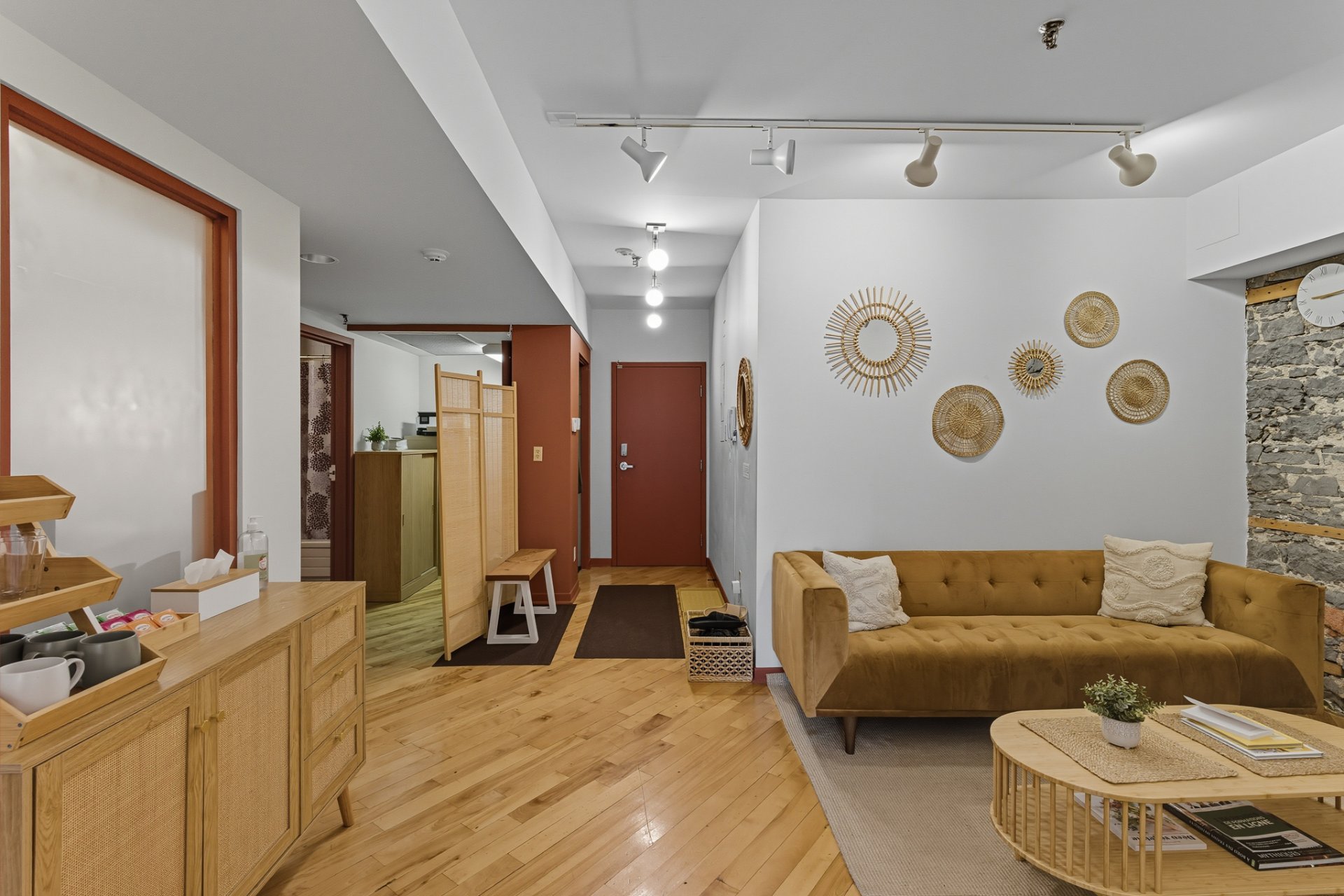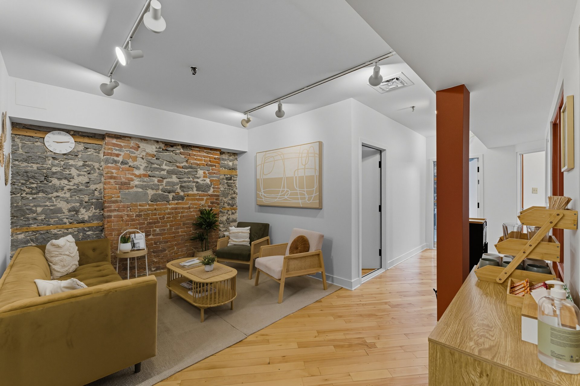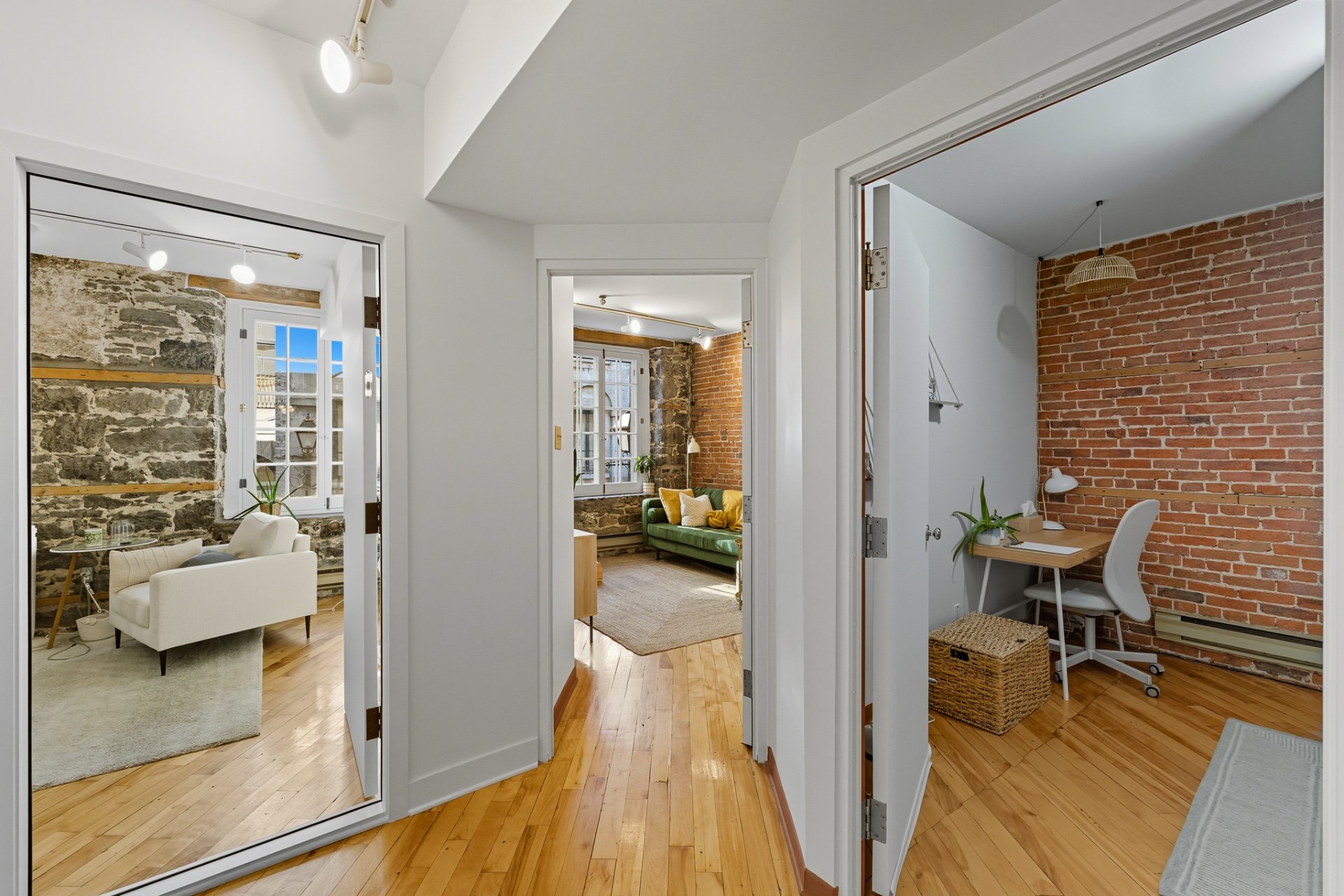 Nestled on Rue Saint-Paul Ouest, this 974 sq.ft. corner unit in a historic stone building offers a rare residential and commercial opportunity. Currently used as an office, it charms with exposed brick and stone walls, high ceilings, and large windows that flood the space with natural light. Just steps from Place Jacques-Cartier, the Old Port, restaurants, boutiques, and art galleries, this property is ideal for a one-of-a-kind living space or professional setting.