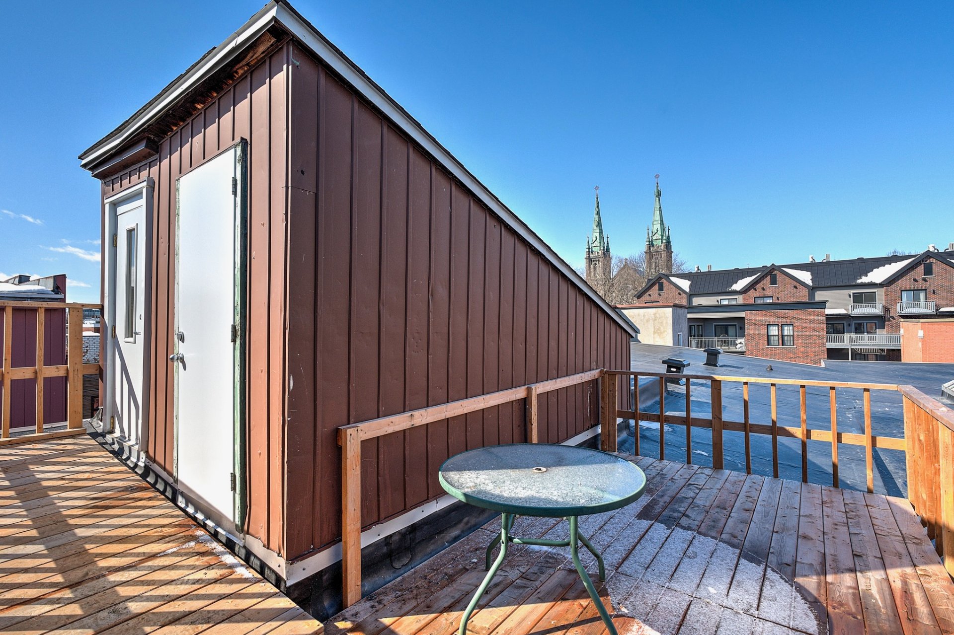 Located on Saint-Hyacinthe's main downtown artery, this iconic semi-commercial building combines historic cachet, exceptional visibility and sustained goodwill. With +/- 11,000 sq.ft. on three floors, it offers a mix of uses, including attractive commercial spaces, vacant premises offering numerous development possibilities and a rented 4.5-room apartment. Its strategic location, development potential and dynamic business environment make it a rare investment opportunity in a rapidly evolving sector. Virtual tours and lease details available on request.