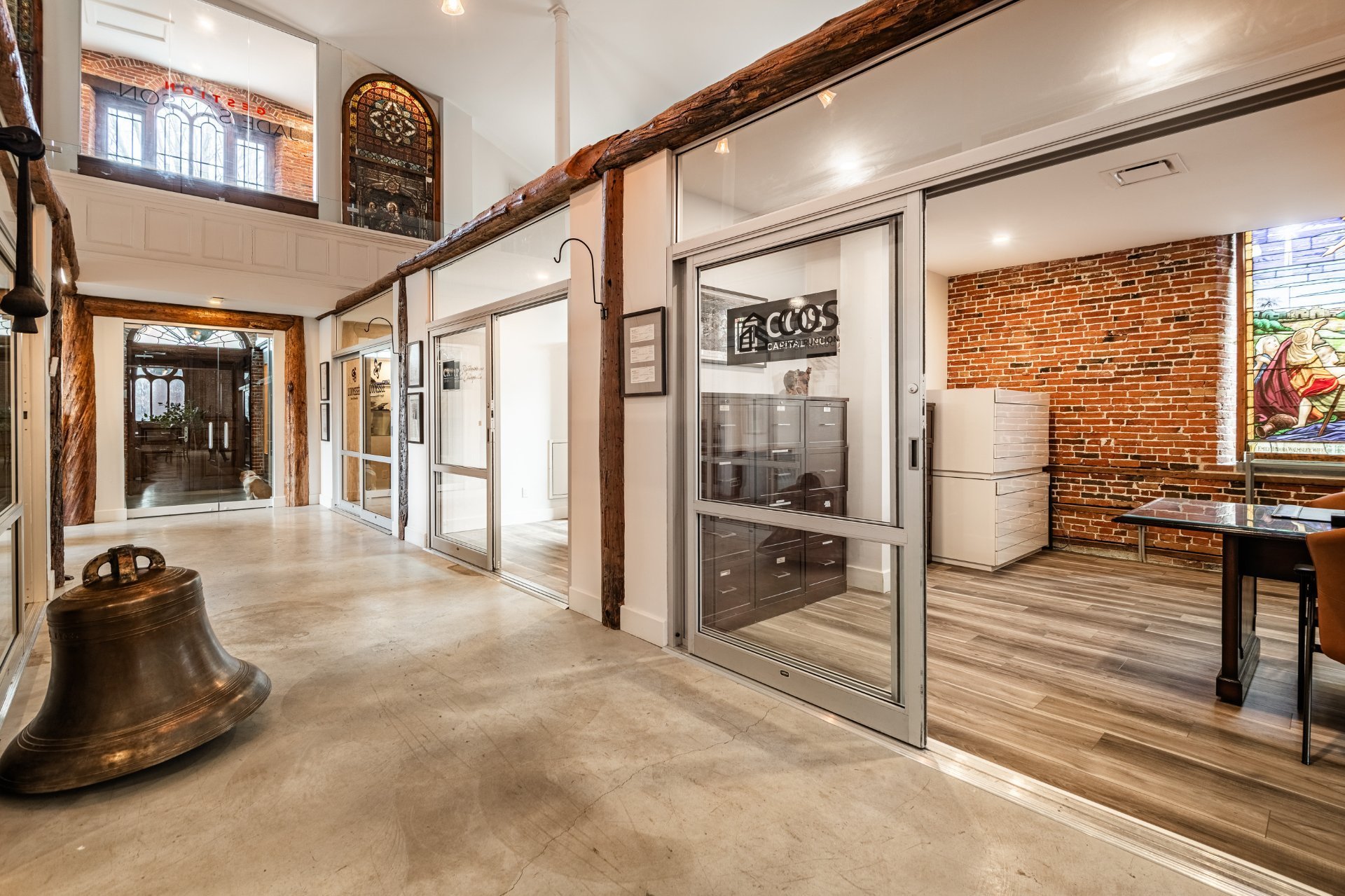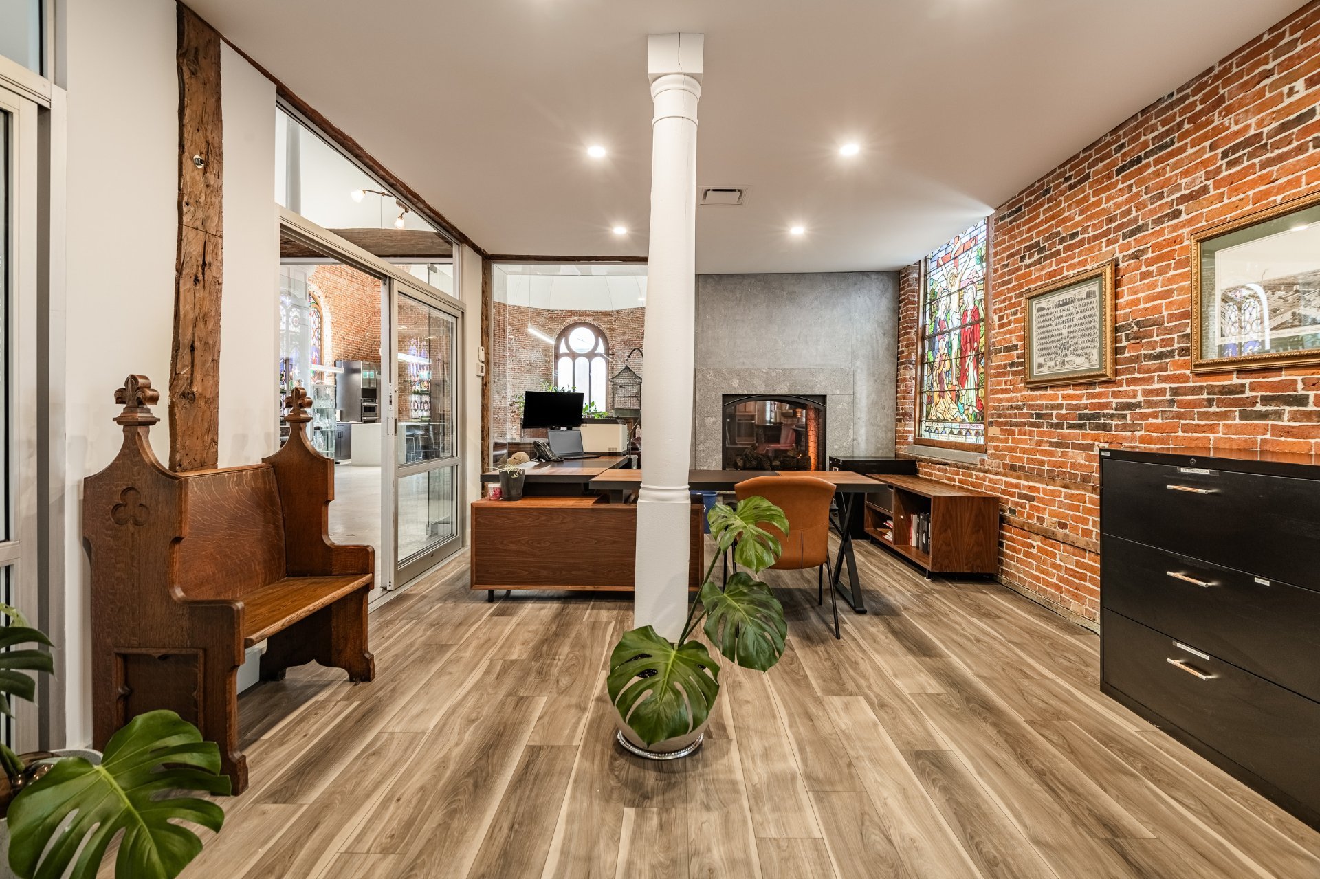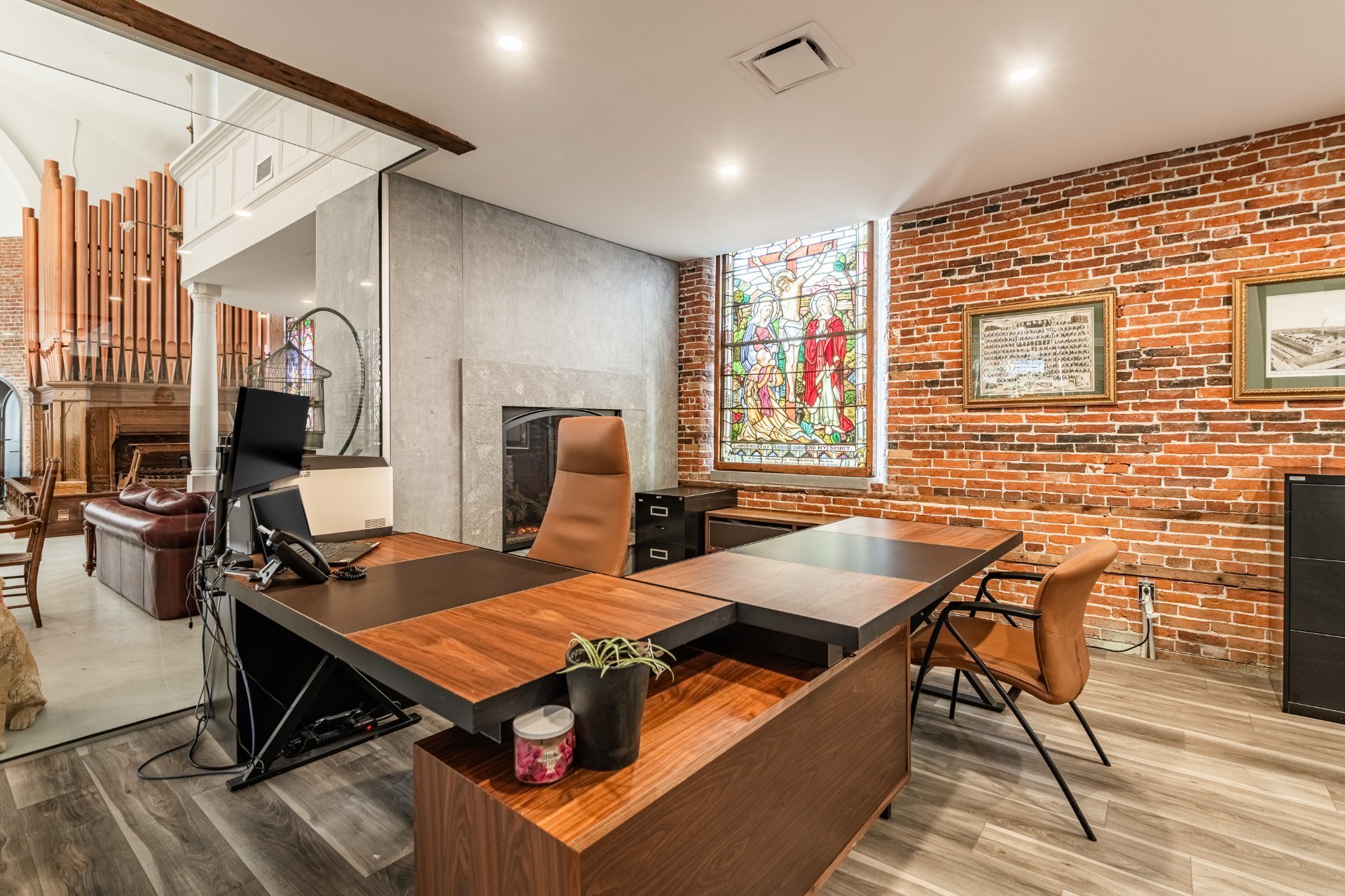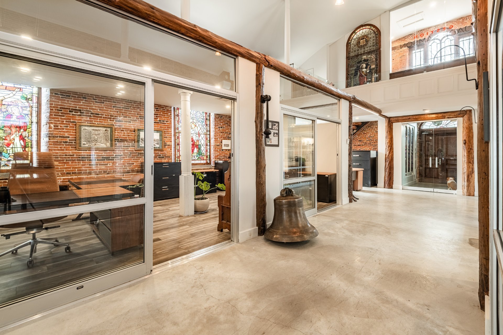 Unique and full of character, this carefully converted former church offers a truly exceptional space in a historic neighborhood. Original features--exposed brick, stained glass windows, 22 feets cathedral ceilings--create a spectacular atmosphere, while the thoughtful renovations bring modern comfort throughout. Currently used as a workspace, it includes a large open area, several glass-enclosed offices, a mezzanine, a full bathroom, and a high-end kitchen. An inspiring setting, perfect for a creative or professional project in a one-of-a-kind environment.
