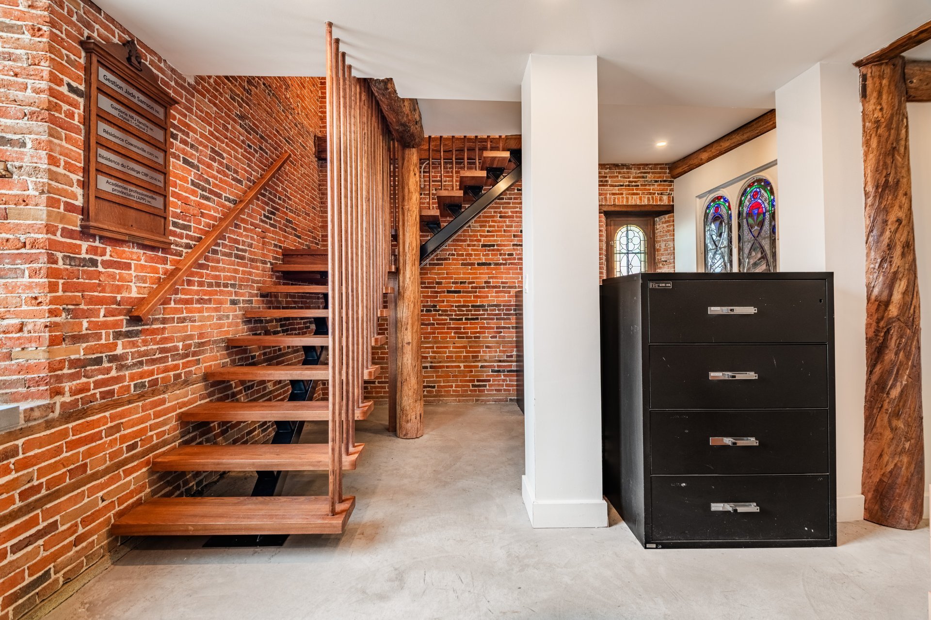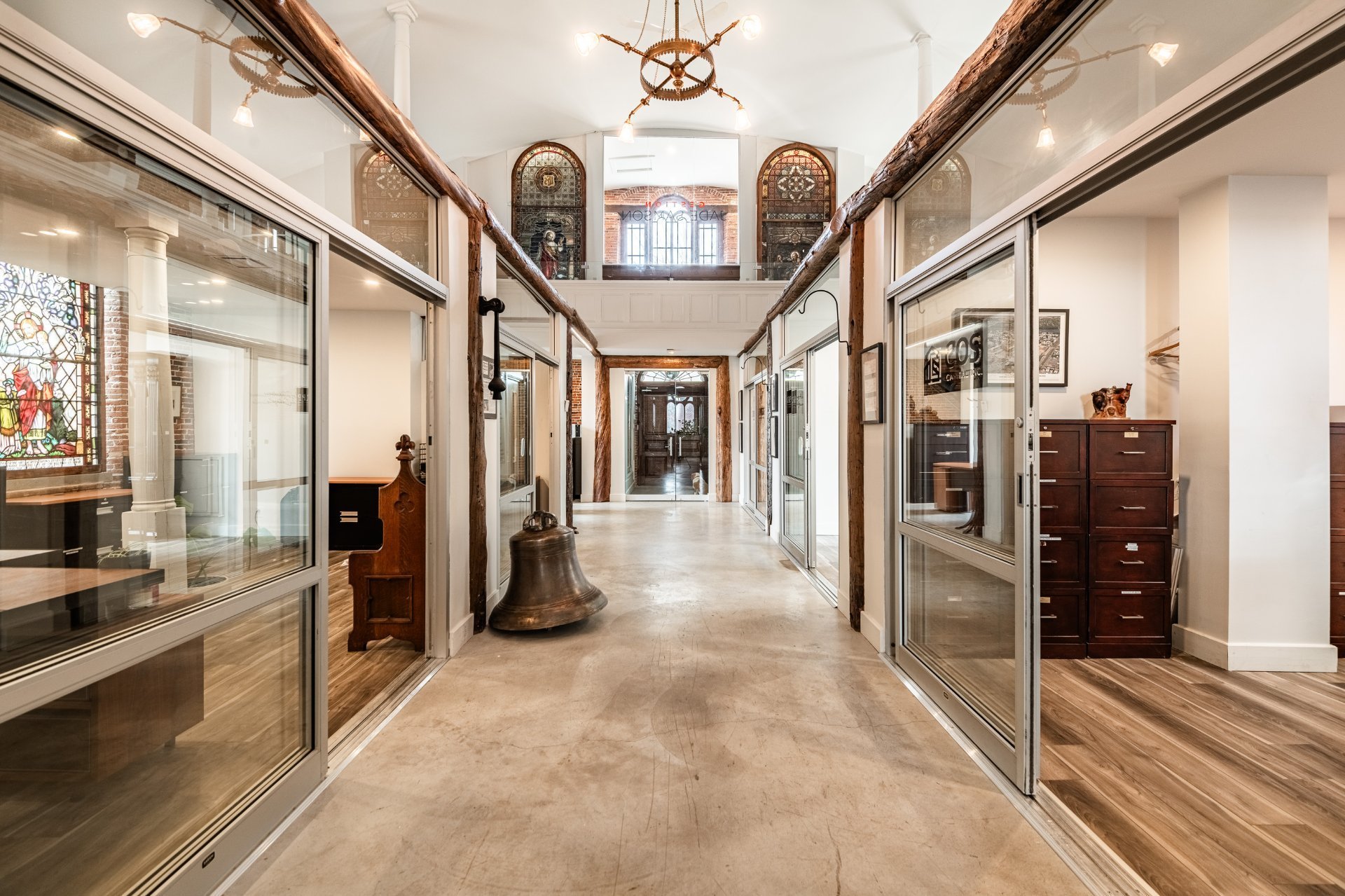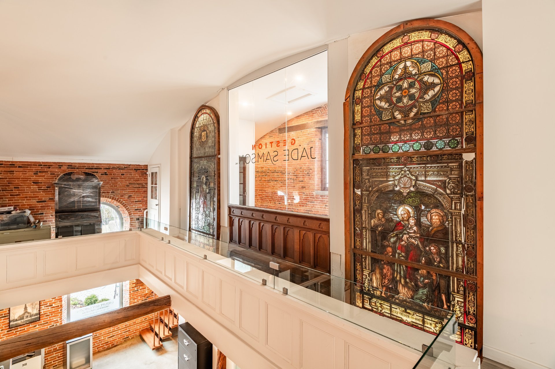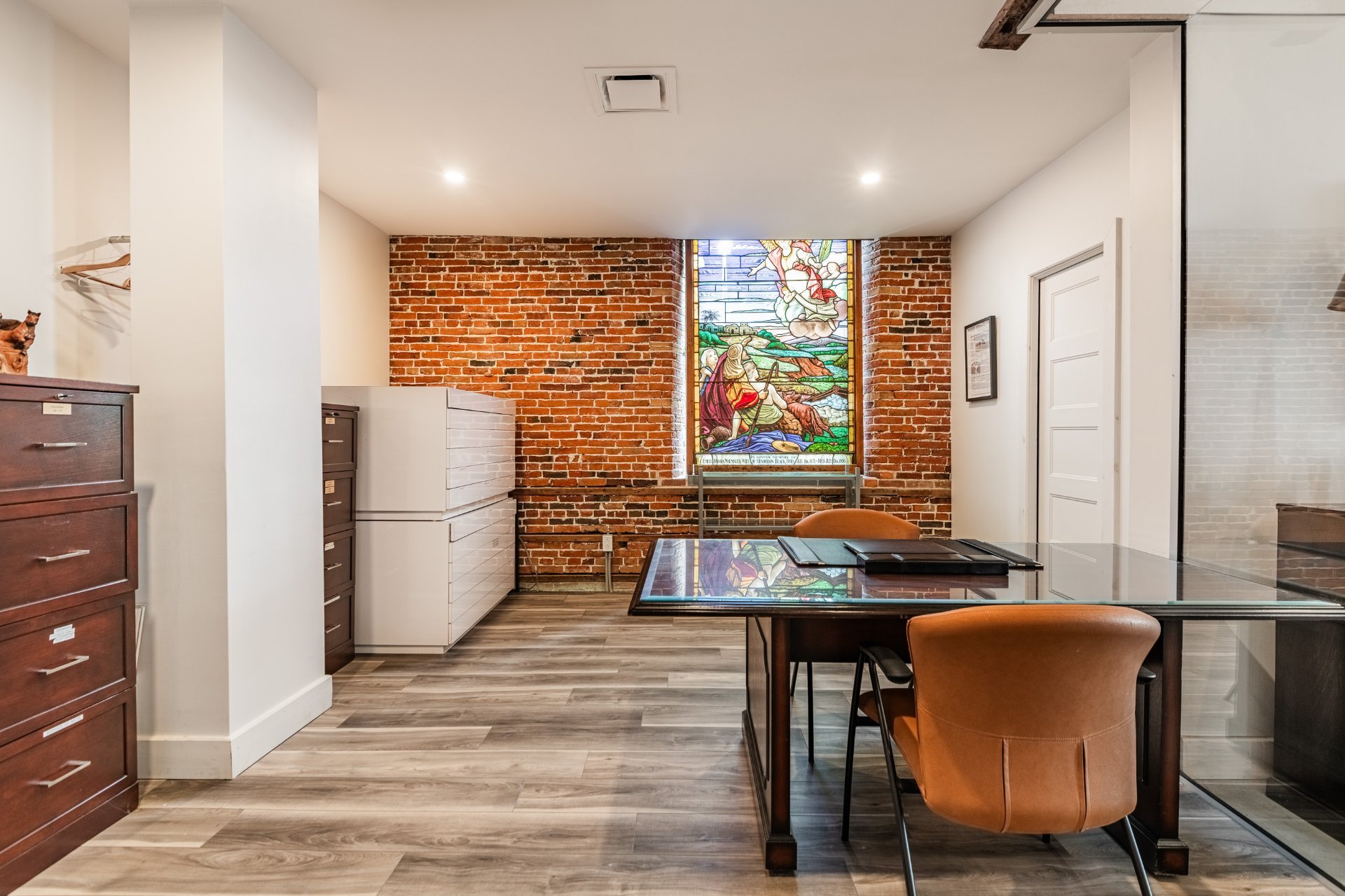 Unique and full of character, this carefully converted former church offers a truly exceptional space in a historic neighborhood. Original features--exposed brick, stained glass windows, 22 feets cathedral ceilings--create a spectacular atmosphere, while the thoughtful renovations bring modern comfort throughout. Currently used as a workspace, it includes a large open area, several glass-enclosed offices, a mezzanine, a full bathroom, and a high-end kitchen. An inspiring setting, perfect for a creative or professional project in a one-of-a-kind environment.