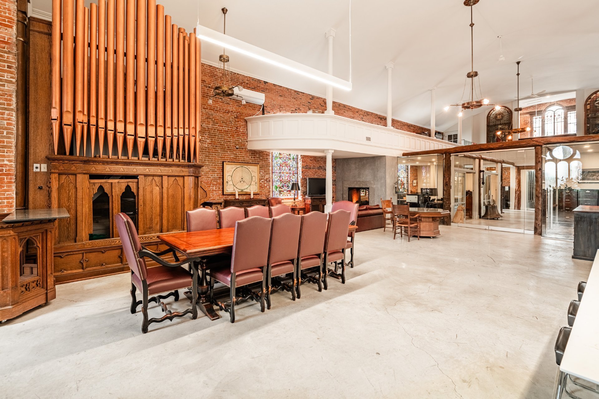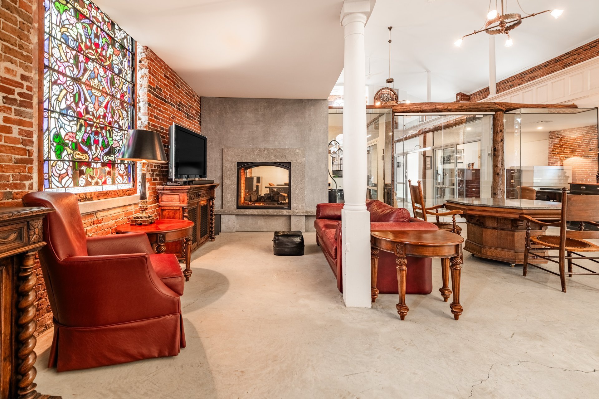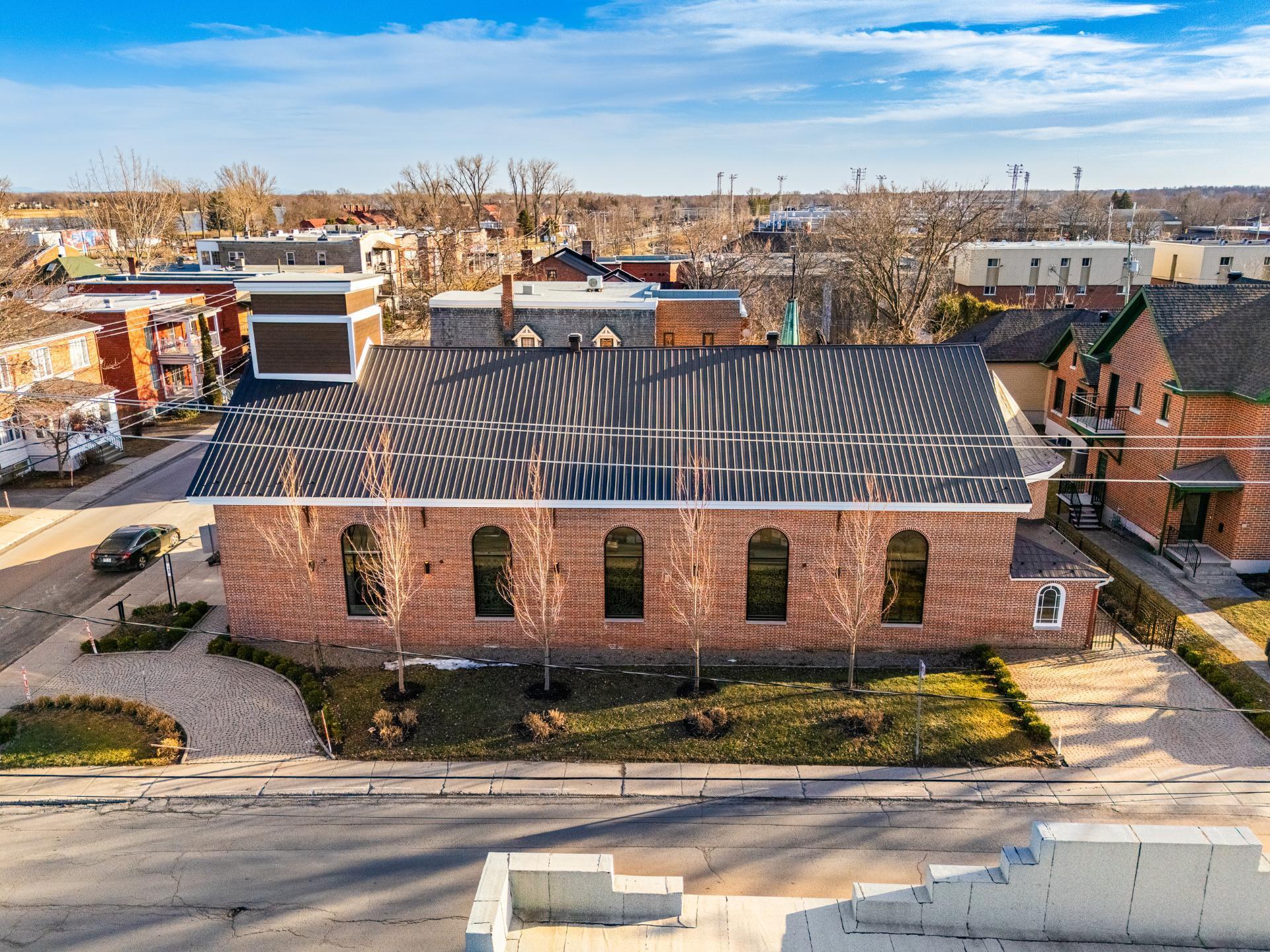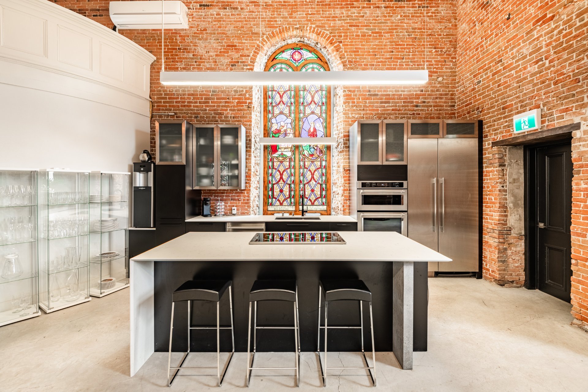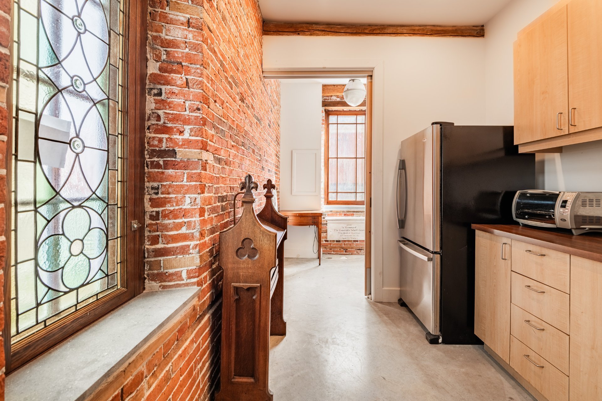 Unique and full of character, this carefully converted former church offers a truly exceptional space in a historic neighborhood. Original features--exposed brick, stained glass windows, 22 feets cathedral ceilings--create a spectacular atmosphere, while the thoughtful renovations bring modern comfort throughout. Currently used as a workspace, it includes a large open area, several glass-enclosed offices, a mezzanine, a full bathroom, and a high-end kitchen. An inspiring setting, perfect for a creative or professional project in a one-of-a-kind environment.