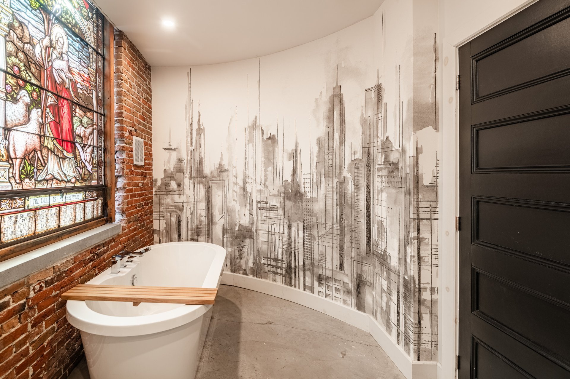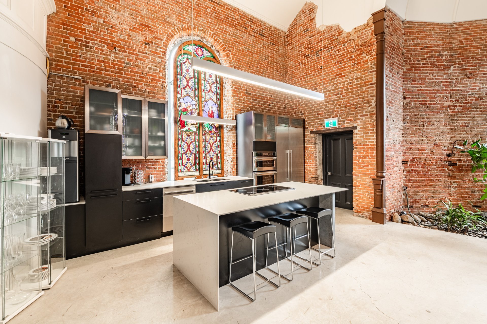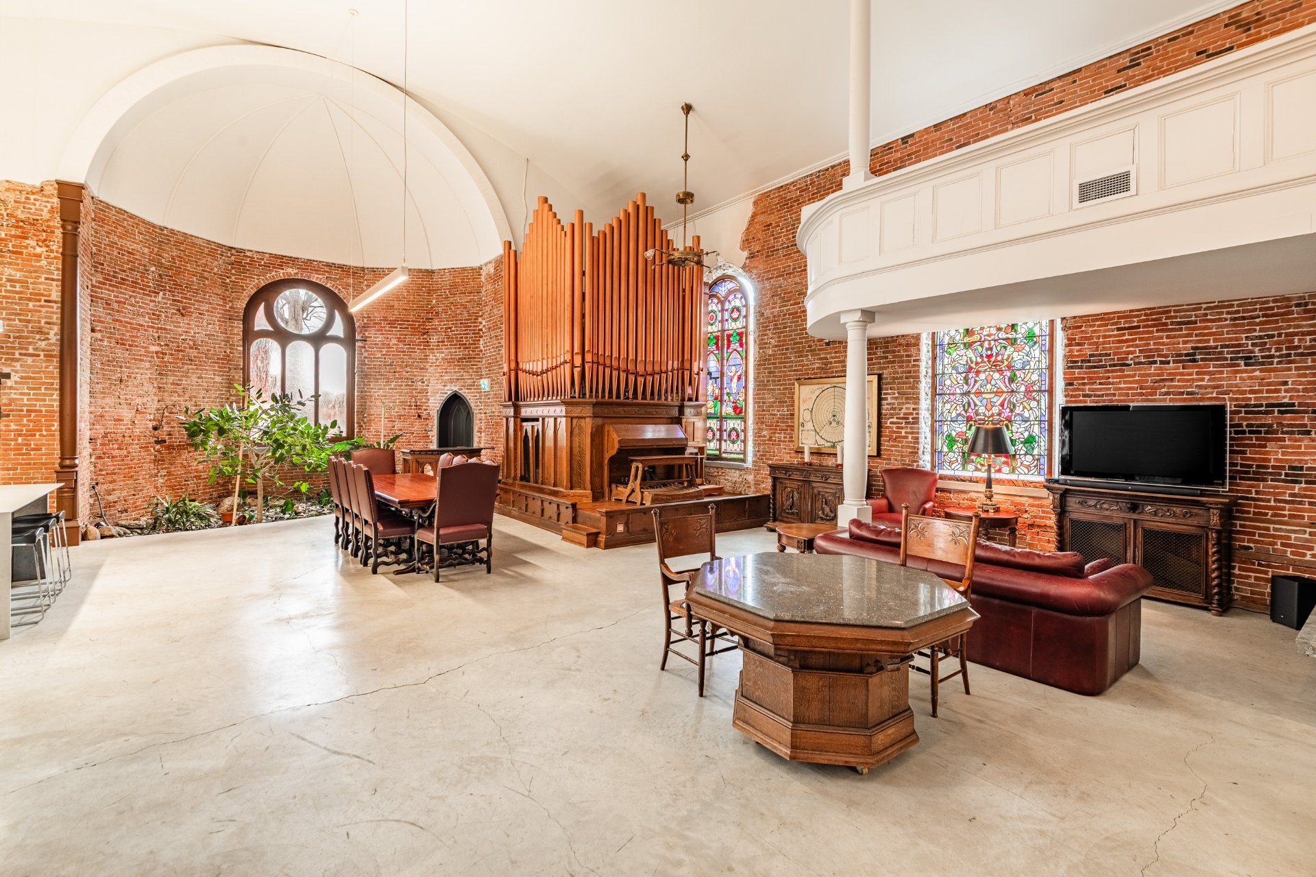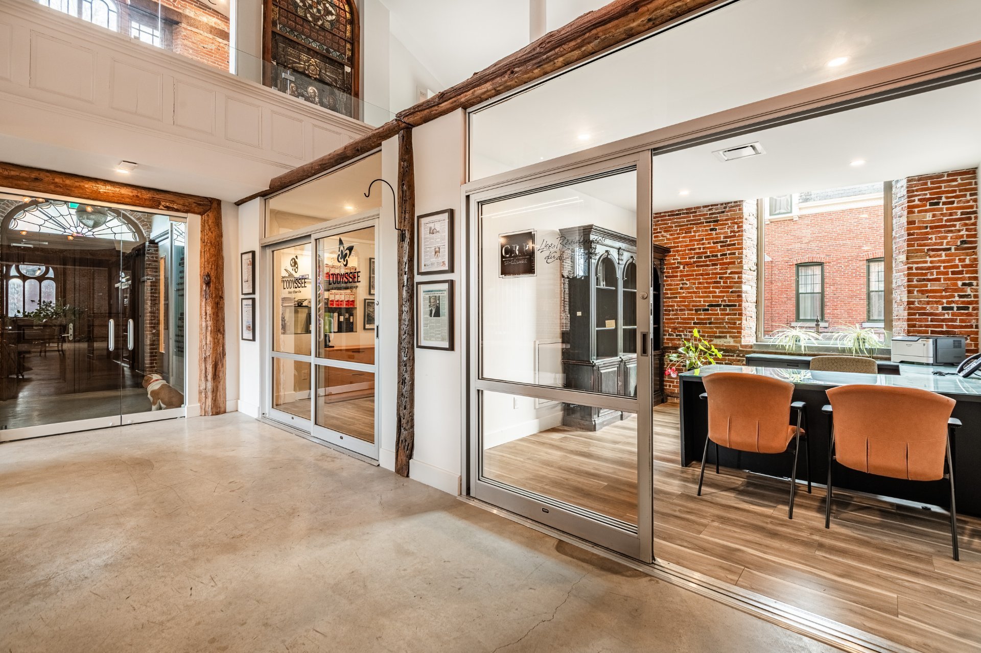 Unique and full of character, this carefully converted former church offers a truly exceptional space in a historic neighborhood. Original features--exposed brick, stained glass windows, 22 feets cathedral ceilings--create a spectacular atmosphere, while the thoughtful renovations bring modern comfort throughout. Currently used as a workspace, it includes a large open area, several glass-enclosed offices, a mezzanine, a full bathroom, and a high-end kitchen. An inspiring setting, perfect for a creative or professional project in a one-of-a-kind environment.