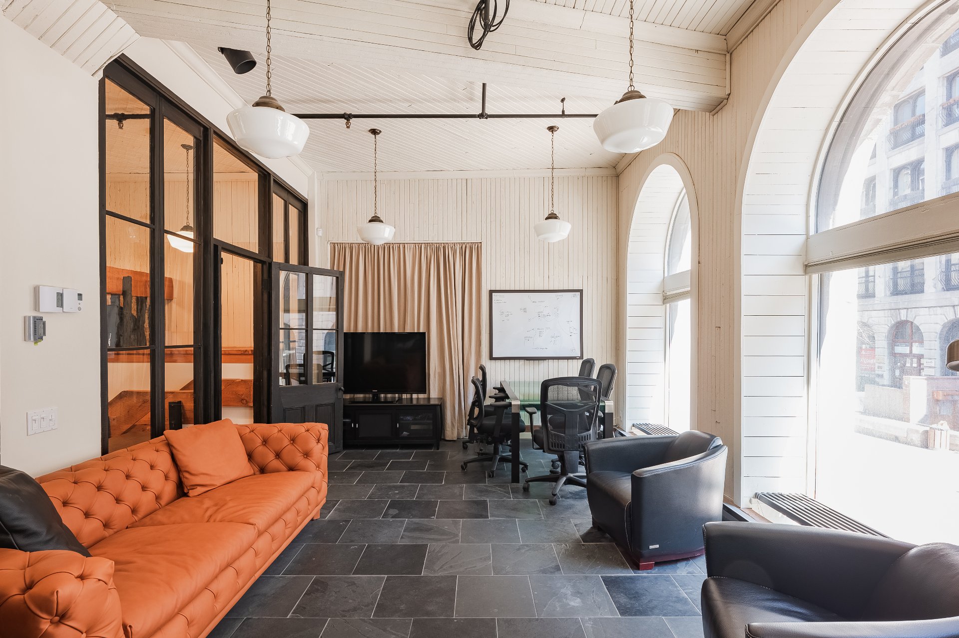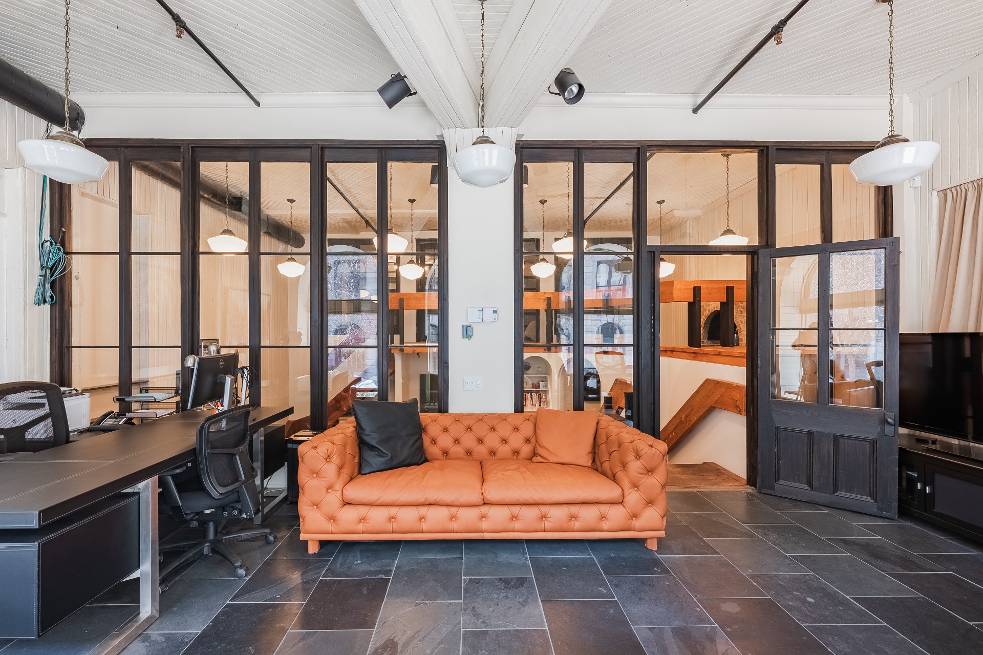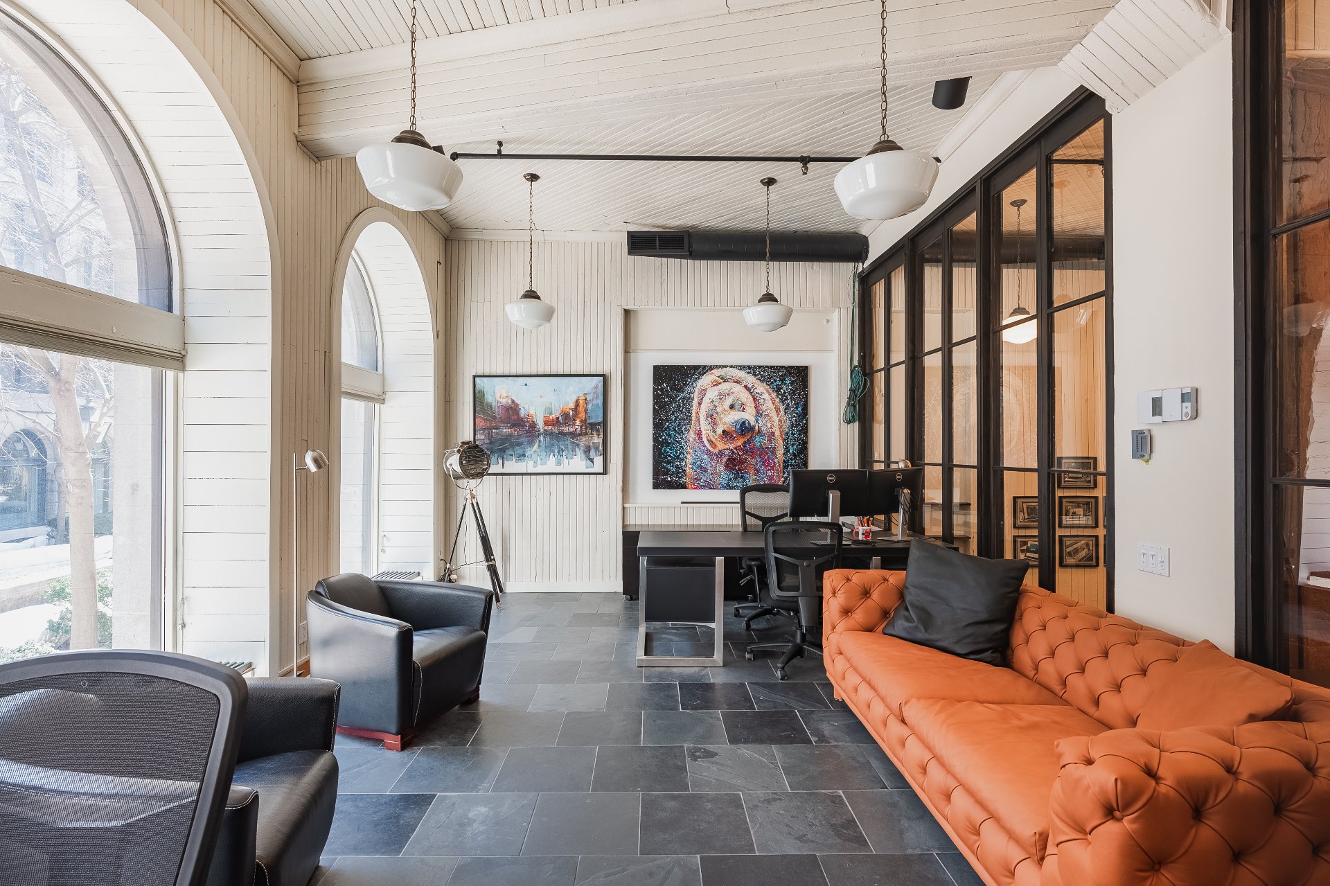 Experience your luxury in 2025! Prestigious office spaces available in Les Cours Le Royer, a historic building located in the heart of Old Montreal. Access to the unit is through a private ground-floor entrance. The space features a fully equipped kitchen, tall arched windows overlooking the fountains of a peaceful interior courtyard, while the bells of the Notre-Dame Basilica ring in the morning. It feels like living in Paris.