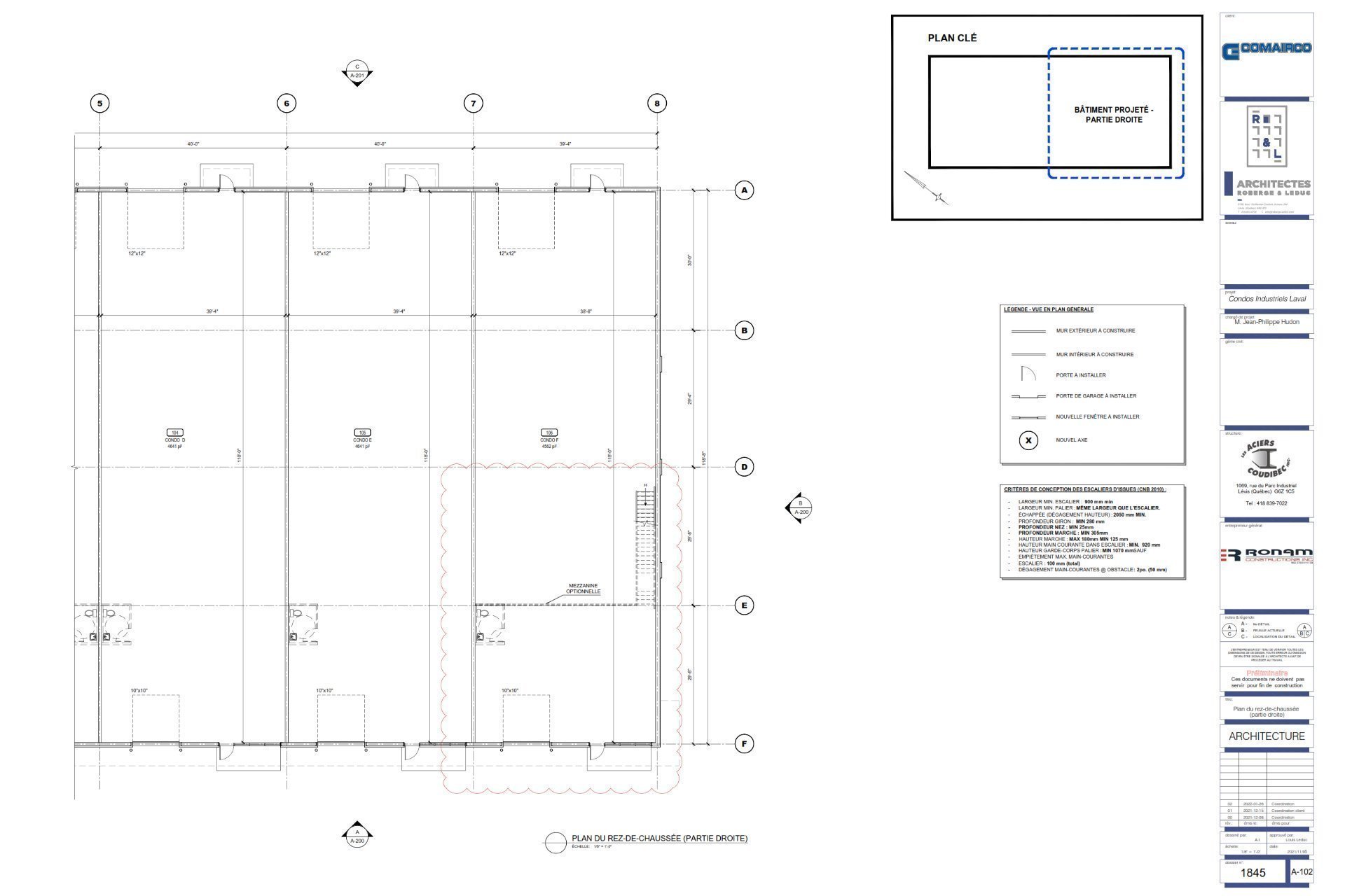 Very recent construction ready for immediate occupancy! Customizable layout options available to suit your needs (office space, mezzanine, etc.). Leases sought from 3 to 10 years with renewal option. Total available area: 4,641 sq. ft. Clear height: 24 ft. Electrical service: 200 amps / 600 volts. Parking spaces: approximately 61 (8 per unit). 12x14 garage doors available.