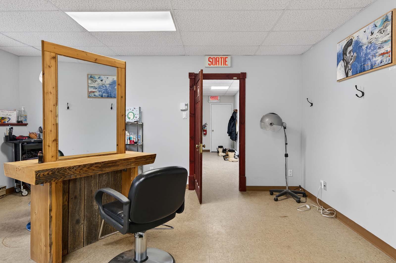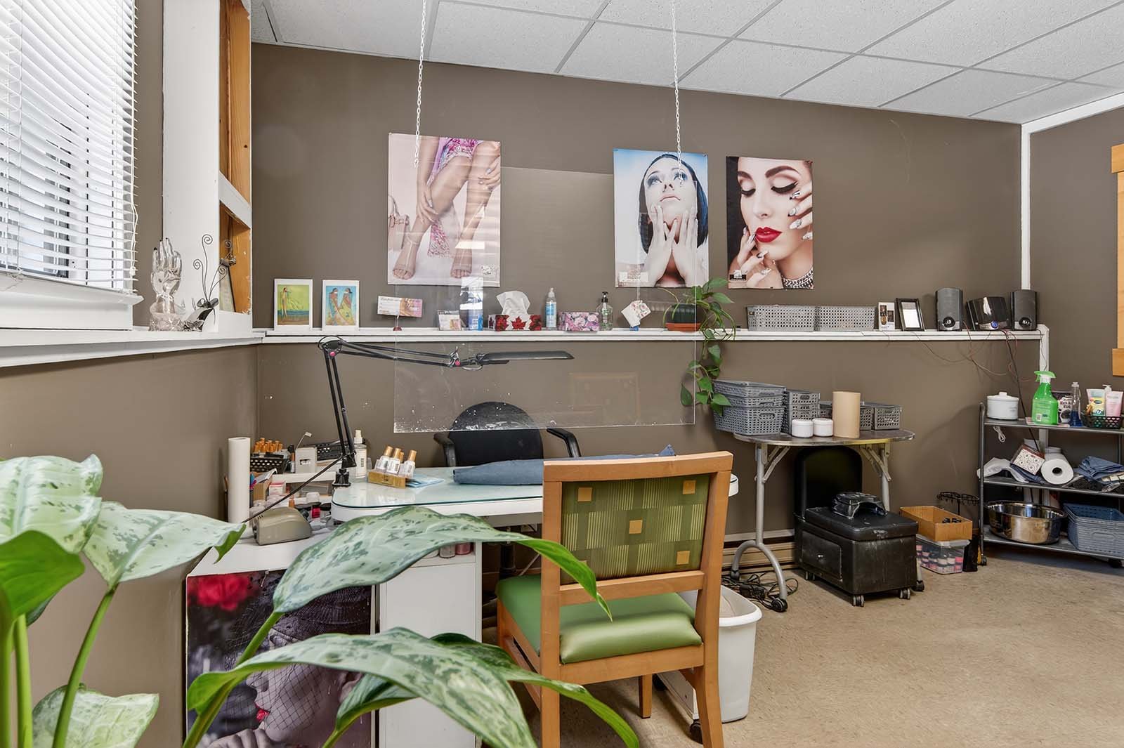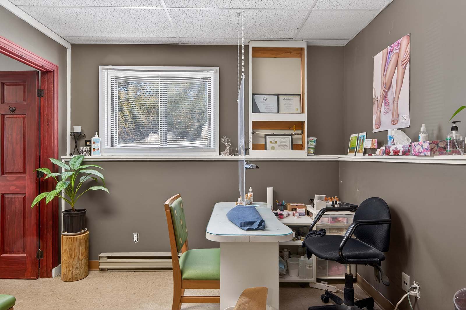 For rent, 1700sf of space offering 2 separate offices or treatment rooms and an open area with access to a common bathroom and a storage area. Located in the lower level of the building, great space for offices or other services. Space is available as of April 1 2026.