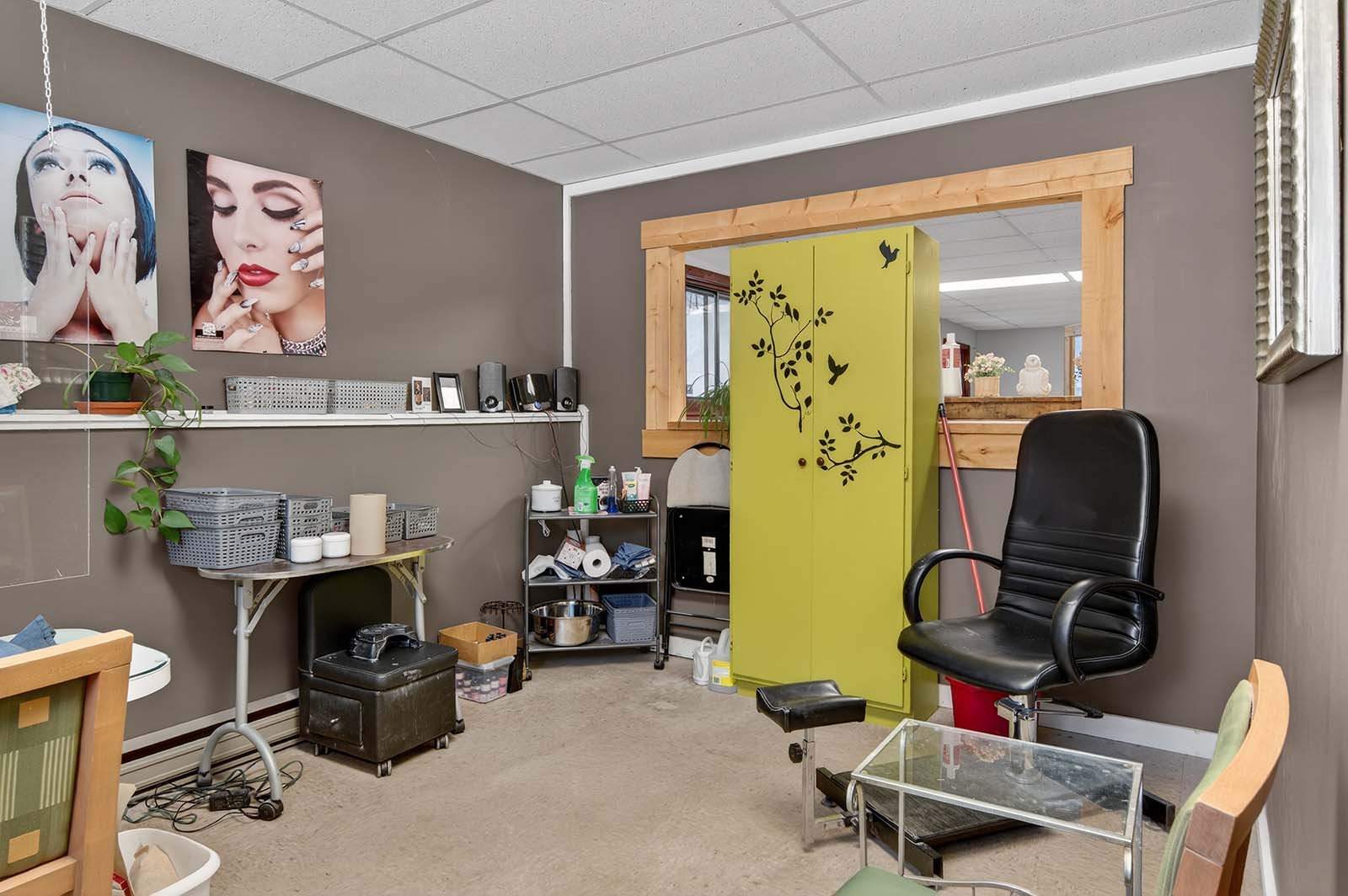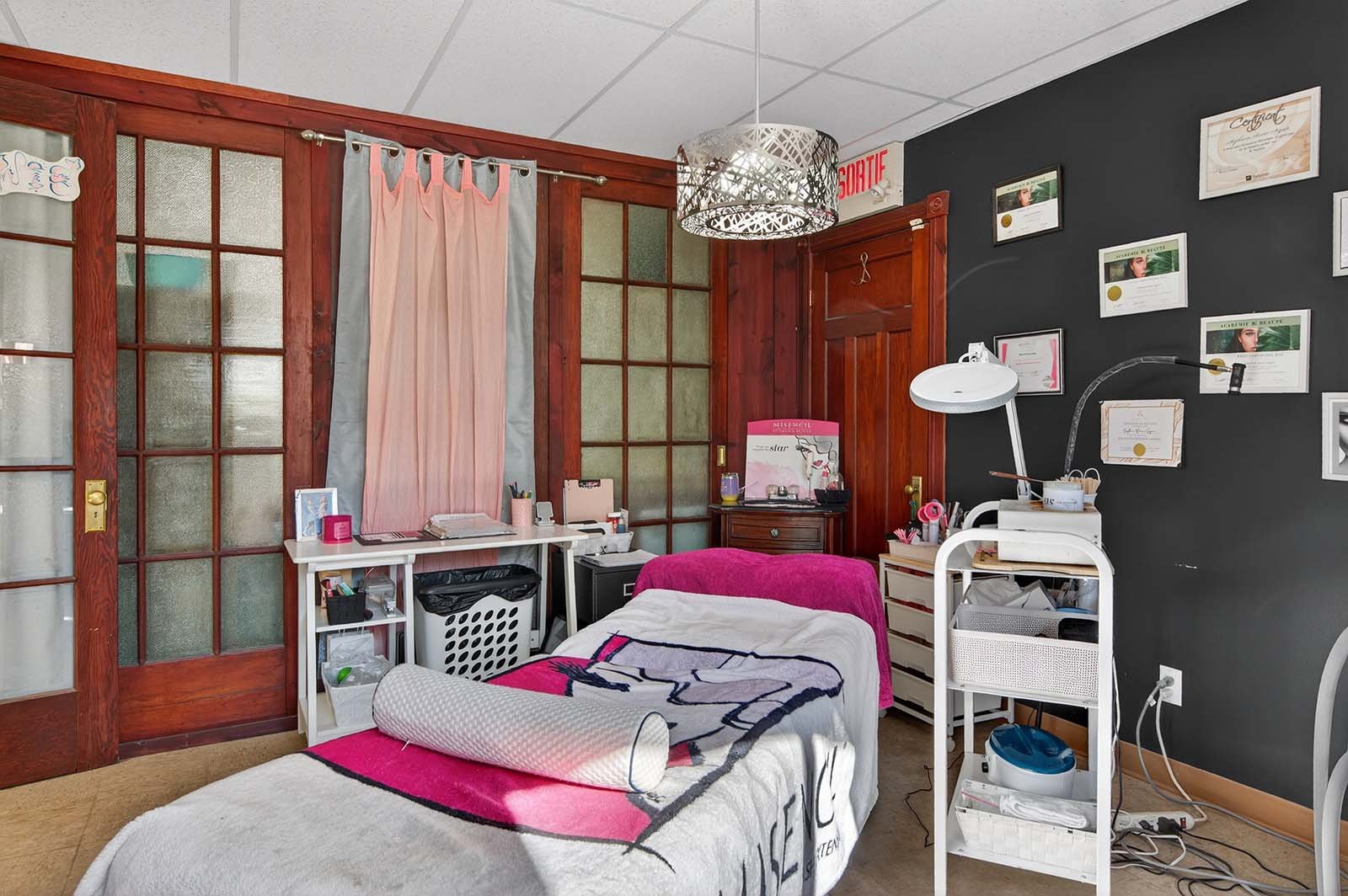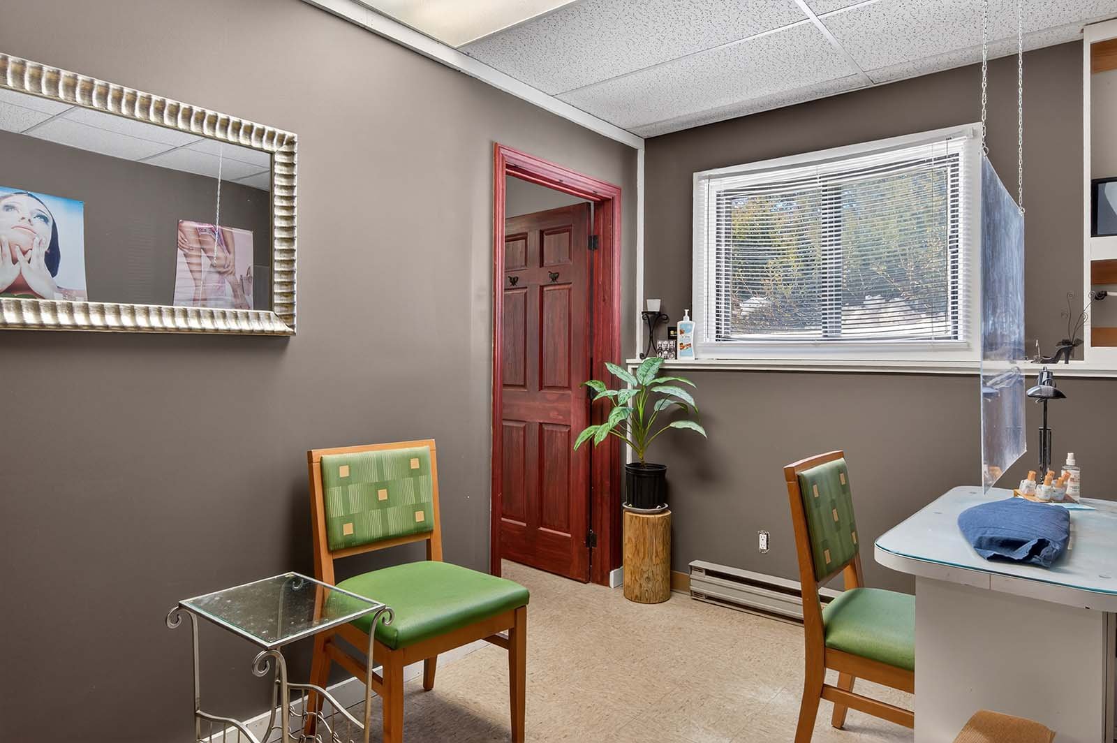 For rent, 1700sf of space offering 2 separate offices or treatment rooms and an open area with access to a common bathroom and a storage area. Located in the lower level of the building, great space for offices or other services. Space is available as of April 1 2026.