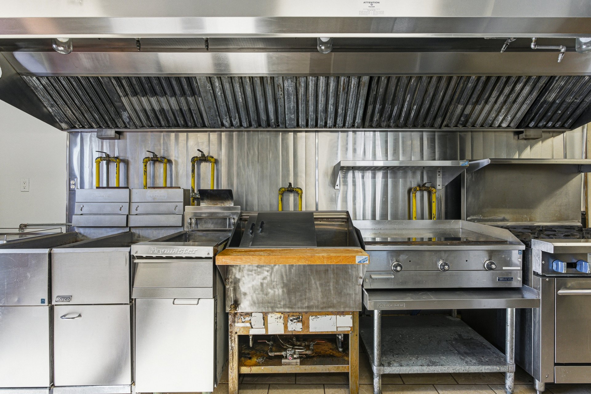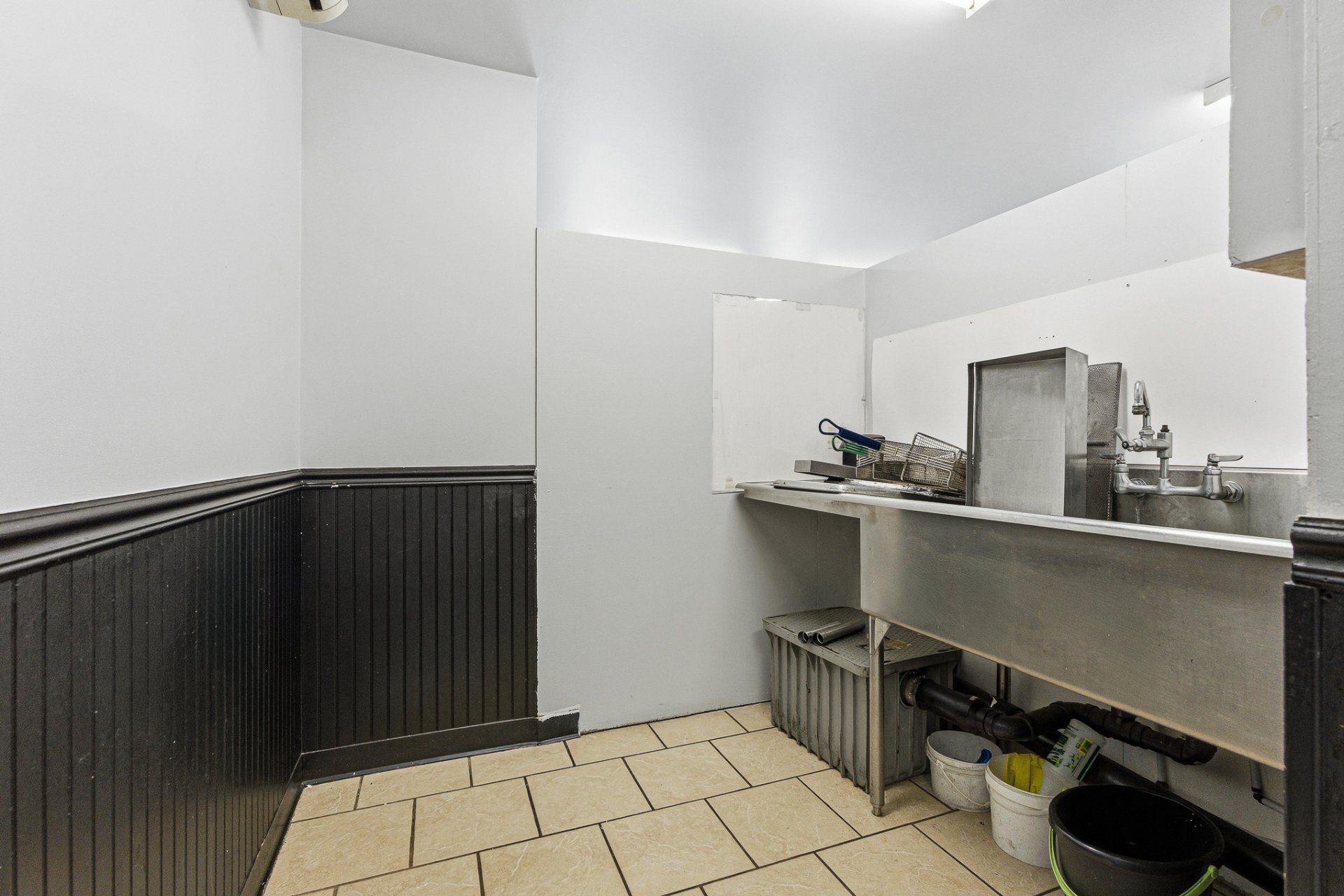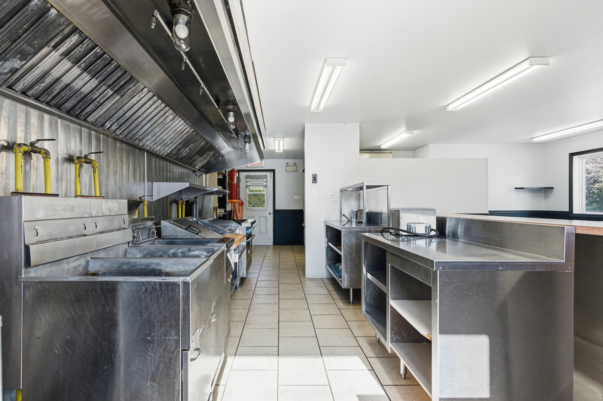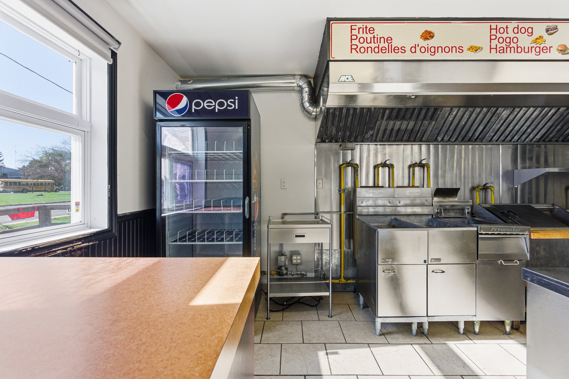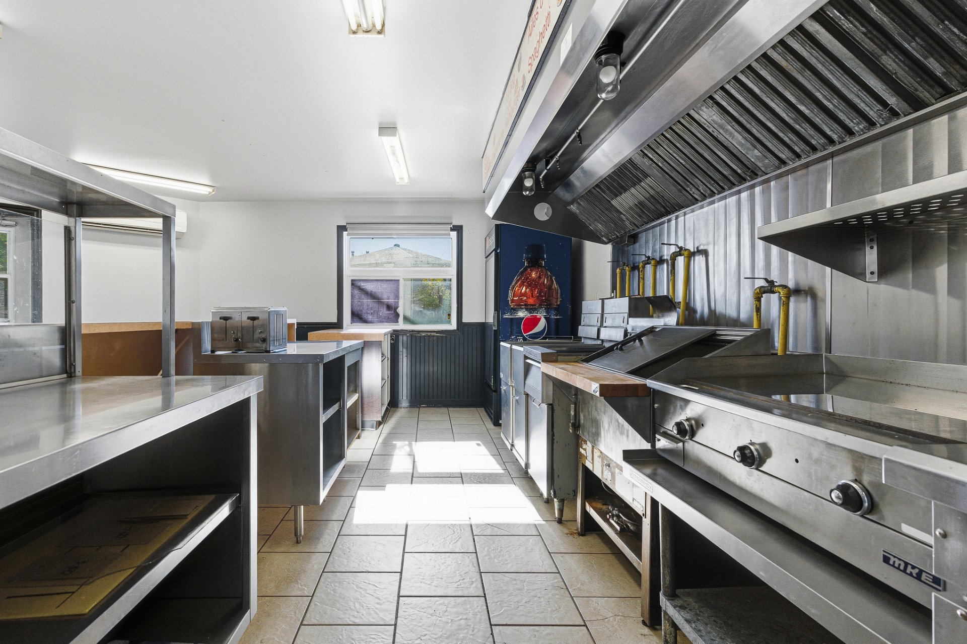 Commercial premises for fast food restaurant on a busy street. Large parking lot at the rear of the building and storage in the basement.