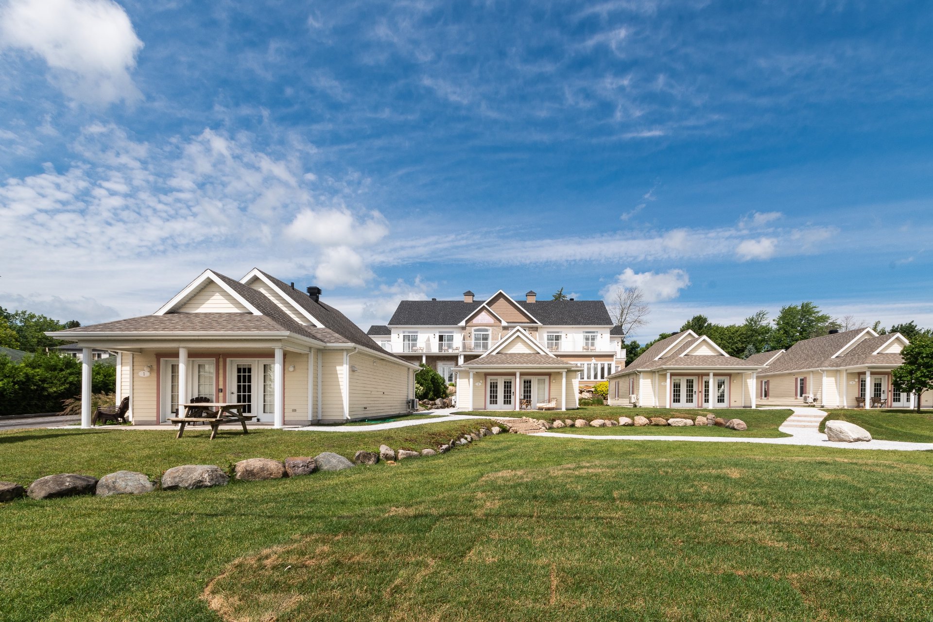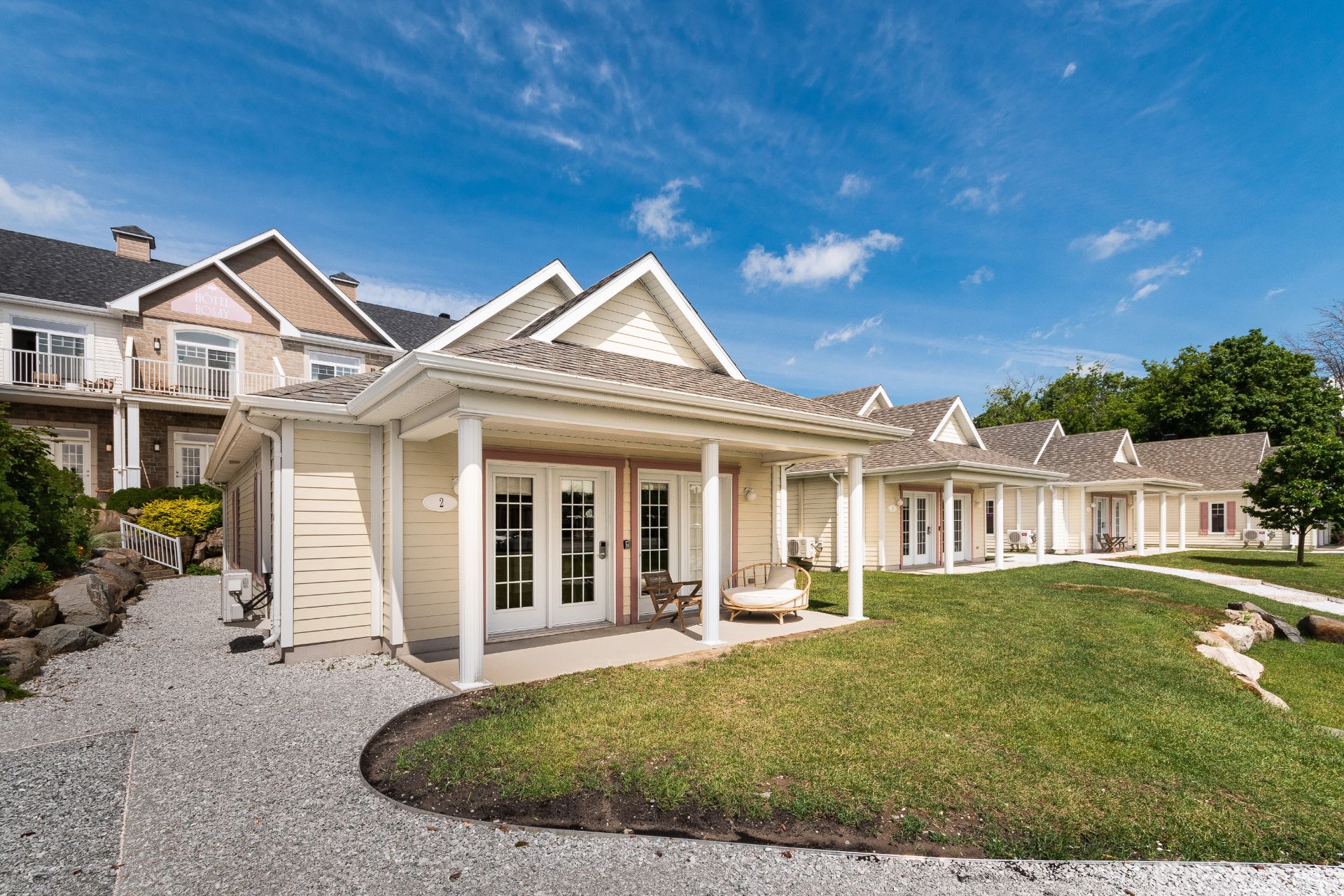 In the heart of Venise-en-Québec, facing the peaceful waters of Lake Champlain, Le Rosay boutique hotel combines elegance, comfort, and art de vivre. This fully renovated complex includes 14 refined rooms and 8 independent 2-bedroom cottages, as well as a complete wellness area with a swimming pool, sauna, Nordic pools, and fitness room. Le Sandbar restaurant and La Tropézienne lounge offer a unique culinary and festive experience on the lakeshore. With its seminar room, buildable land, and approximately 500 feet of frontage on Lake Champlain, Le Rosay combines luxury, profitability, and sustainable expansion potential.
