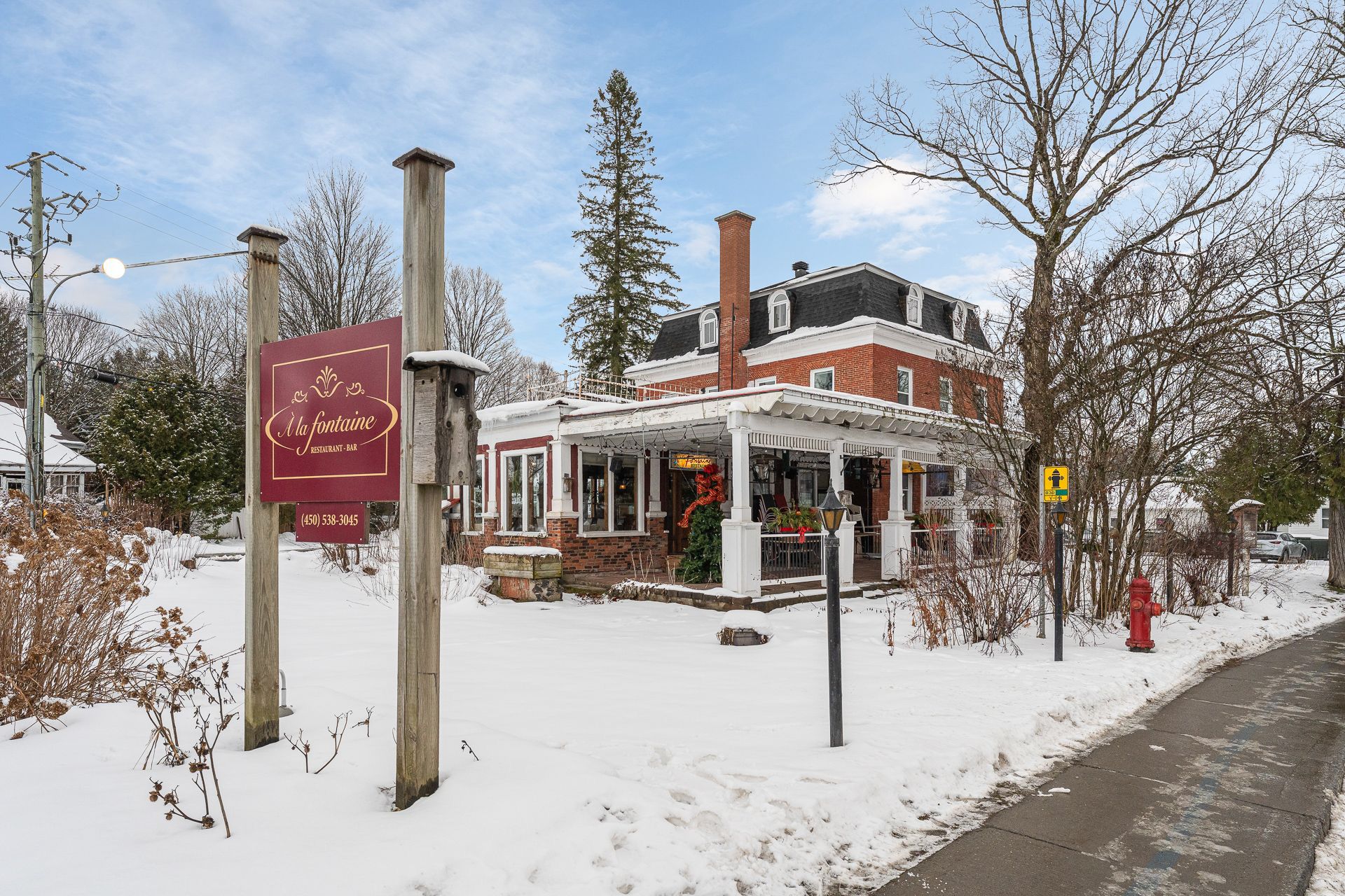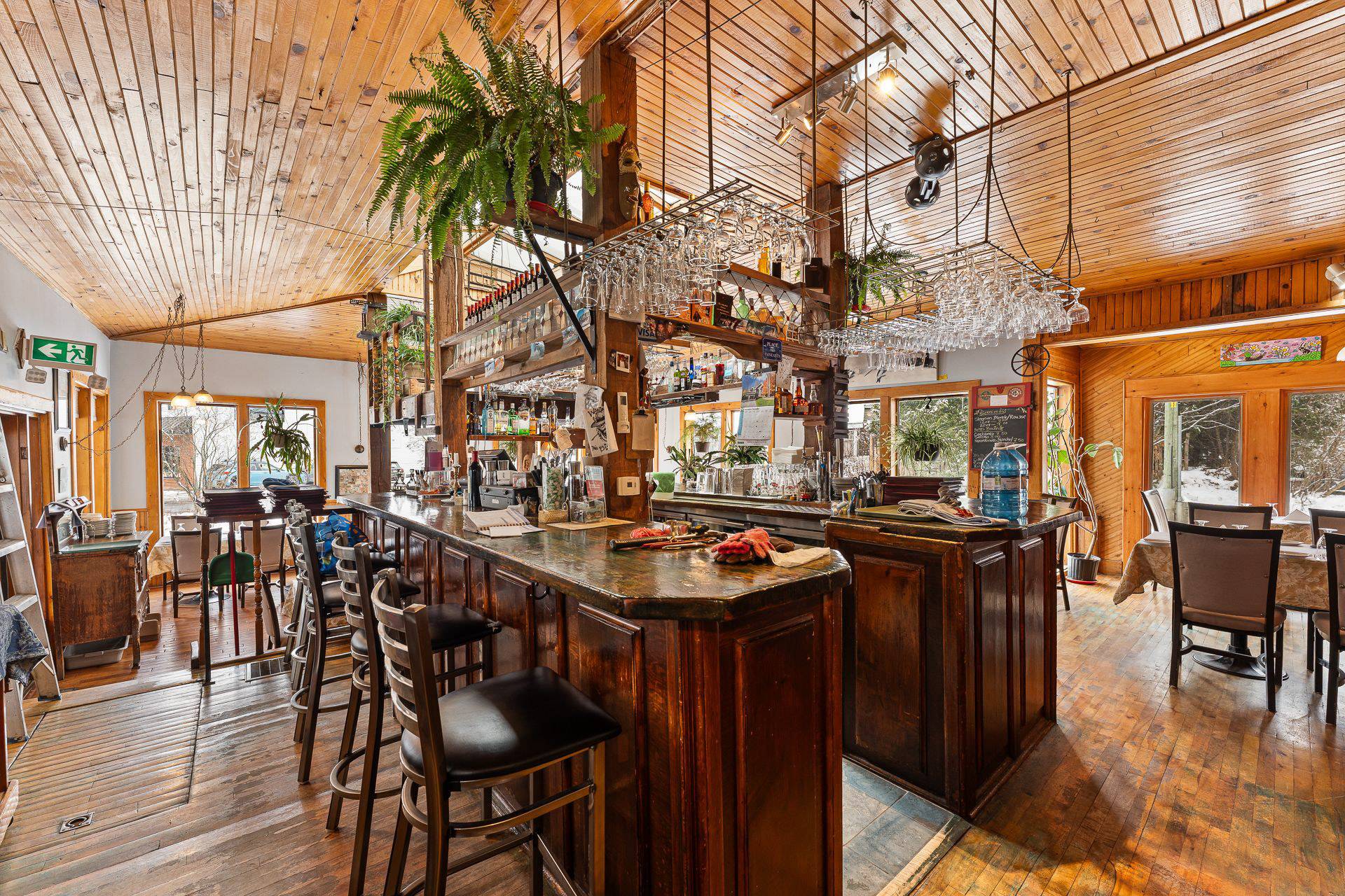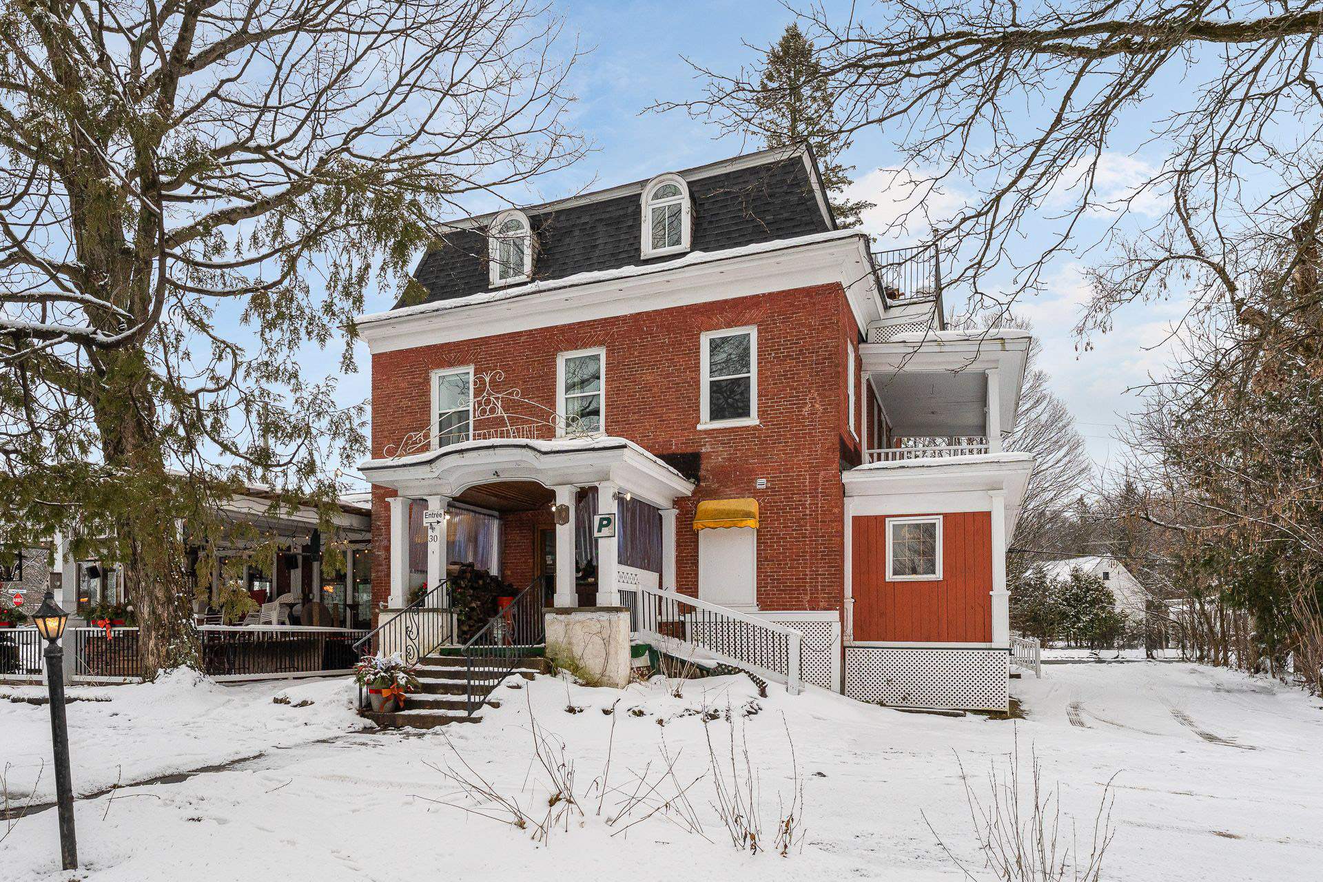 SHORT-TERM RENTAL in Sutton: a former inn in a charming century-old building with full rights for nightly rentals -- ideal for a hybrid lodging + restaurant project. The Restaurant Bar à la Fontaine, rated 4.3 stars on Google (186 reviews), is offered turnkey with all equipment included. Dining rooms, bar, and a large covered terrace are already in place -- the restaurant currently operates only 5 evenings per week, leaving significant potential to increase revenue. On the upper floors, two rental units can be leased either by the room or as full apartments.