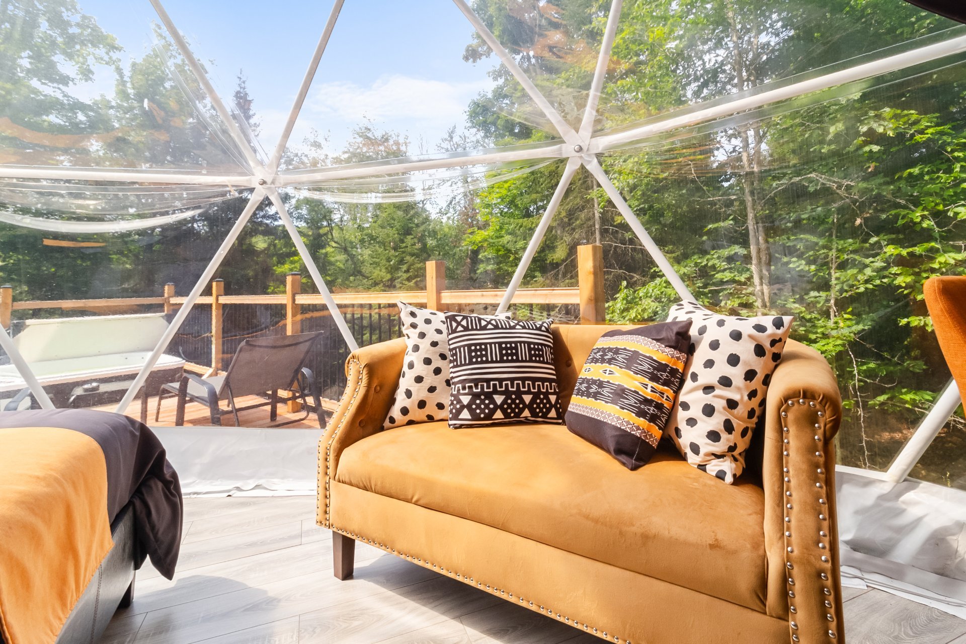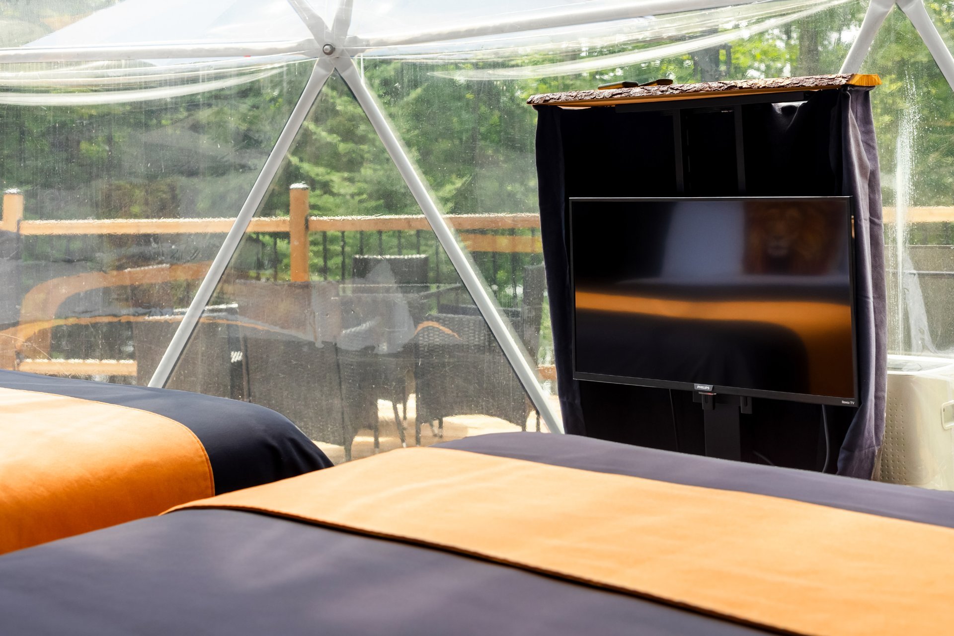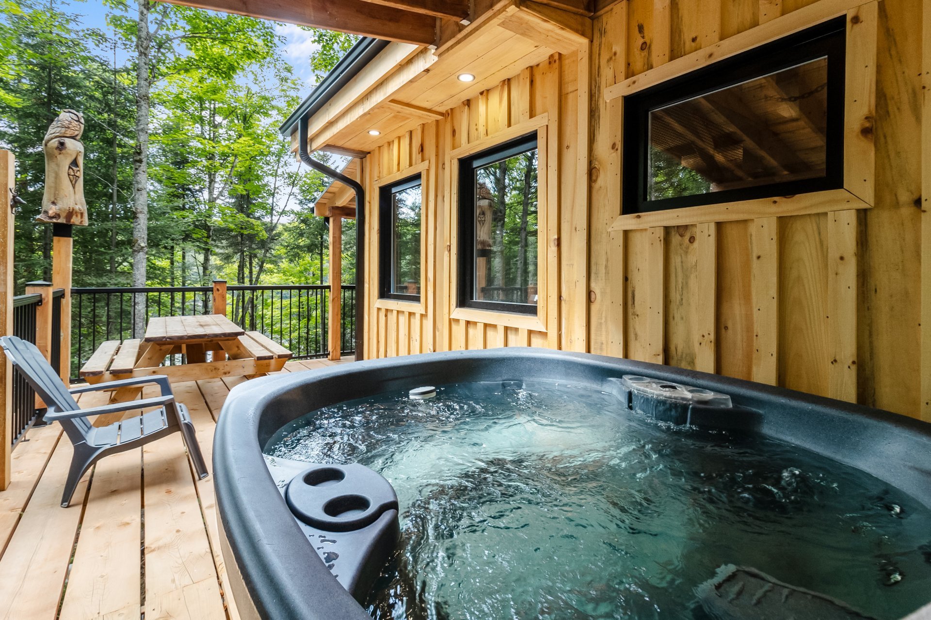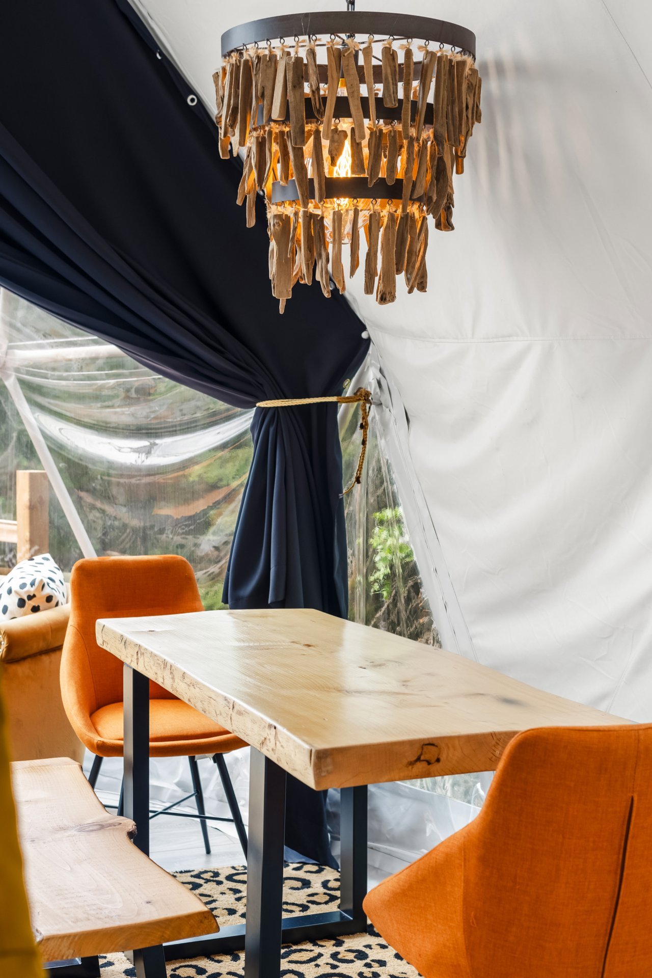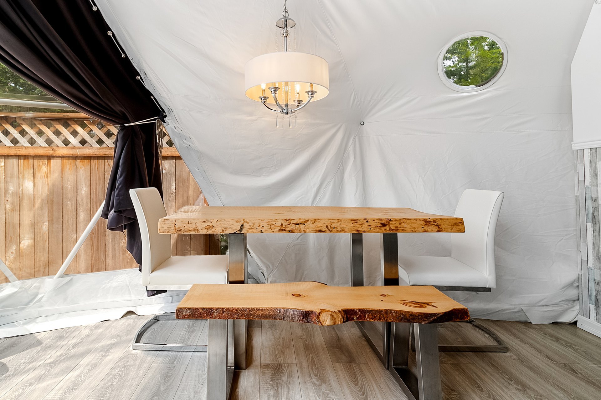 - All the furniture and accessories in the chalets, the spa, the outdoor tables & dock.