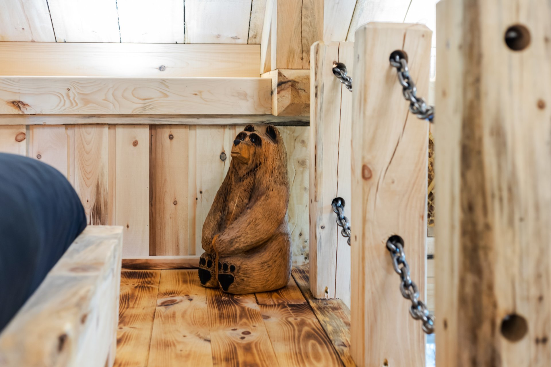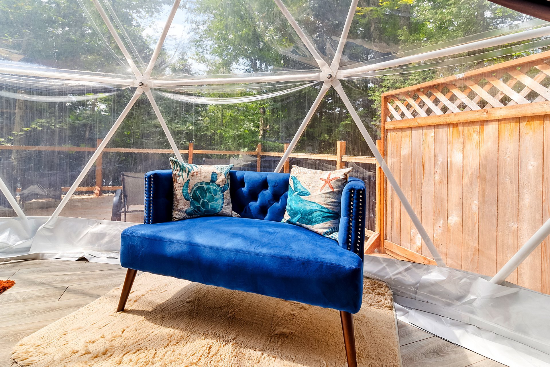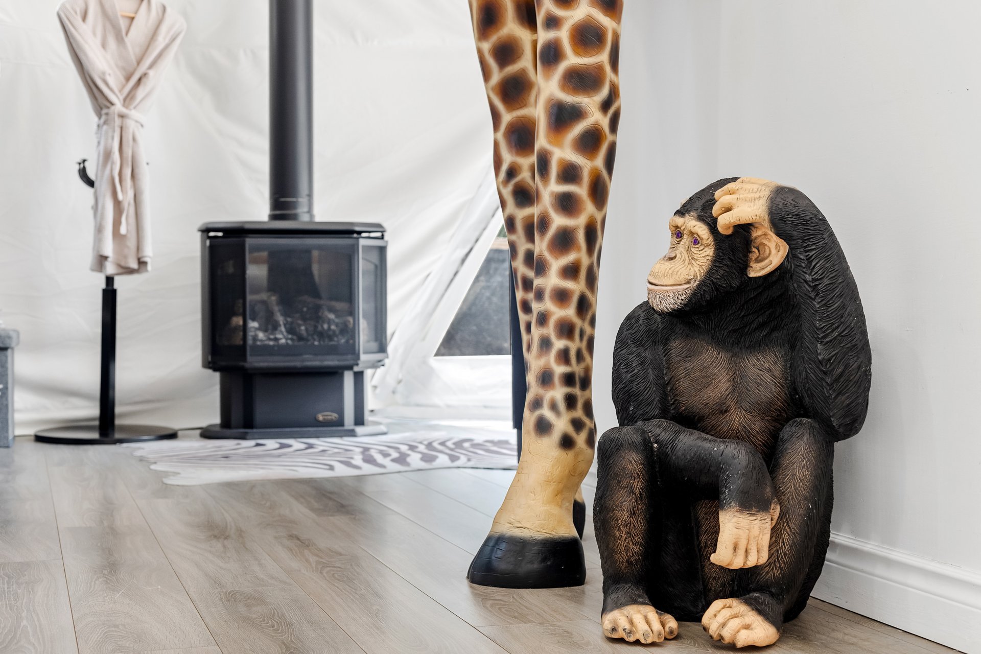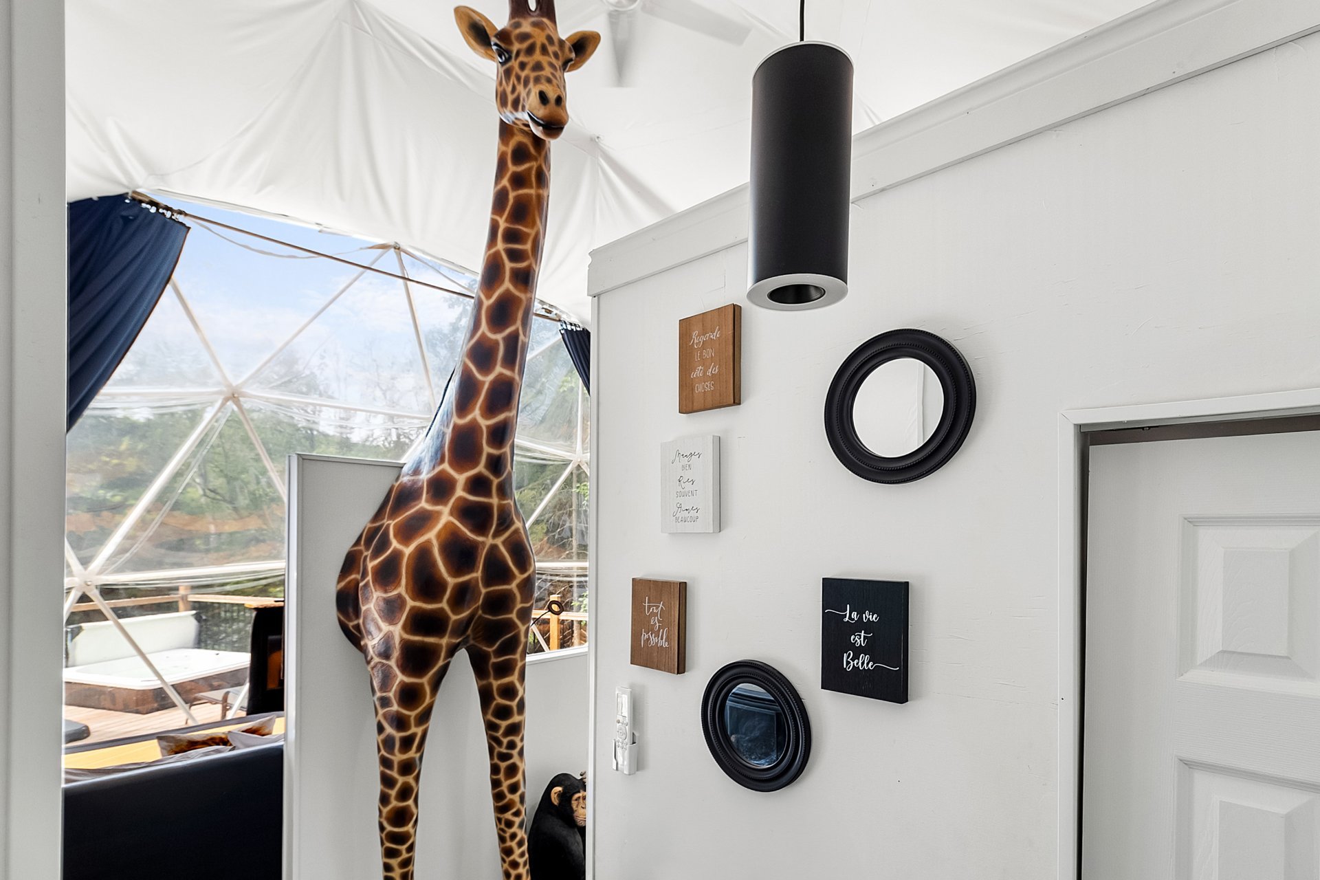 - All the furniture and accessories in the chalets, the spa, the outdoor tables & dock.
