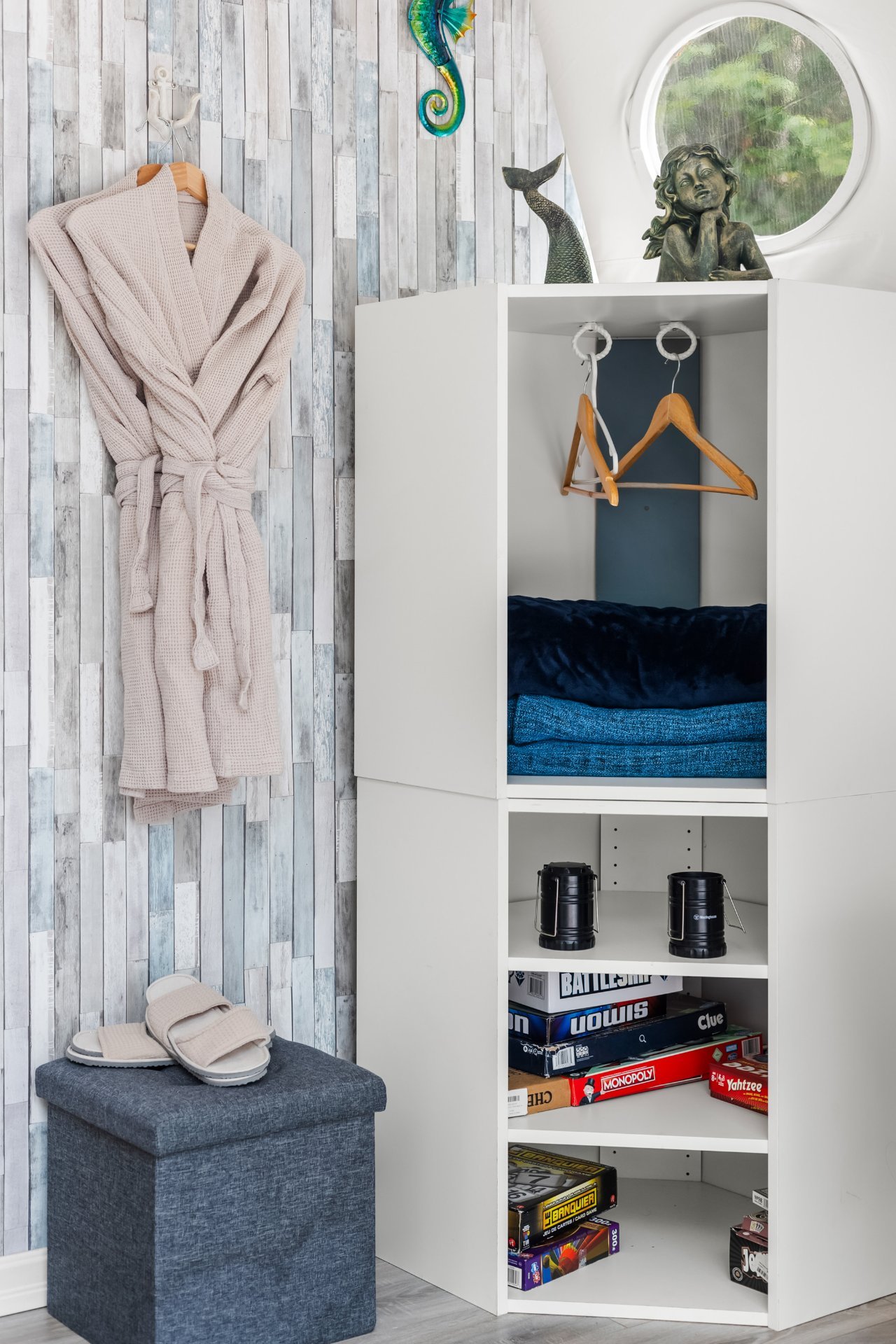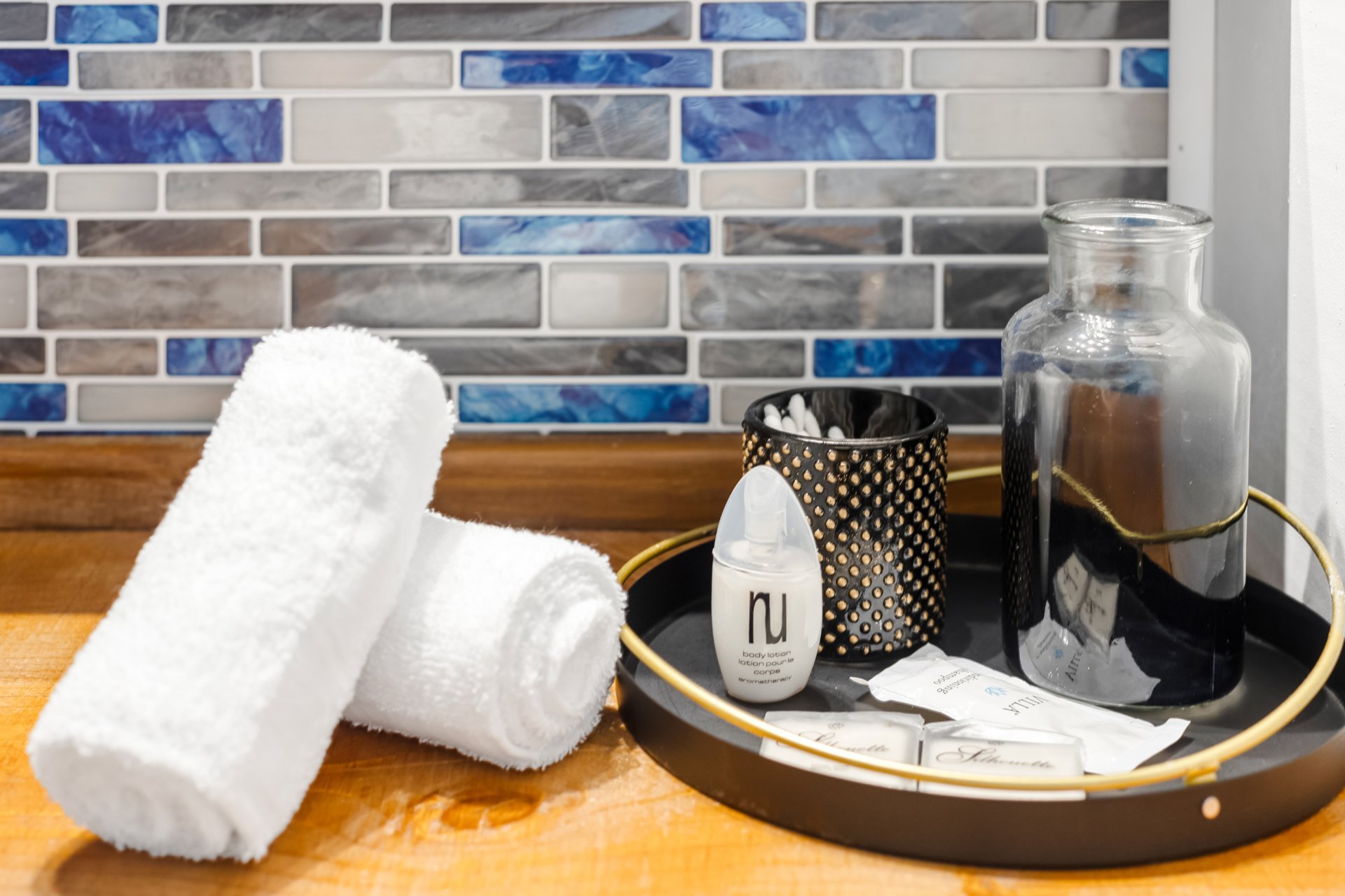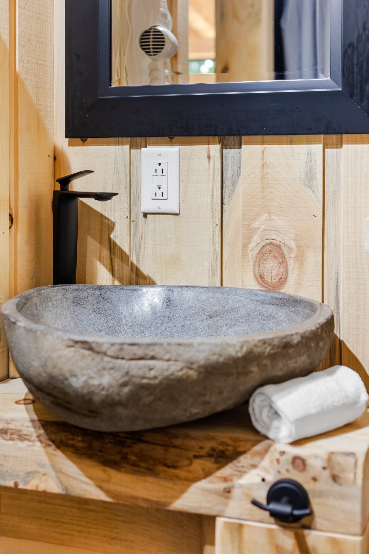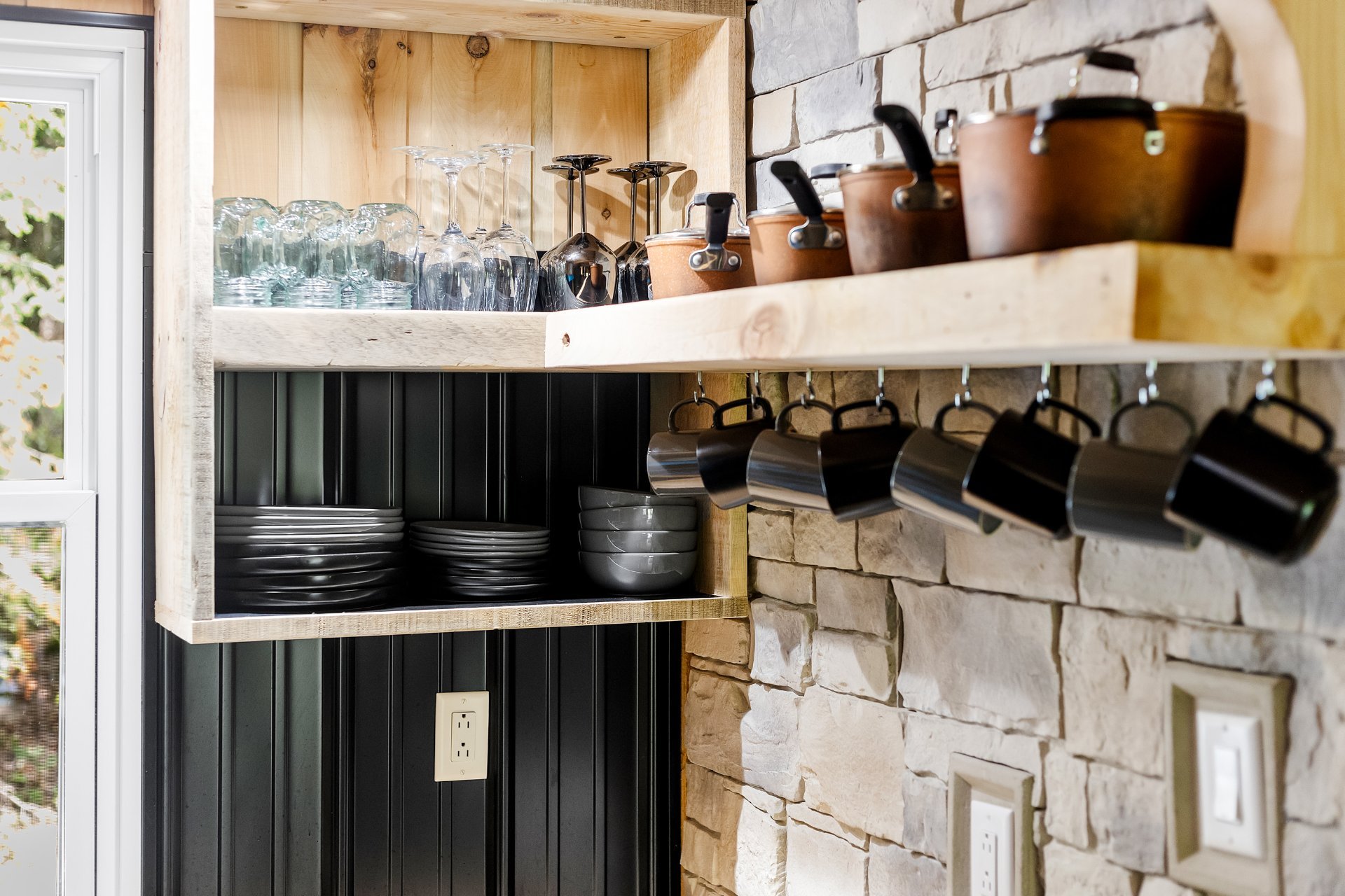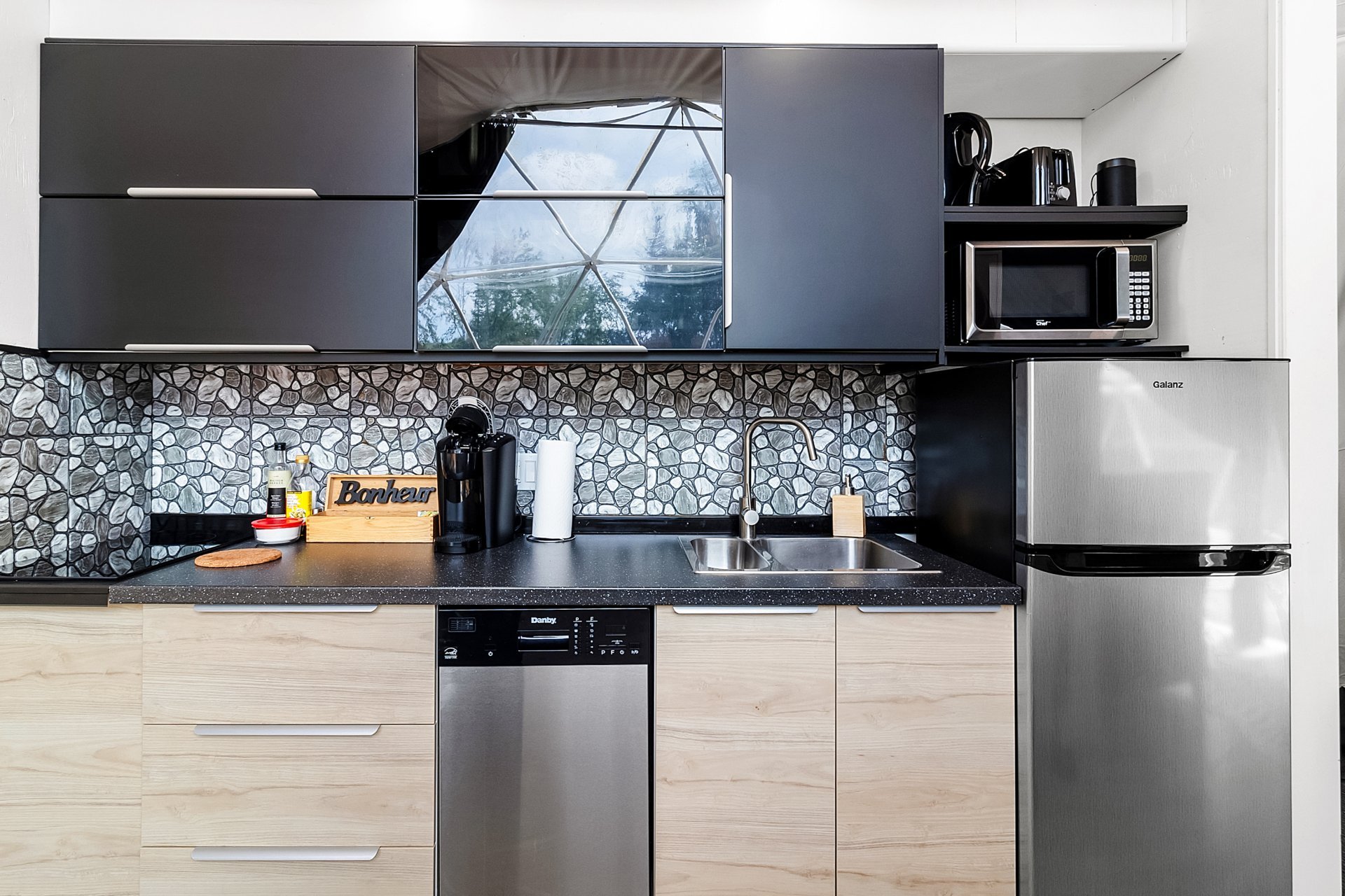 - All the furniture and accessories in the chalets, the spa, the outdoor tables & dock.