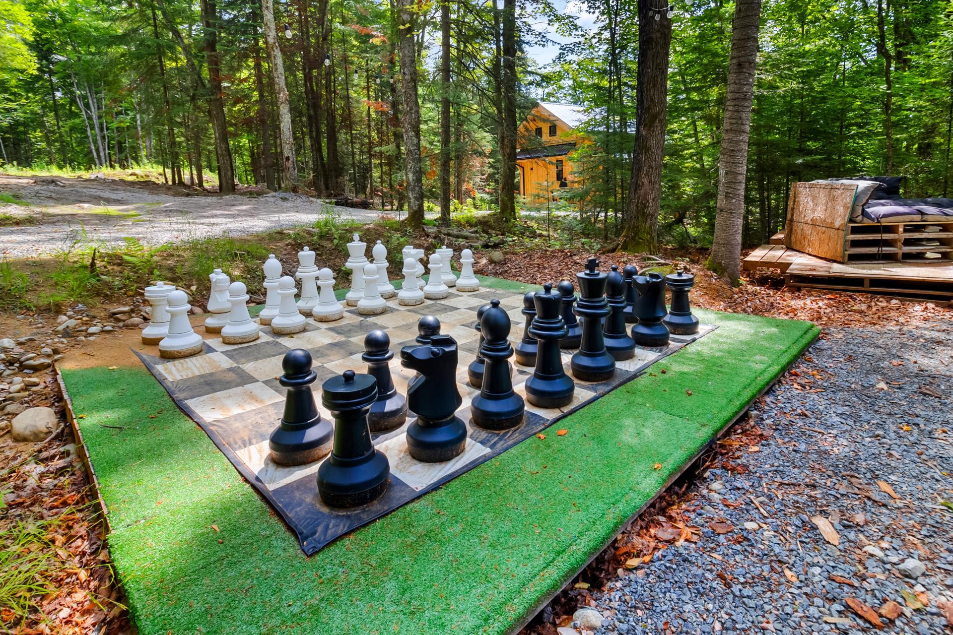 - Relaxation area with a cozy fireplace, gazebo, and giant social game for memorable moments