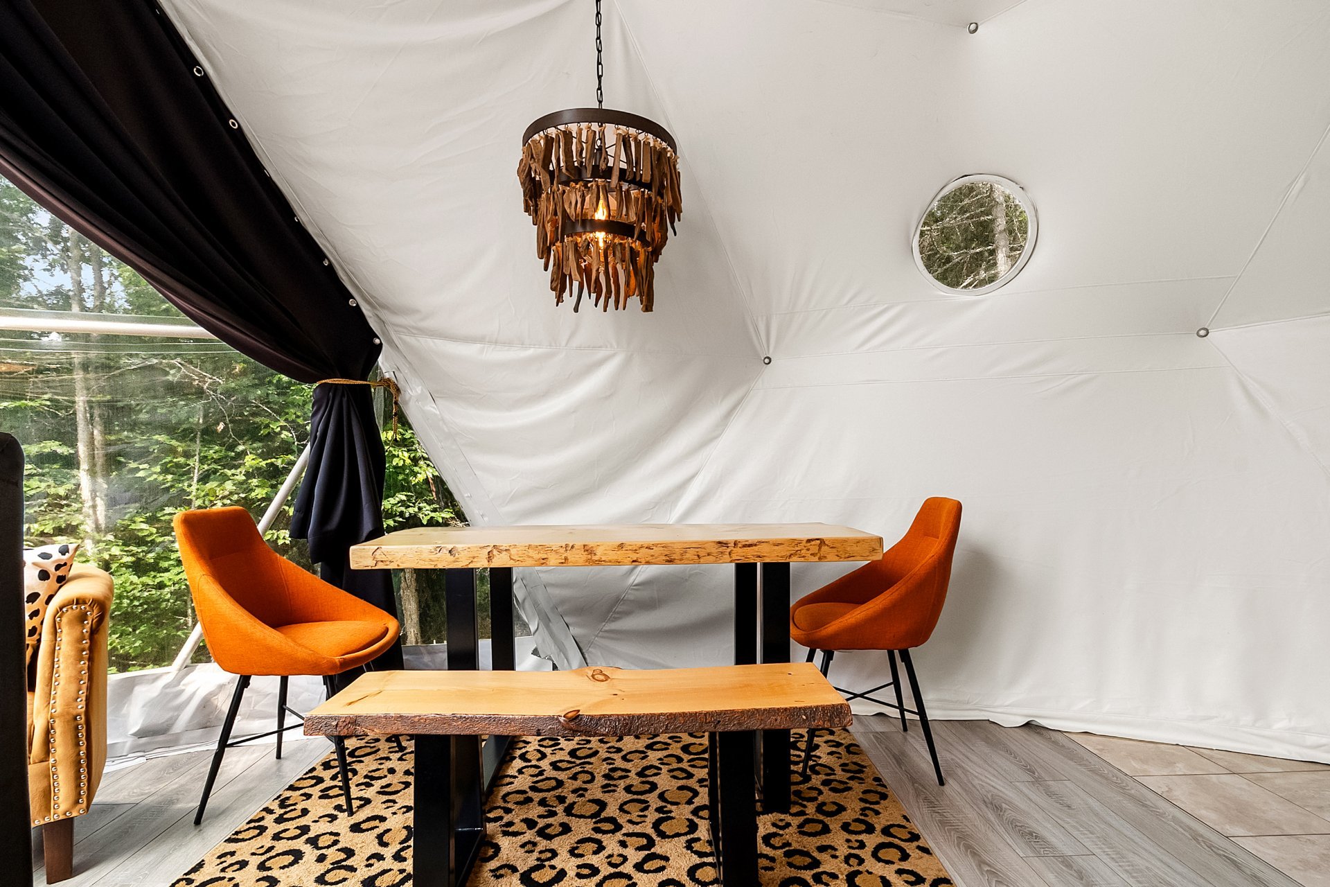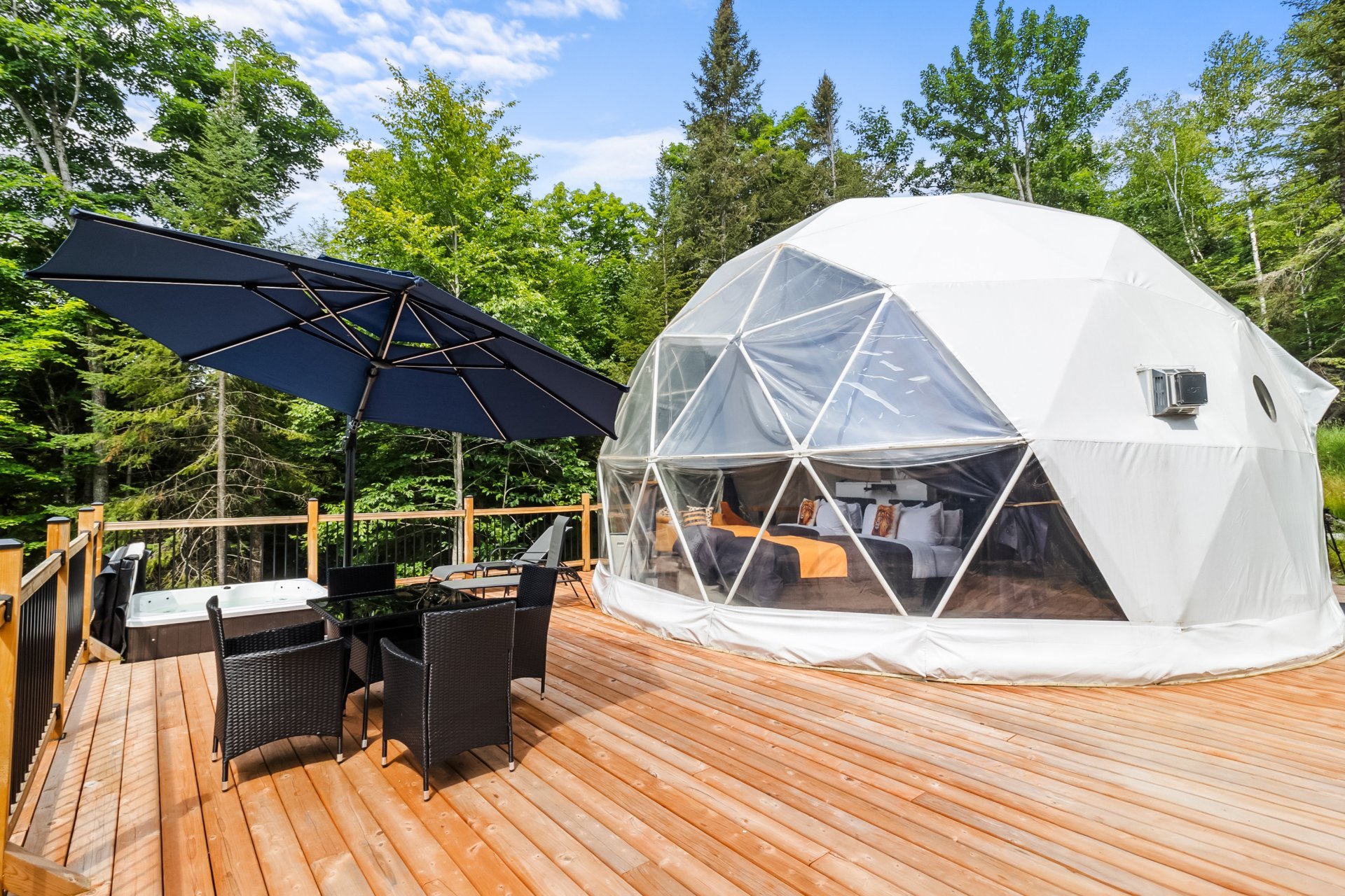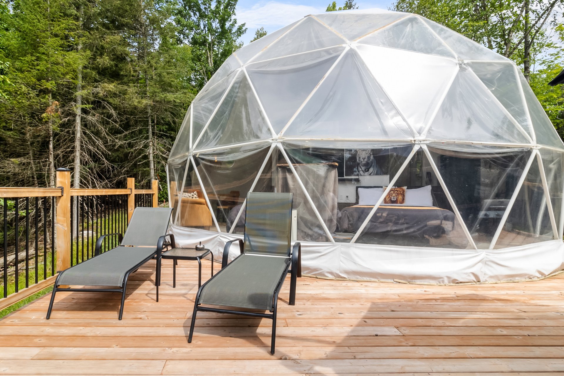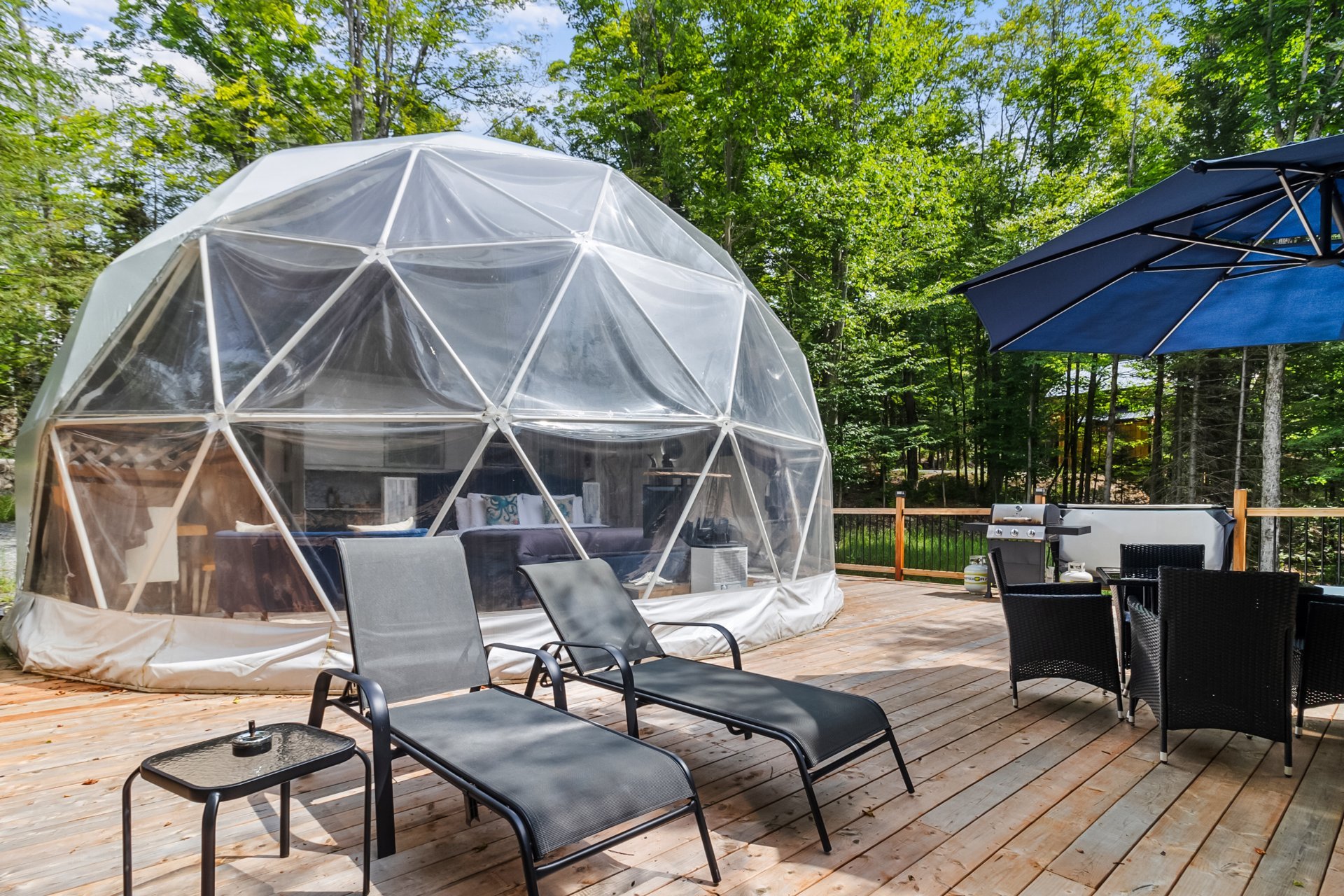 Nestled in a pristine natural setting near Mont-Tremblant, this property offers the perfect escape while holding immense investment potential. The reception chalet, fully operational on two levels, serves as the foundation for an ambitious expansion. The ideal scenario would generate revenue while allowing for further development, with the potential to add up to **12 additional chalets or rental domes**.