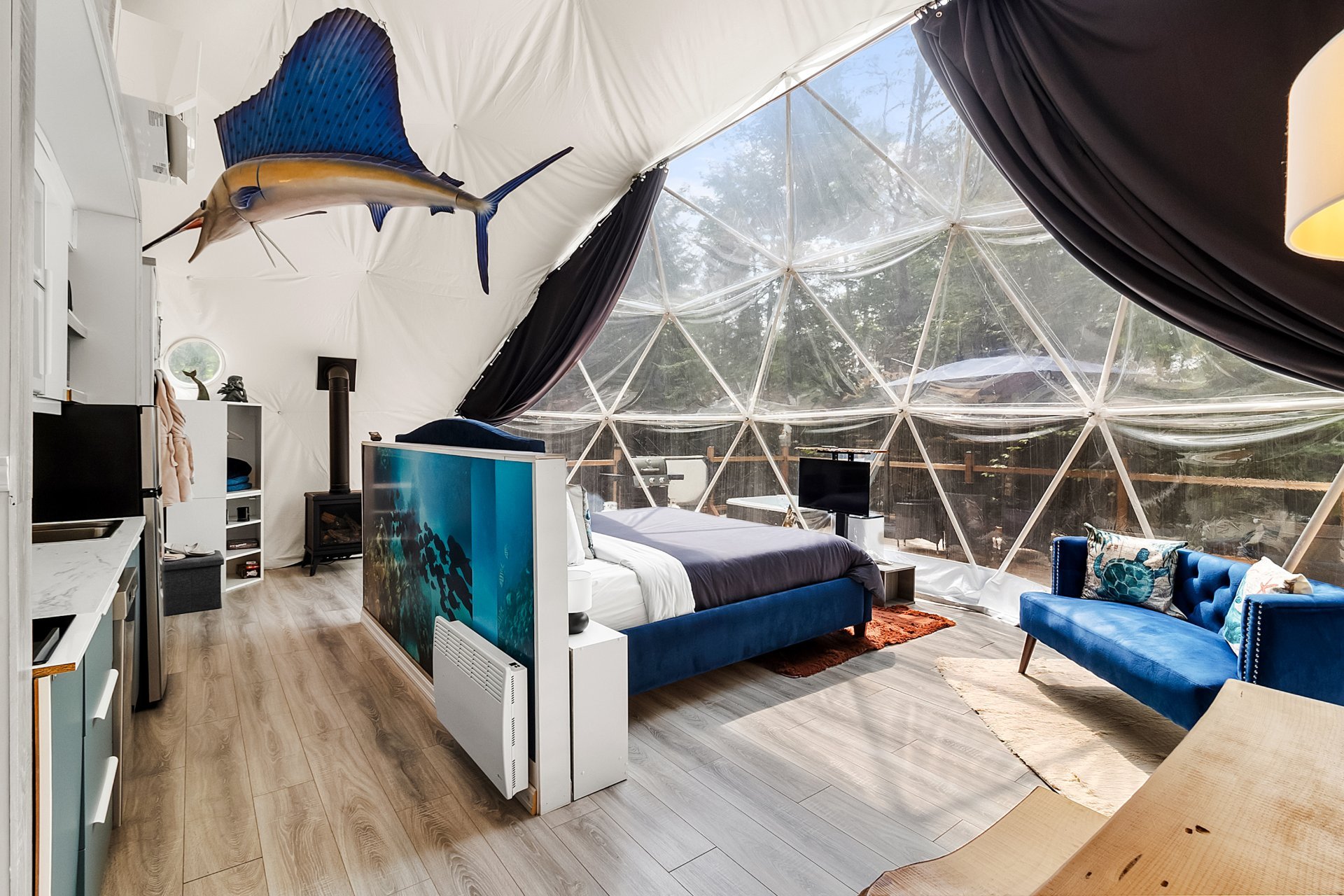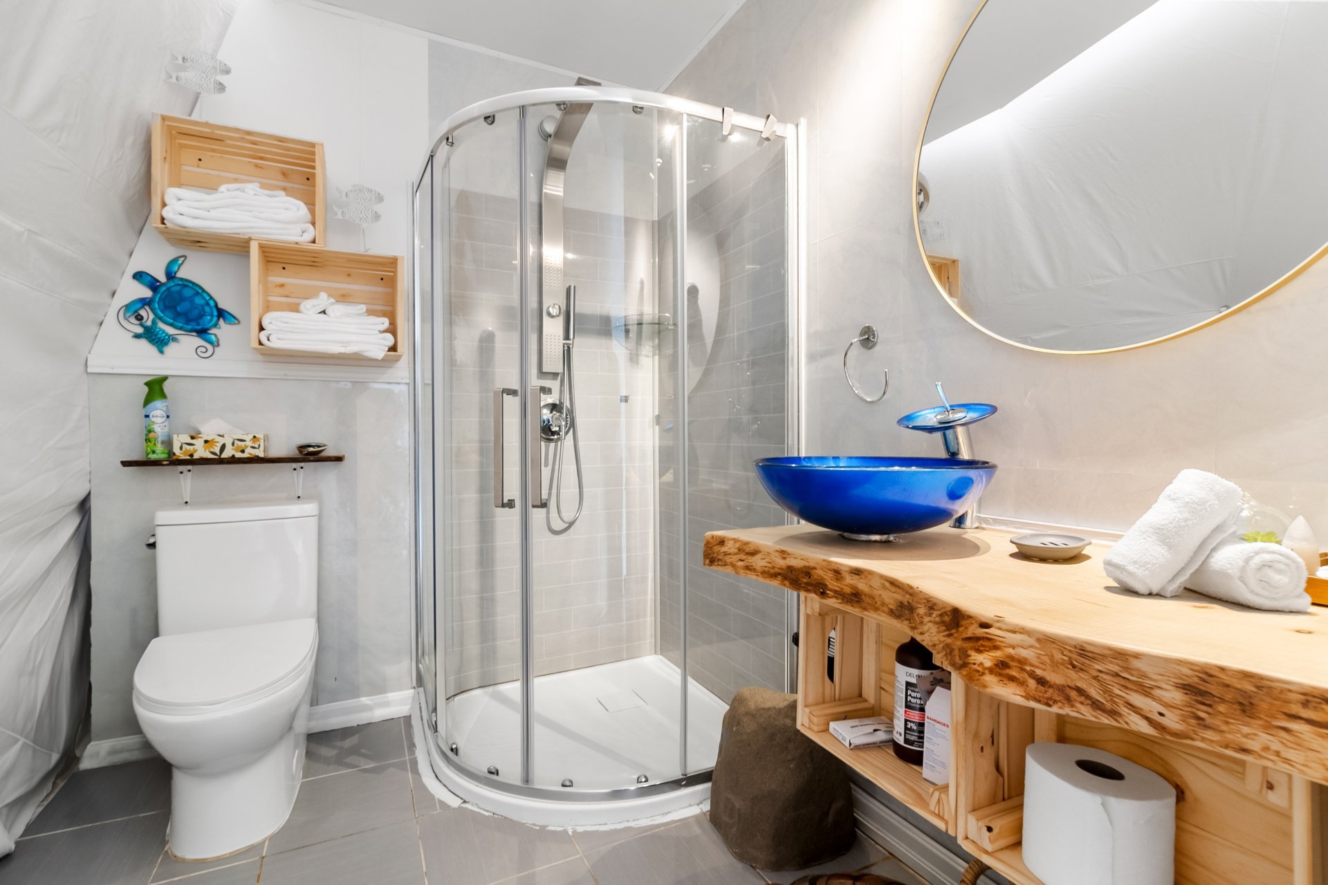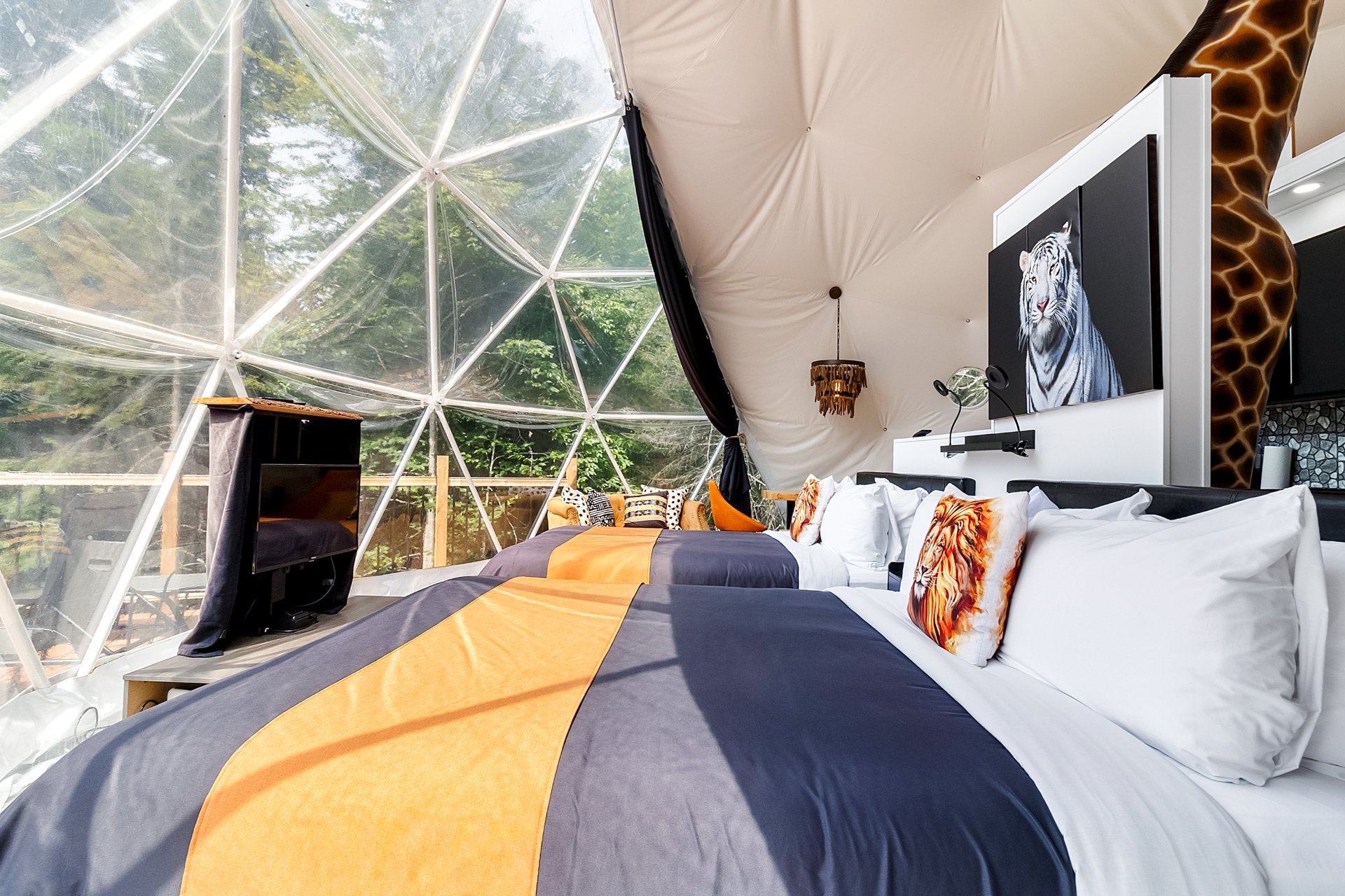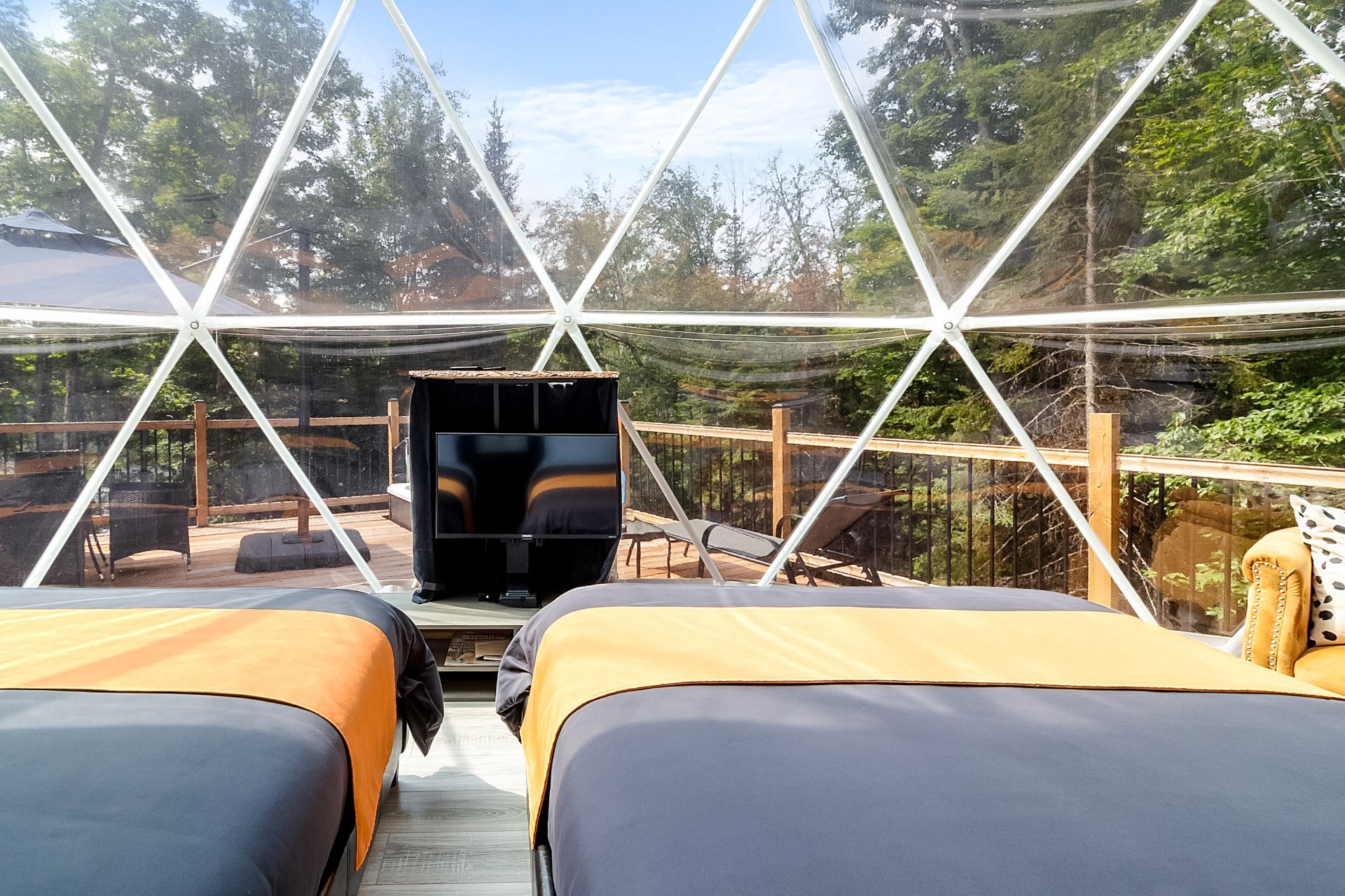 Nestled in a pristine natural setting near Mont-Tremblant, this property offers the perfect escape while holding immense investment potential. The reception chalet, fully operational on two levels, serves as the foundation for an ambitious expansion. The ideal scenario would generate revenue while allowing for further development, with the potential to add up to **12 additional chalets or rental domes**.