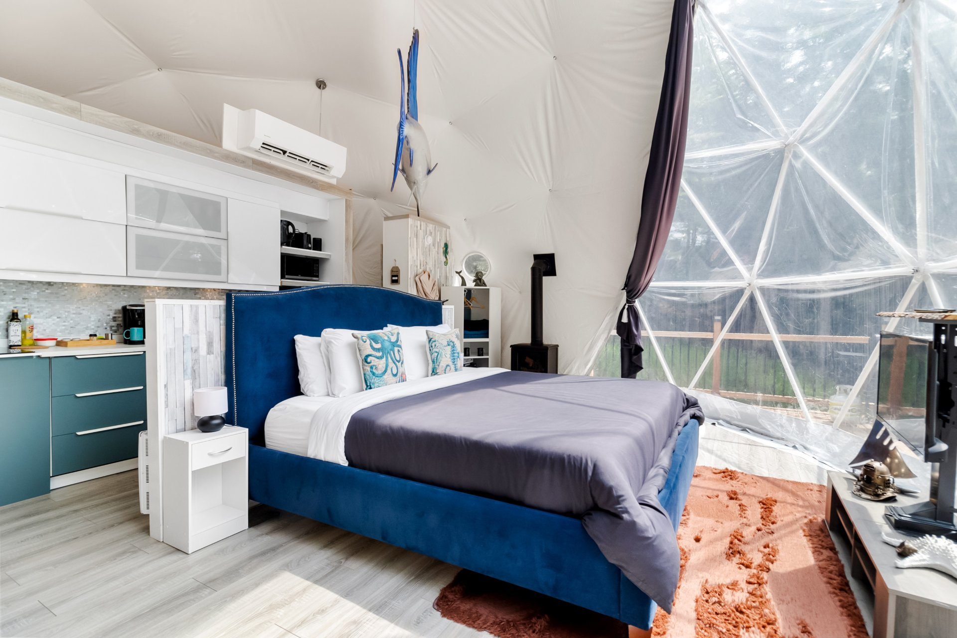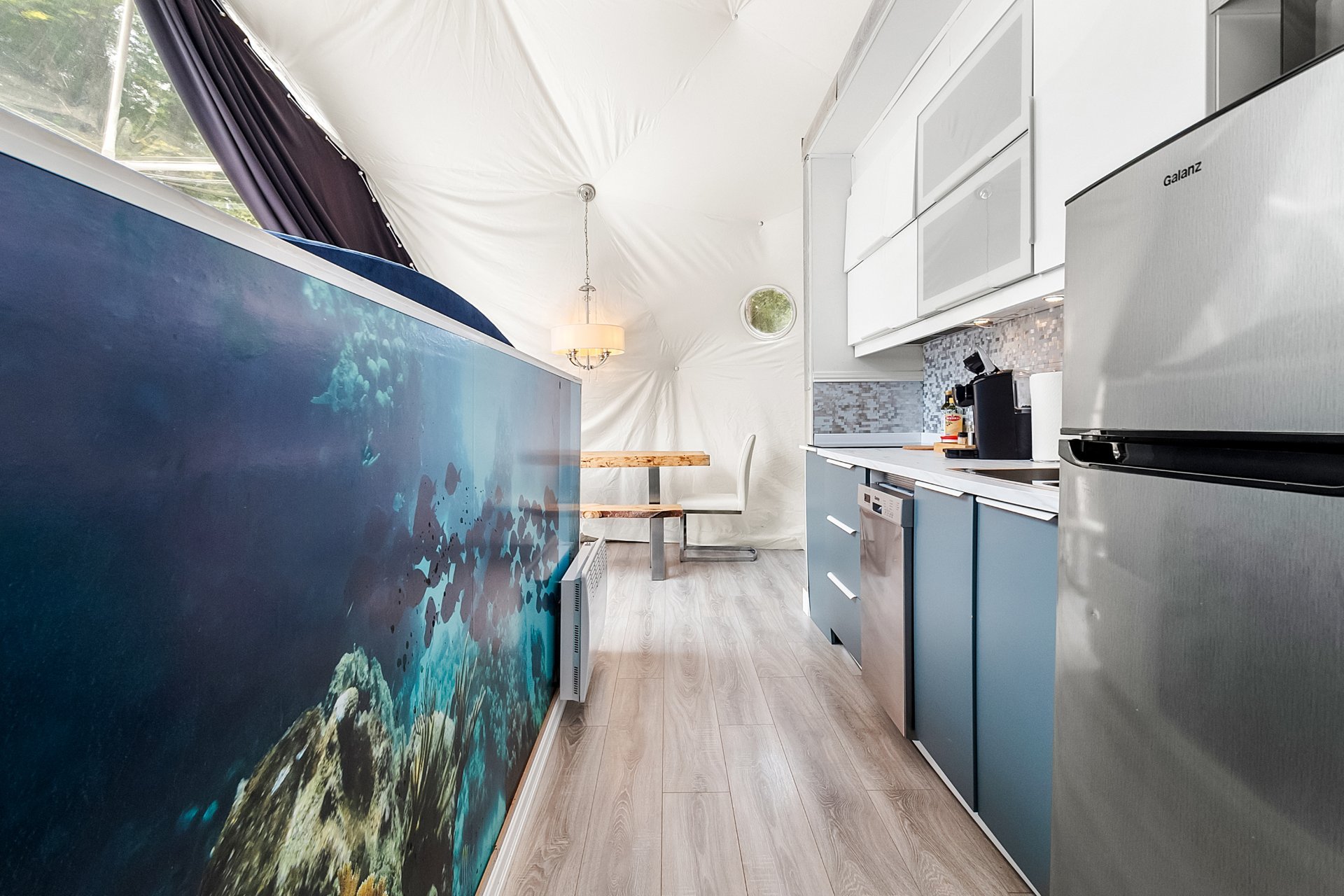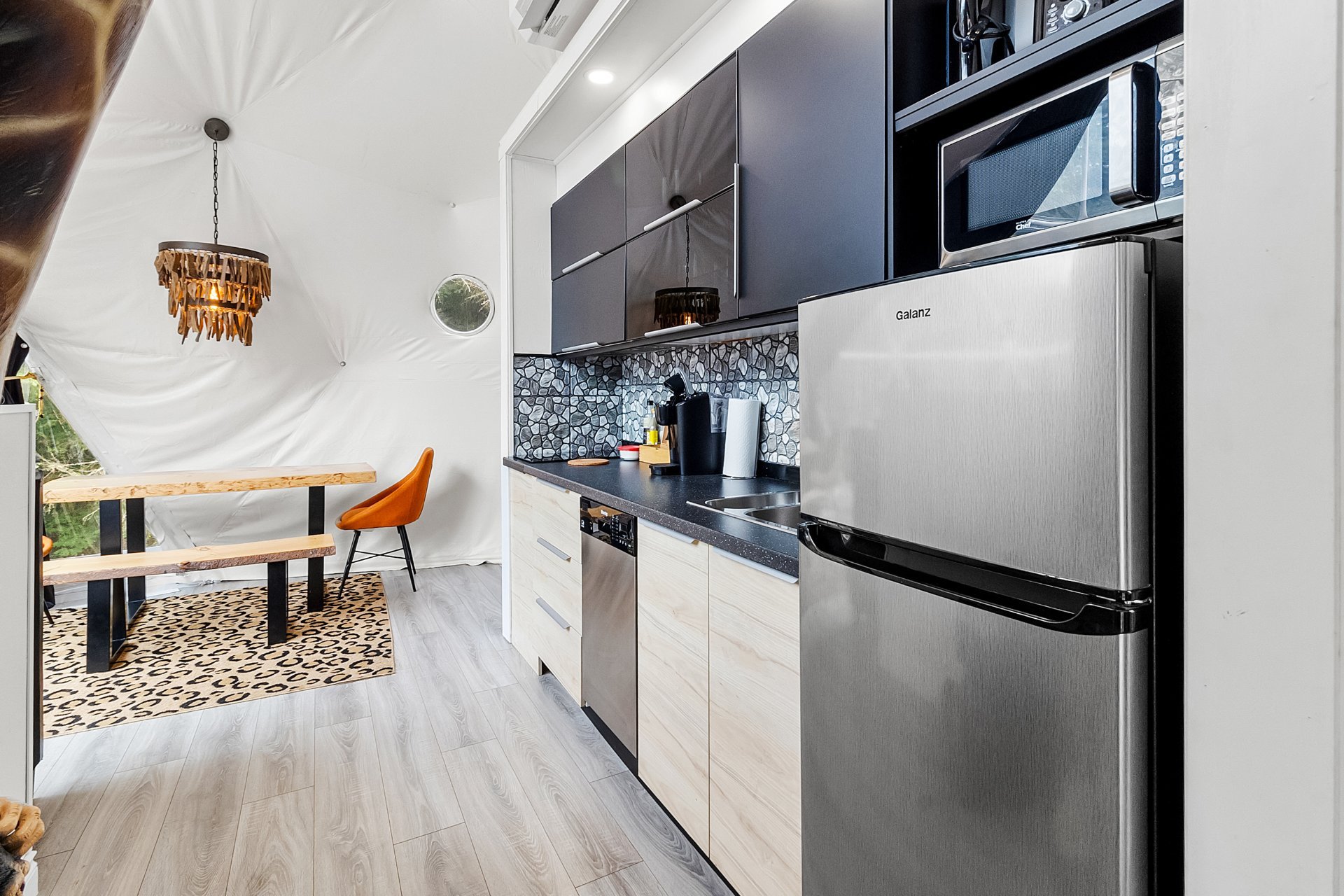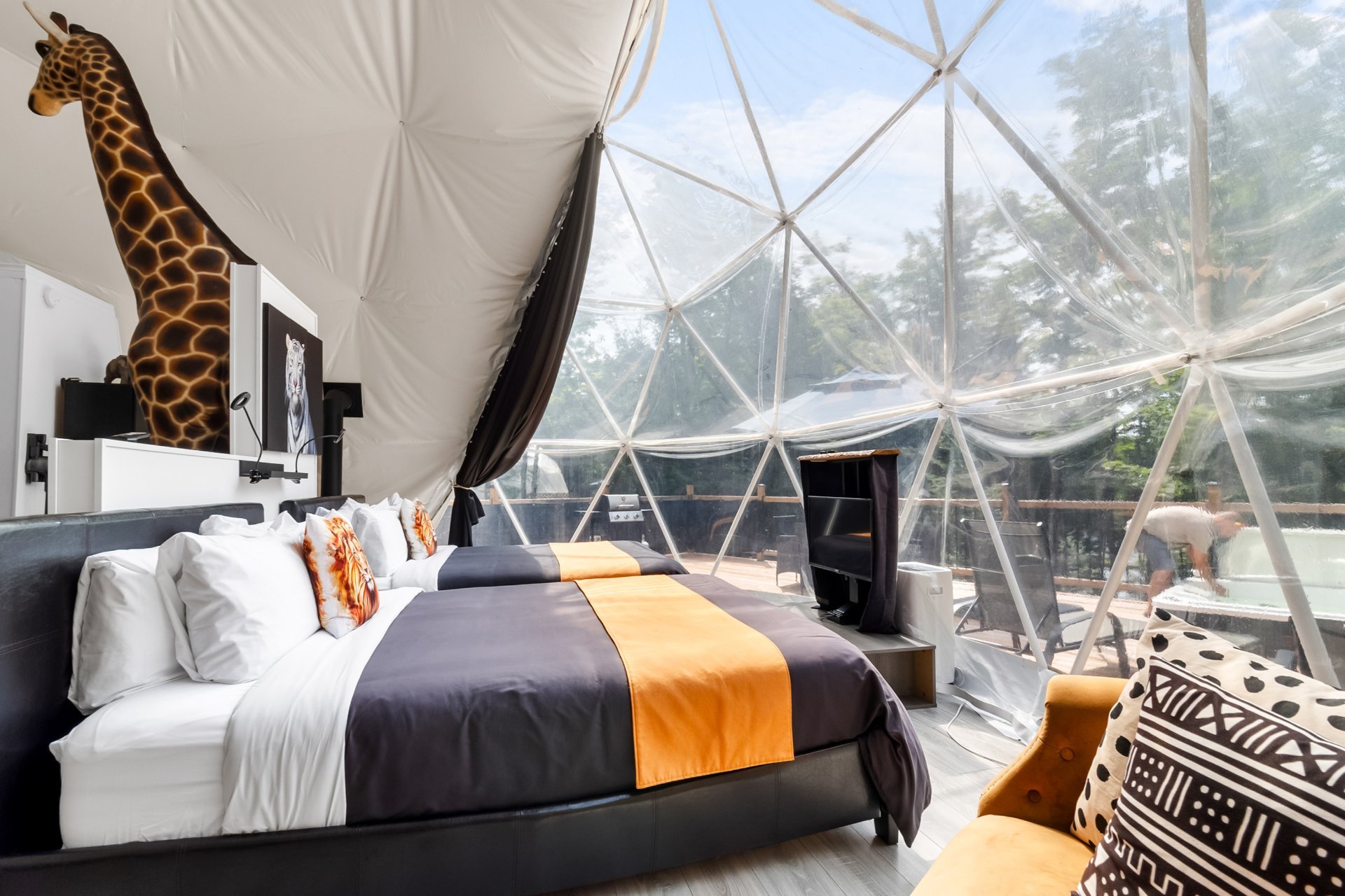 Nestled in a pristine natural setting near Mont-Tremblant, this property offers the perfect escape while holding immense investment potential. The reception chalet, fully operational on two levels, serves as the foundation for an ambitious expansion. The ideal scenario would generate revenue while allowing for further development, with the potential to add up to **12 additional chalets or rental domes**.