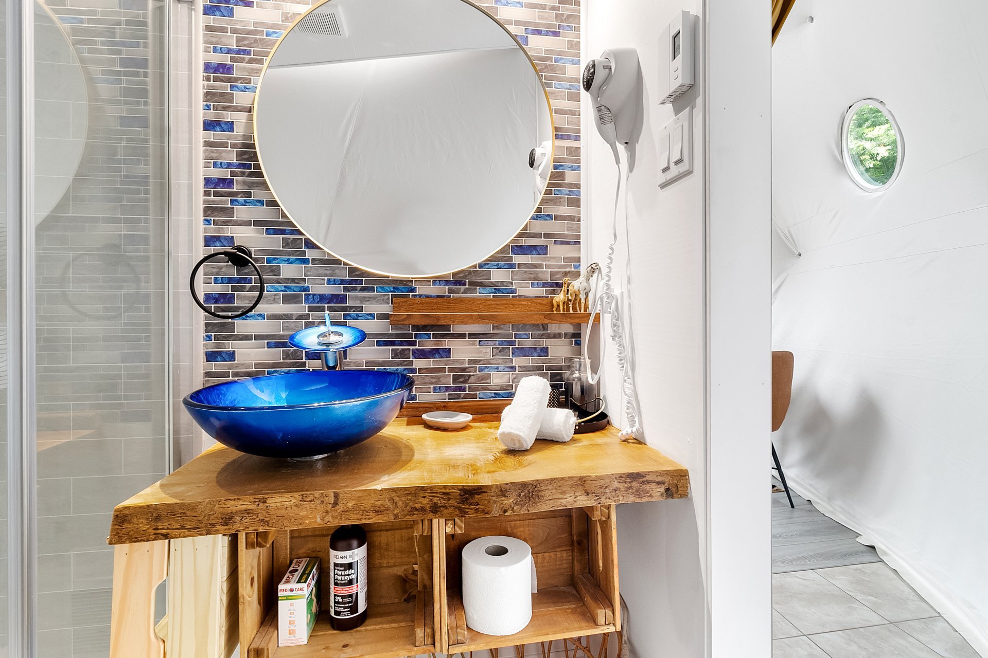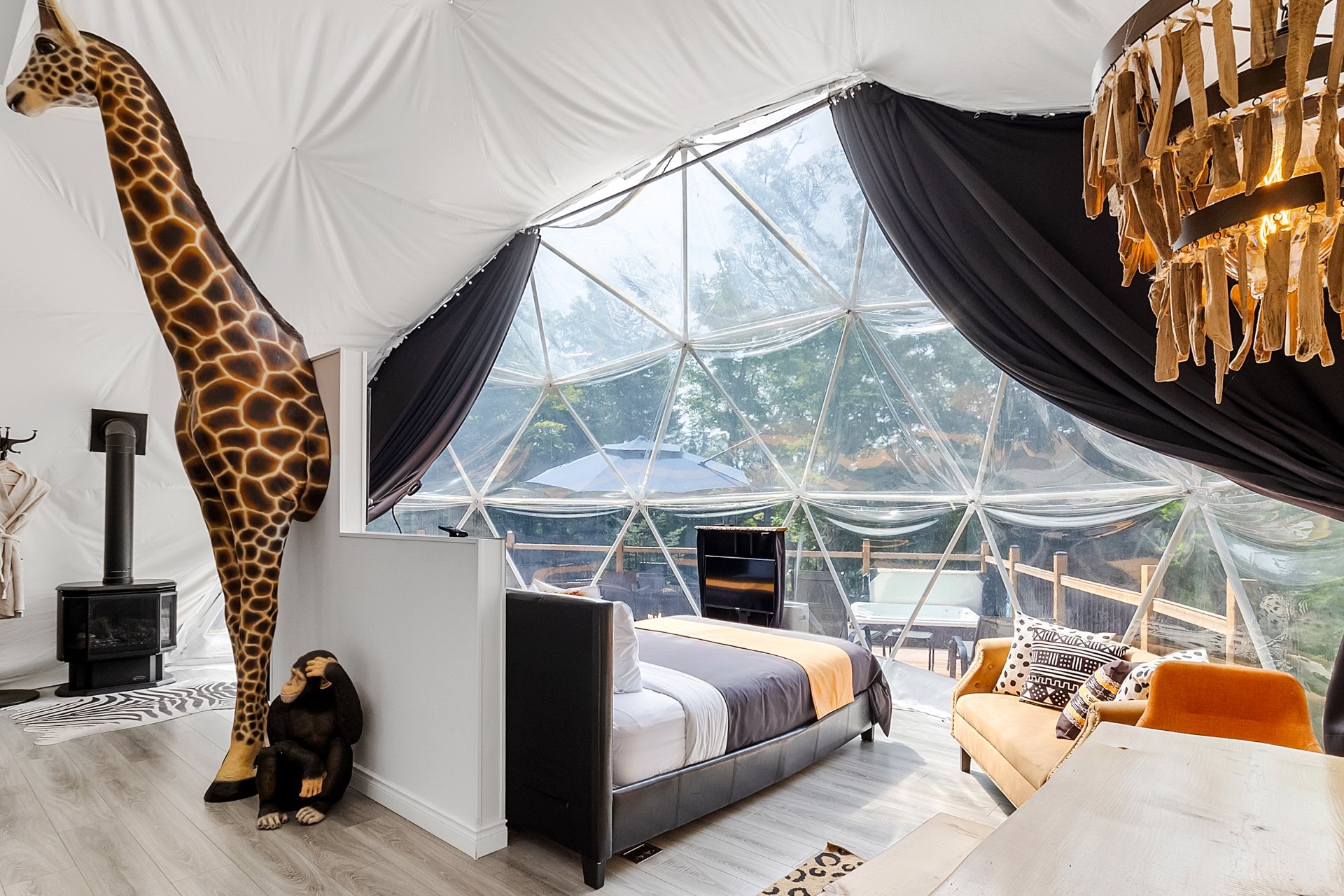 This enchanting property features three currently rented rental chalets and one loft--Le Safari, L'Océan, Le Mathys, and Le Loft--each offering an exceptional experience in nature.