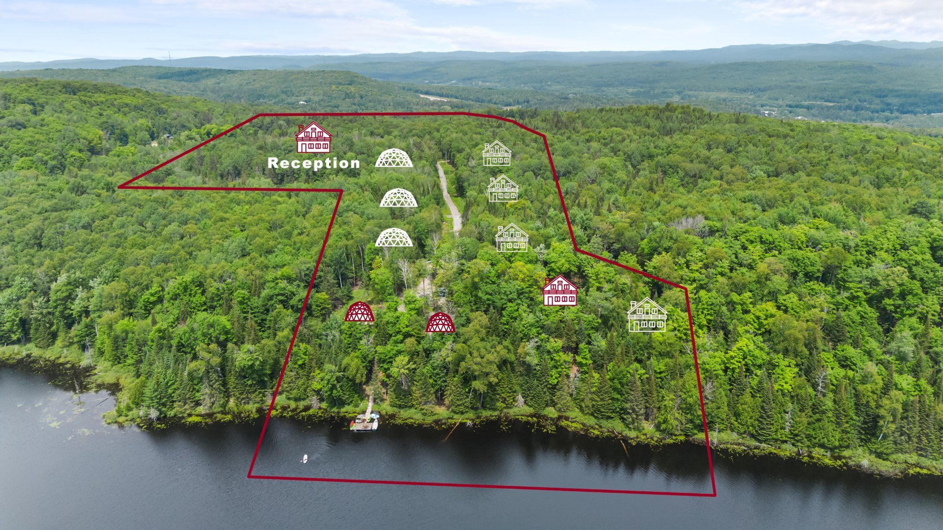 14 acres of pure bliss in Rivière-Rouge! A unique North American opportunity with a lakeside hotel complex, 5 minutes from services and 25 minutes from Mont-Tremblant. Business assets, land, and buildings for sale, with all permits, including CITQ. Domes with lake and mountain views for an unforgettable stay. Potential to add up to 12 additional chalets. Current income potential: $350,000 with Airbnb. Contact me for more information!