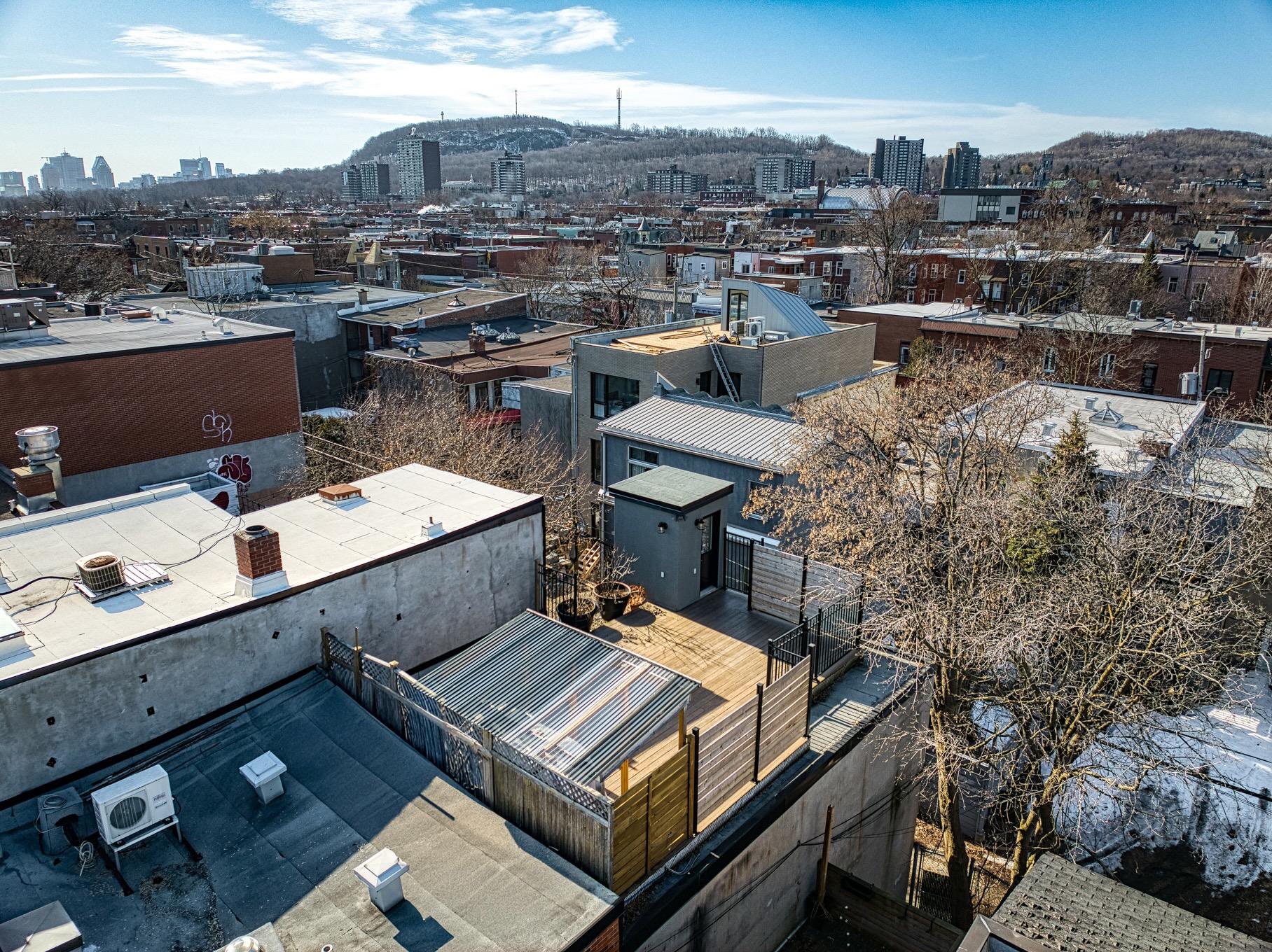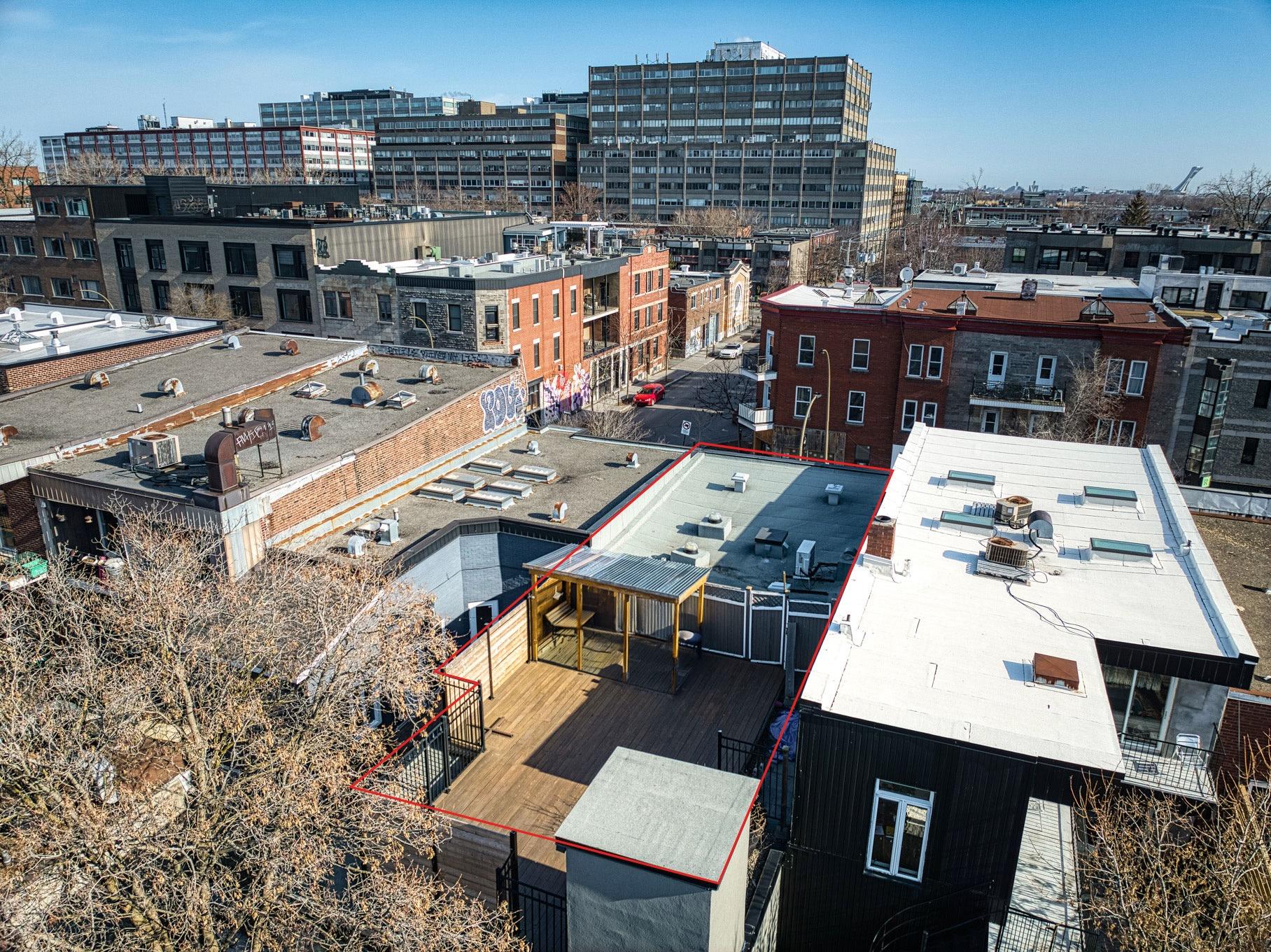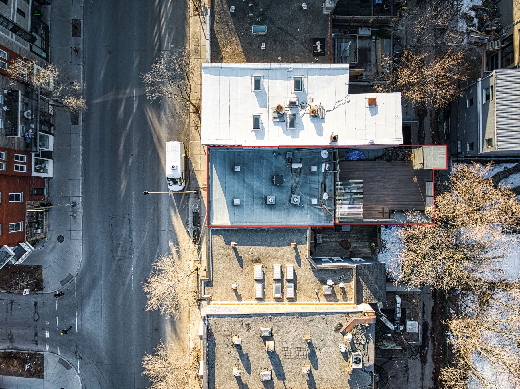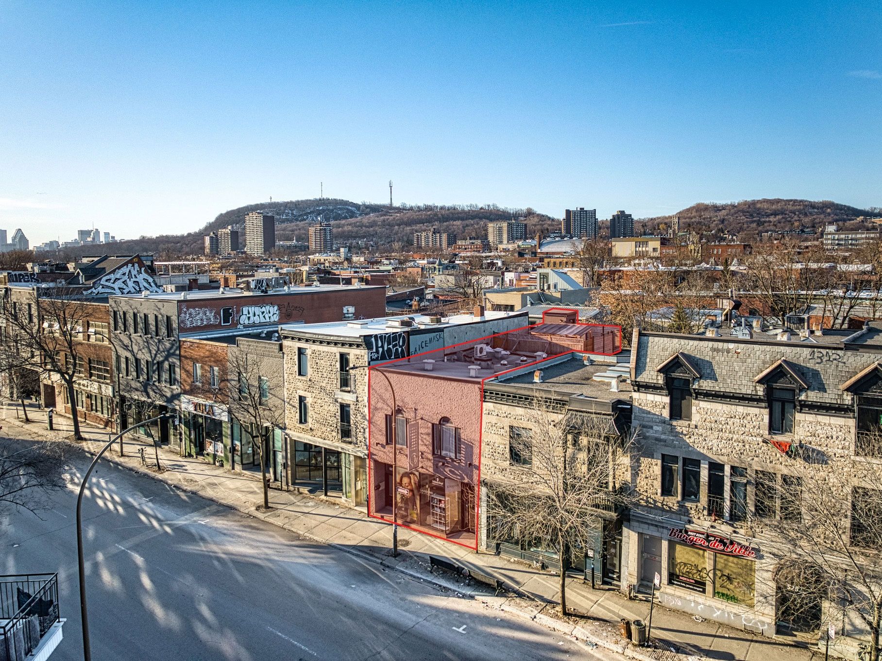 Semi-commercial building located in the heart of the Plateau, combining functional commercial space and warm residential accommodation with private terrace overlooking Mount Royal. The +/-2,315 sq. ft. commercial space extends over two levels, ideal for a variety of professional activities. Possibility of share buy-back to facilitate continuity of operations. Upstairs, the +/-1,800 sq. ft. apartment features three bedrooms, two bathrooms, a bright living area and direct access to the terrace. Flexible zoning for multiple uses. Strategic location, excellent visibility and constant traffic.