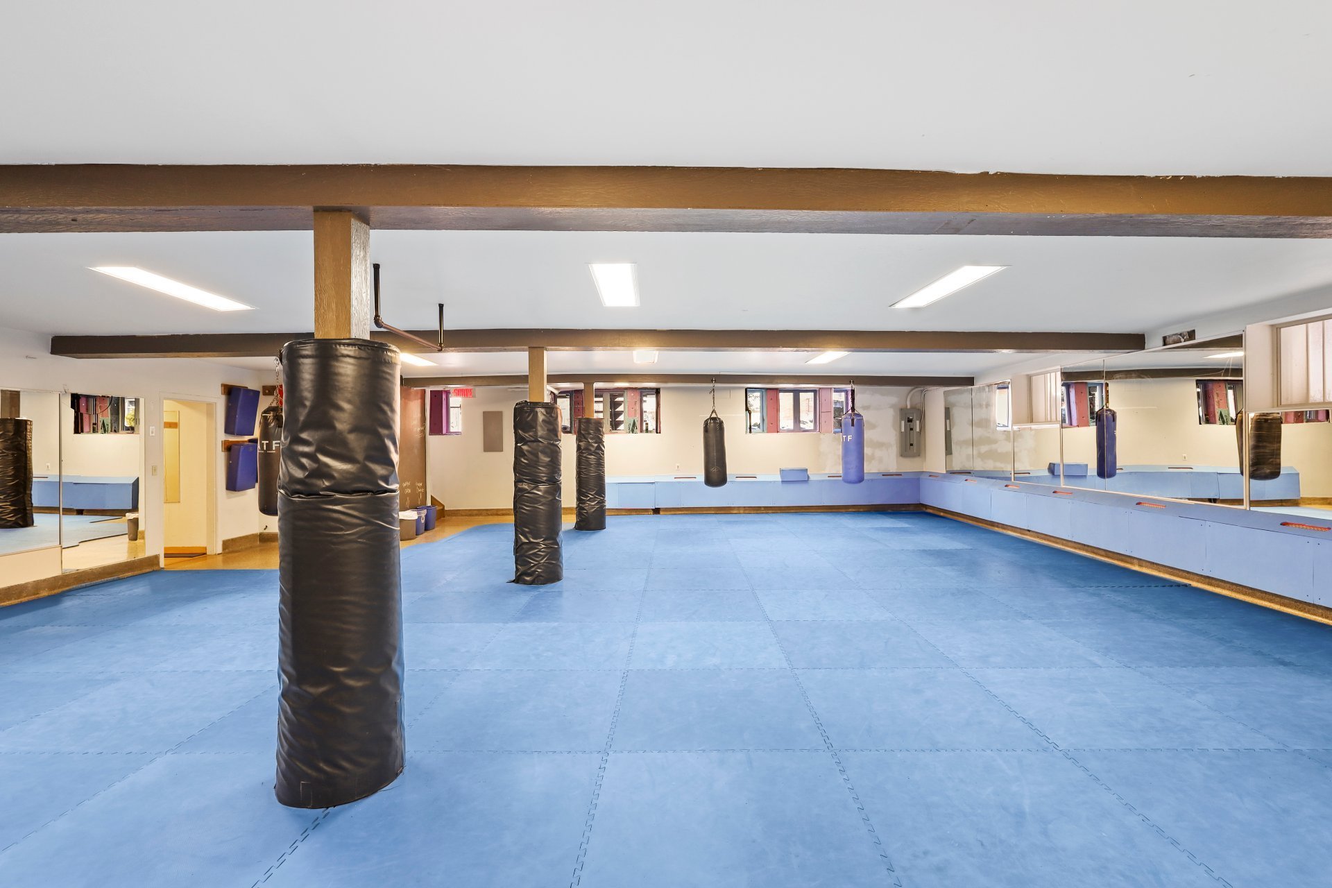 Le sous-sol, d'une superficie approximative de 1 750 pi², offre lui aussi un espace ouvert comprenant deux salles de bain distinctes, un ancien espace d'entraînement et de vastes zones de rangement. Ensemble, ces deux niveaux représentent plus de 4 200 pi² offrant de nombreuses possibilités d'utilisation.