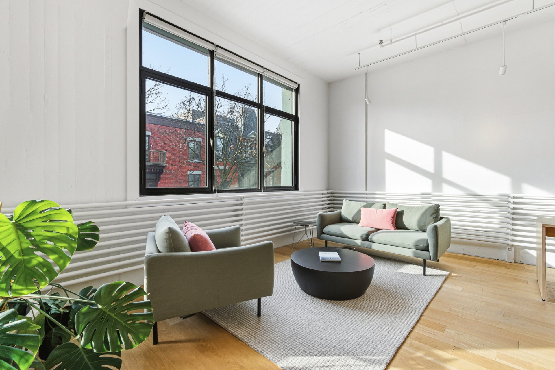 Bienvenue à la Suite 209 du Le Berman, un loft commercial rénové avec soin, où le cachet d'origine rencontre une finition exécutive moderne. Dans un immeuble patrimonial de 1911 à l'angle St-Laurent/Duluth, cette suite d'angle d'environ 1 511 p.c. profite d'une lumière abondante, de grandes fenêtres et de plafonds près de 11 pi. Repensé pour une image de marque, l'espace offre planchers de bois à larges lattes, lignes épurées, palette affirmée et une salle de réunion fermée noir mat, idéale pour conseil ou présentations.