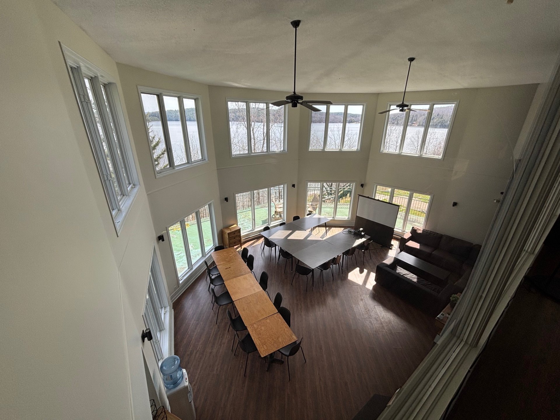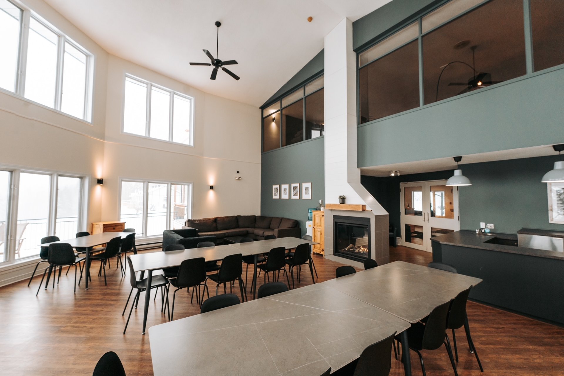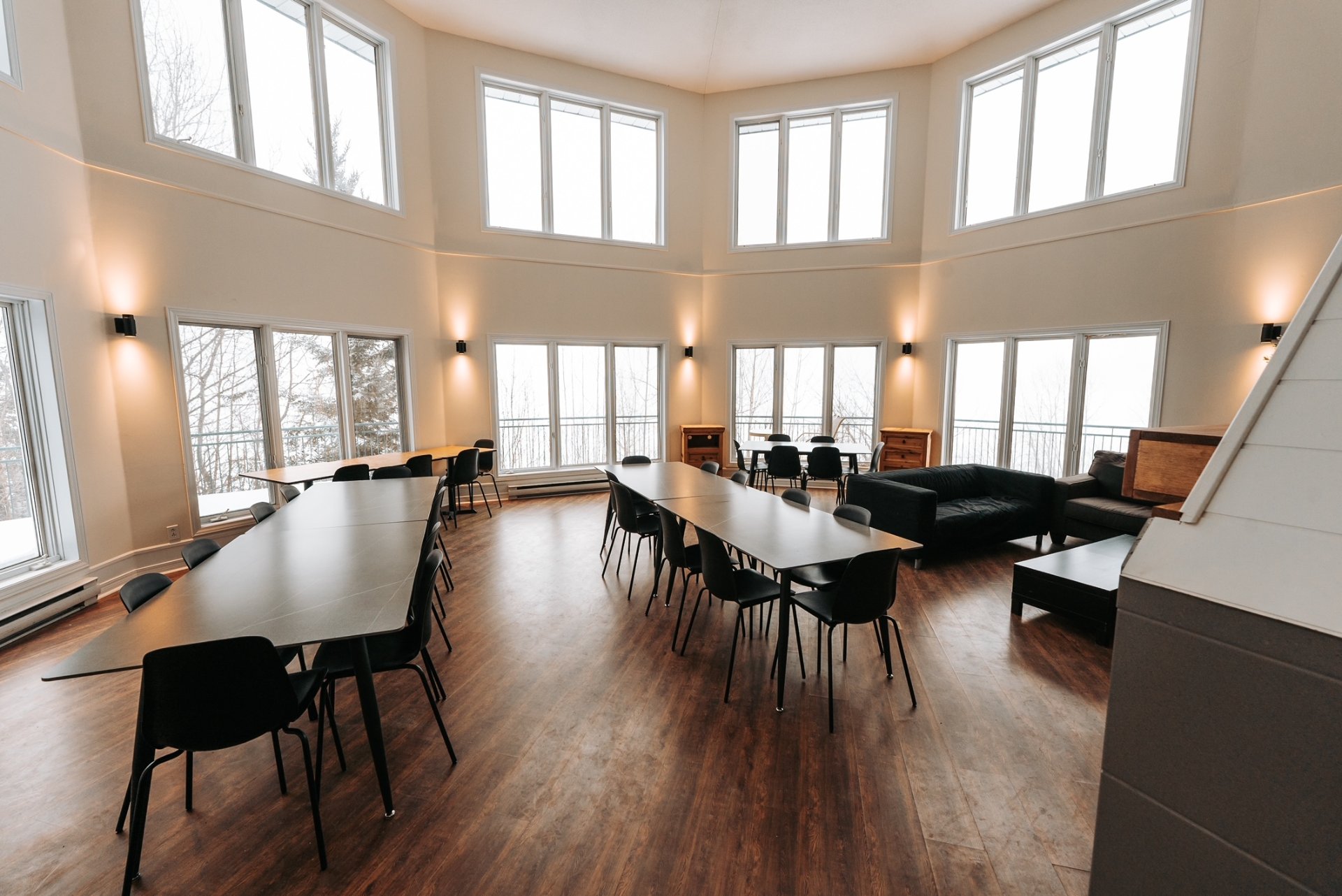 Salle-à-manger pour les groupes avec vue sur le lac et cuisine commerciale (non-exploité pour l'instant)