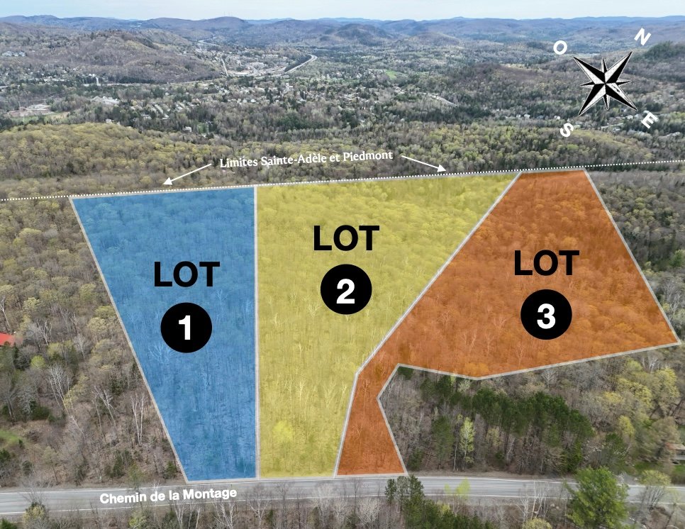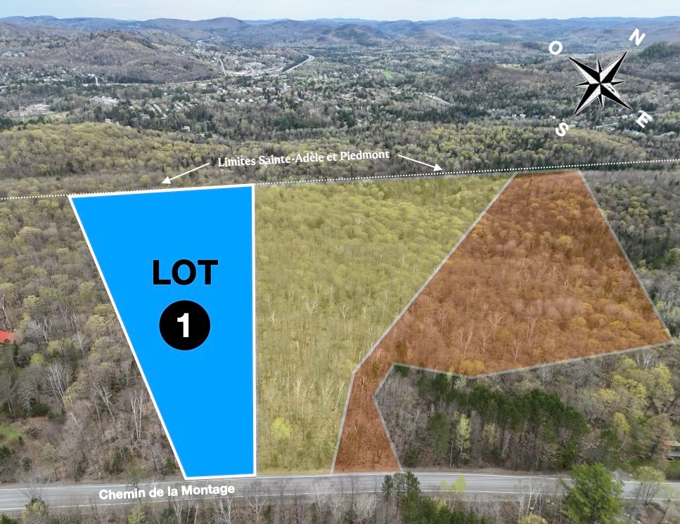 Site boisé de près de 3,5 acres (150 000 pi²) à Piedmont, aux limites sud de Saint-Adèle, tout près du Mont Olympia et de plusieurs pistes de randonnée, de vélo et de ski de fond. Vue sur Sainte-Adèle et les montagnes, à moins de 5 minutes du village de Saint-Sauveur, du golf et de la piste cyclable. Terrain prêt à construire, avec une pente légère, idéal pour une construction avec sous-sol en rez-de-jardin. Forêt mixte composée en grande majorité de feuillus.