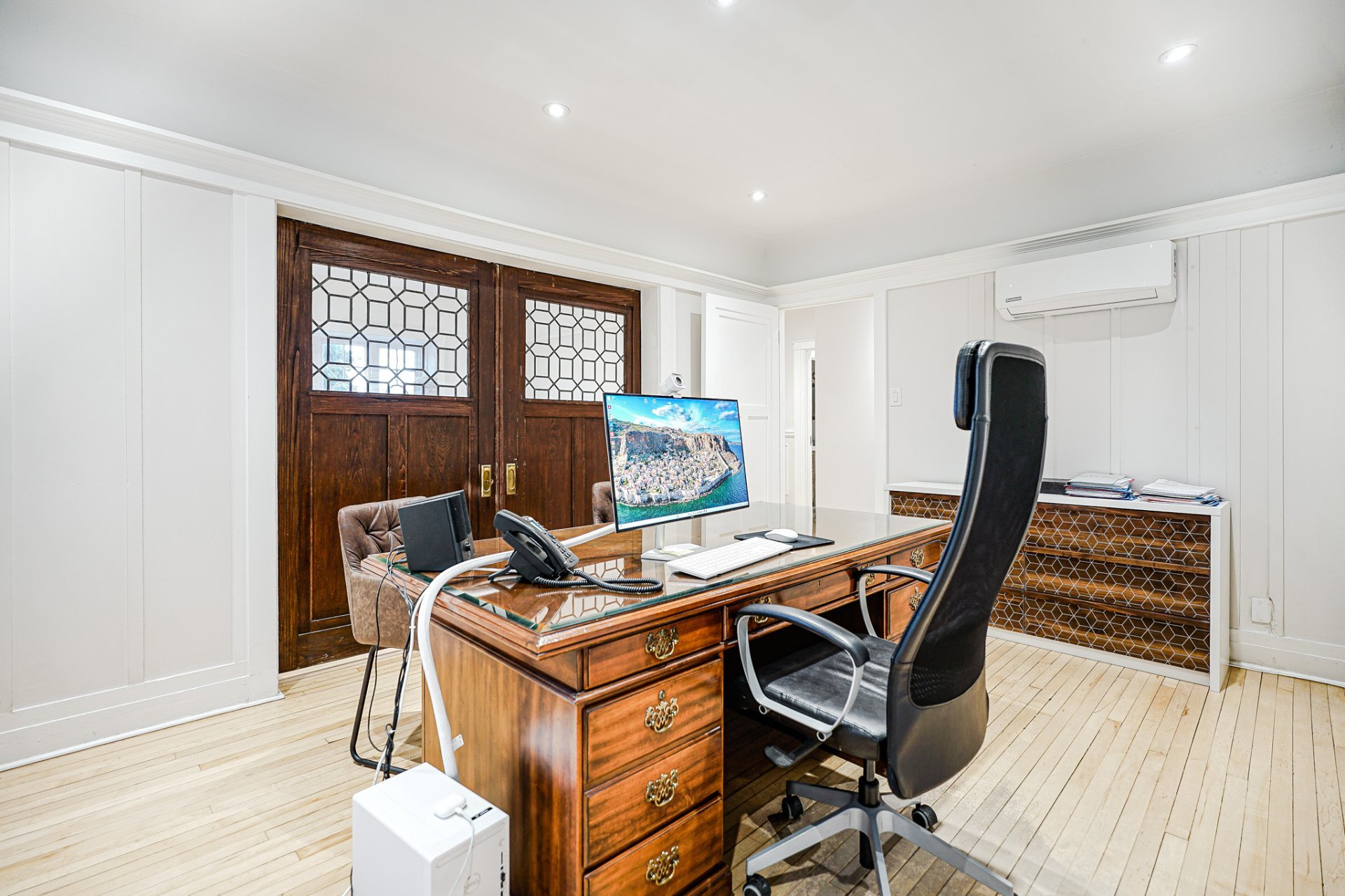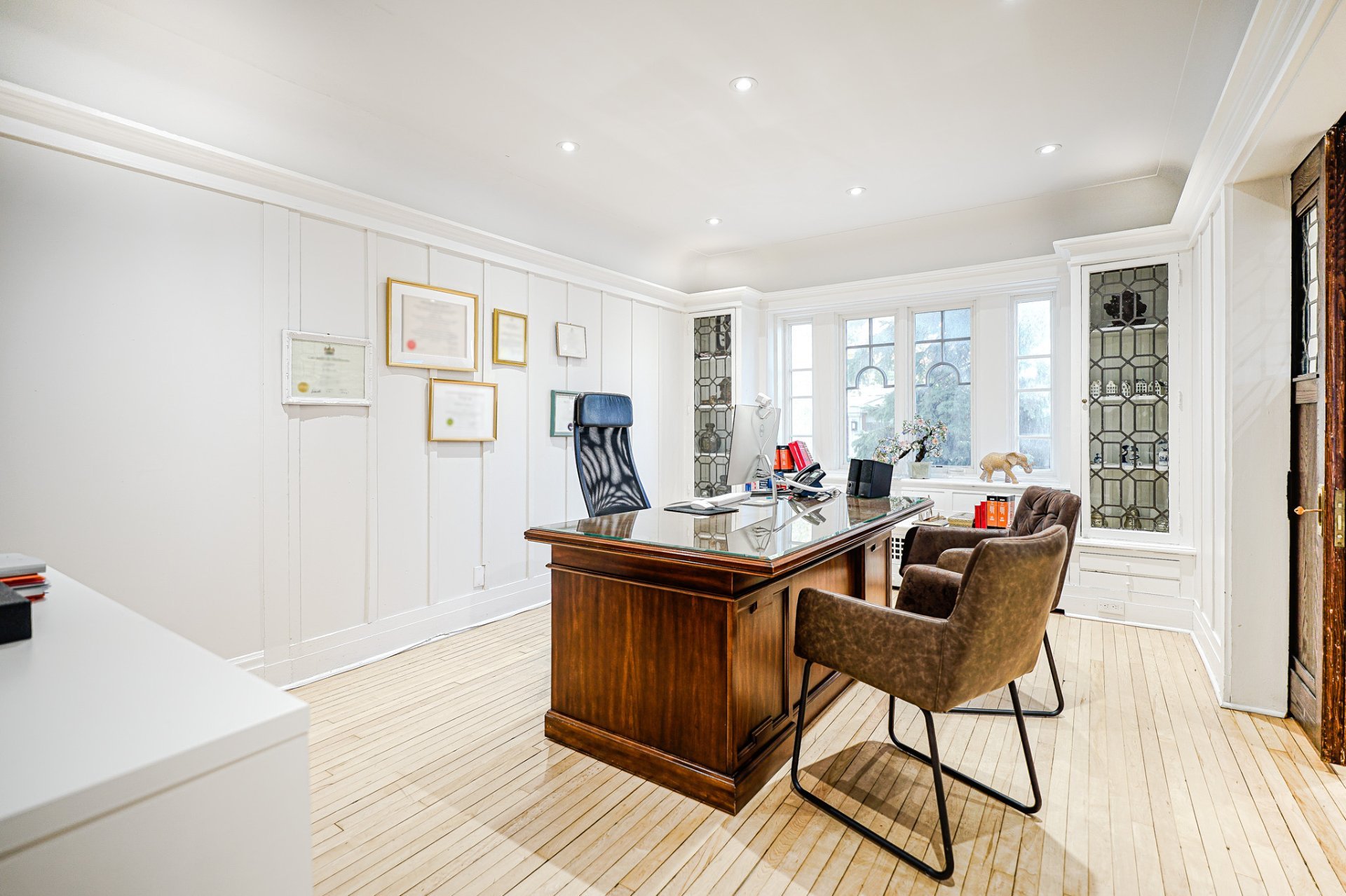 Magnifique espace de bureaux rénové bénéficiant d'une visibilité maximale dans un emplacement recherché. Face au parc Westmount, cette propriété historique offre des espaces de bureaux prestigieux pour divers services professionnels et médicaux. Immeuble entièrement indépendant situé à l'angle des rues Strathcona et Sherbrooke, avec fenestration et lumière naturelle abondante, hauts plafonds, planchers de bois et foyer décoratif. Cinq espaces de bureaux: quatre fermés et un à aire ouverte, une salle de bain et un coin cuisine. Deux (2) stationnements extérieurs dans l´allée aménagée. Facilement accessible et à proximité de tout!
