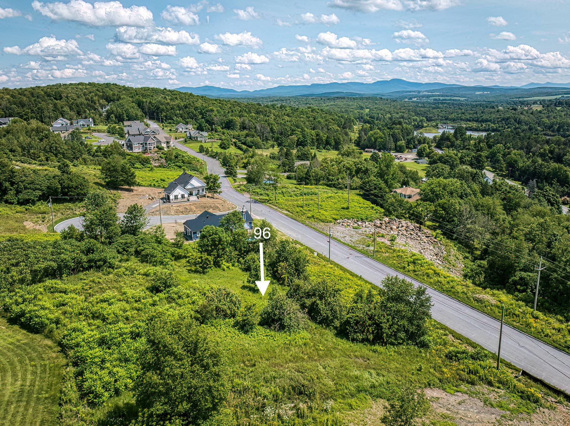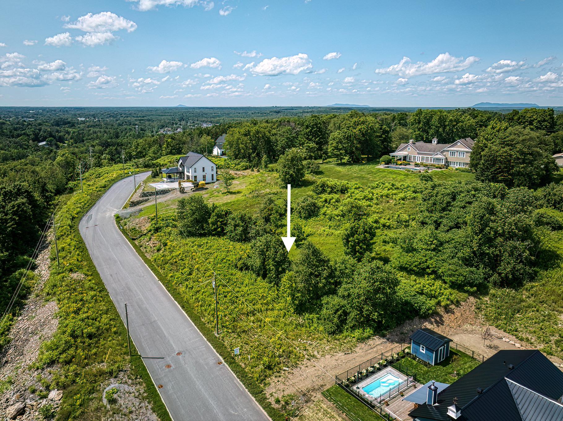 Lot #96 Terrain de 15,500pc. situé tout en hauteur avec VUE PANORAMIQUE sur les montagnes de Sutton et Jay Peak. Quartier haut de gamme unique dans les Cantons de l'Est dont la grande attention a été portée au plan de lotissement, orientation Sud/Sud-Est, afin de maximiser les points de vues de chaque propriété. Services municipaux d'aqueduc et d'égout, rue asphaltée. Seulement 4 lots restant avec vue panoramique. Informez-vous, prêt à construire!