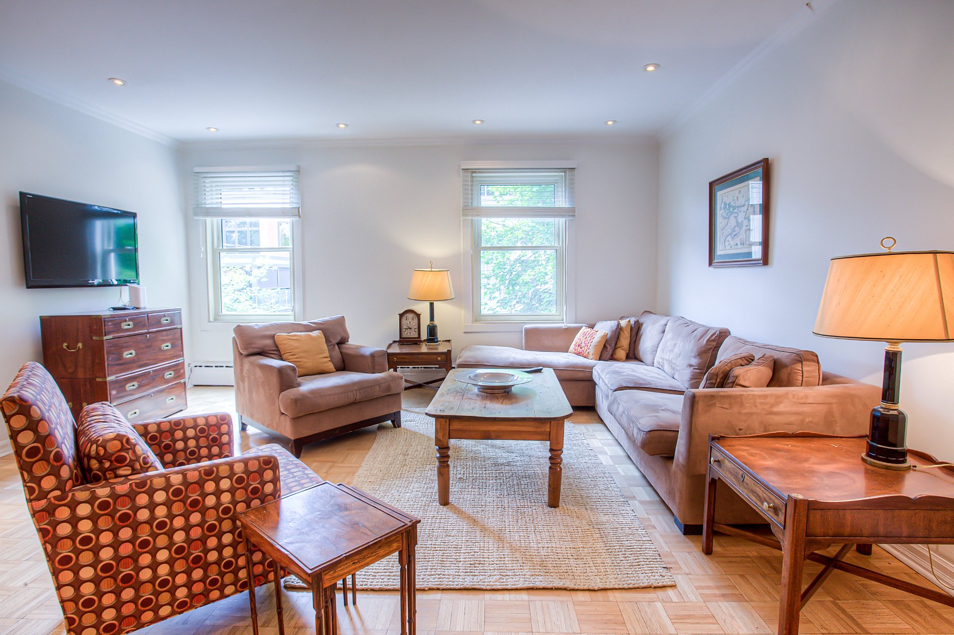 - #455: Table et chaises de la salle à manger, commode et 2 tables de chevet dans la chambre principale, tables d'appoint dans le salon, table à café, commode sous le téléviseur dans le salon. Ces items seront retirés à la fin du bail. #457: Les effets personnels, luminaires, les oeuvres d'art, tous les habillages de fenêtres. #457a: Les meubles. #459: Tous les lustres, les oeuvres d'art, le téléviseur dans le salon à l'avant de l'unité. Effets personnels l'armoire/bureau vert dans la cusinines
