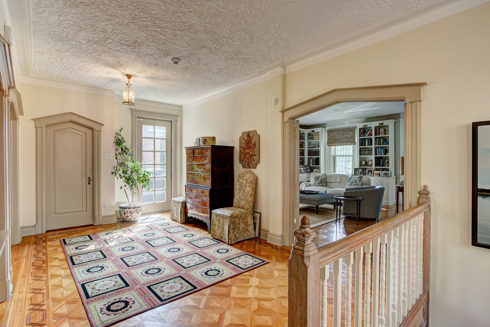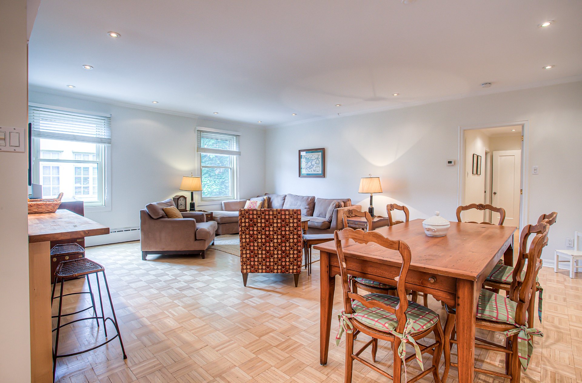 Cette unité à l'étage supérieur offre également plus de 3 000 pi² d'espace de vie, avec des pièces aux dimensions généreuses, de nombreuses fenêtres pour une lumière naturelle abondante, & des finitions soignées. Parfaite pour les grandes familles. La disposition comprend 4 cacs, 3 sdb, un boudoir dédié, ainsi qu'une pièce arrière supplémentaire pouvant servir de 2e boudoir, ou un bureau. La chambre principale dispose de sa propre salle de bain attenante & est bien séparée des autres chambres. La cuisine à aire ouverte comprend un grand îlot & un coin dinette, idéale pour les repas en famille ou les réceptions. Attenant à la dinette, le boudoir assure une excellente fluidité pour la vie quotidienne. Le salon est spacieux & accueillant, doté d'un foyer au gaz pour plus de chaleur & d'ambiance. L'unité comprend également une entrée privée, un balcon privé, climatisation centrale, de beaux planchers en bois & des moulures élégantes.