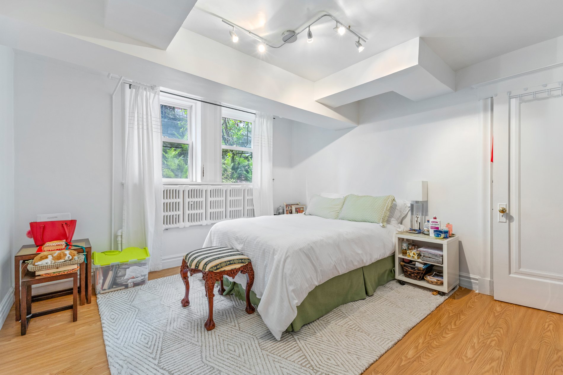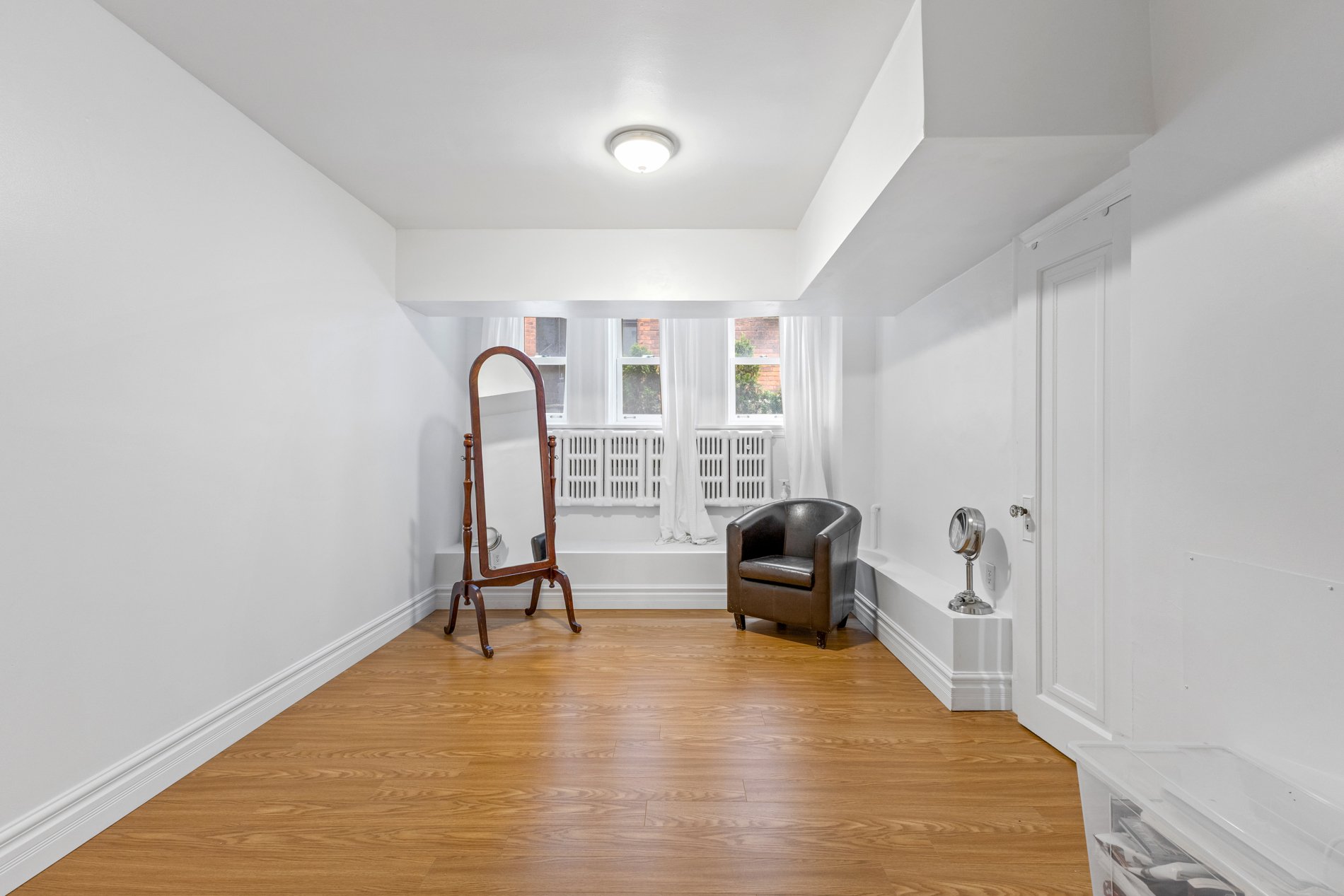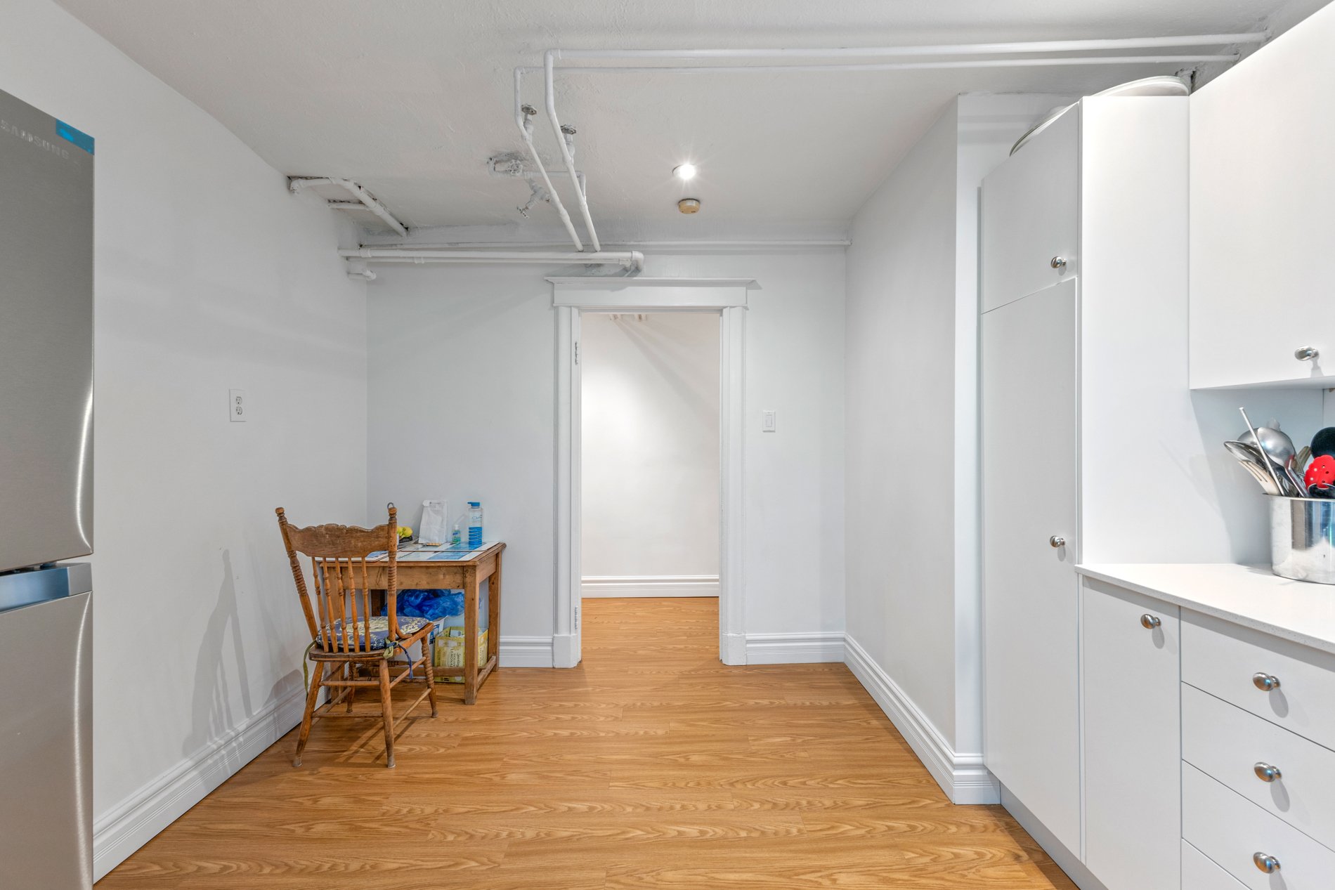 Unité bachelor entièrement fonctionnelle, située au sous-sol du bâtiment principal. Comprend 3 cacs, 1 sdb, un grand salon & une salle à manger. Entrée privée, cuisine & salle de bain récemment rénovées.