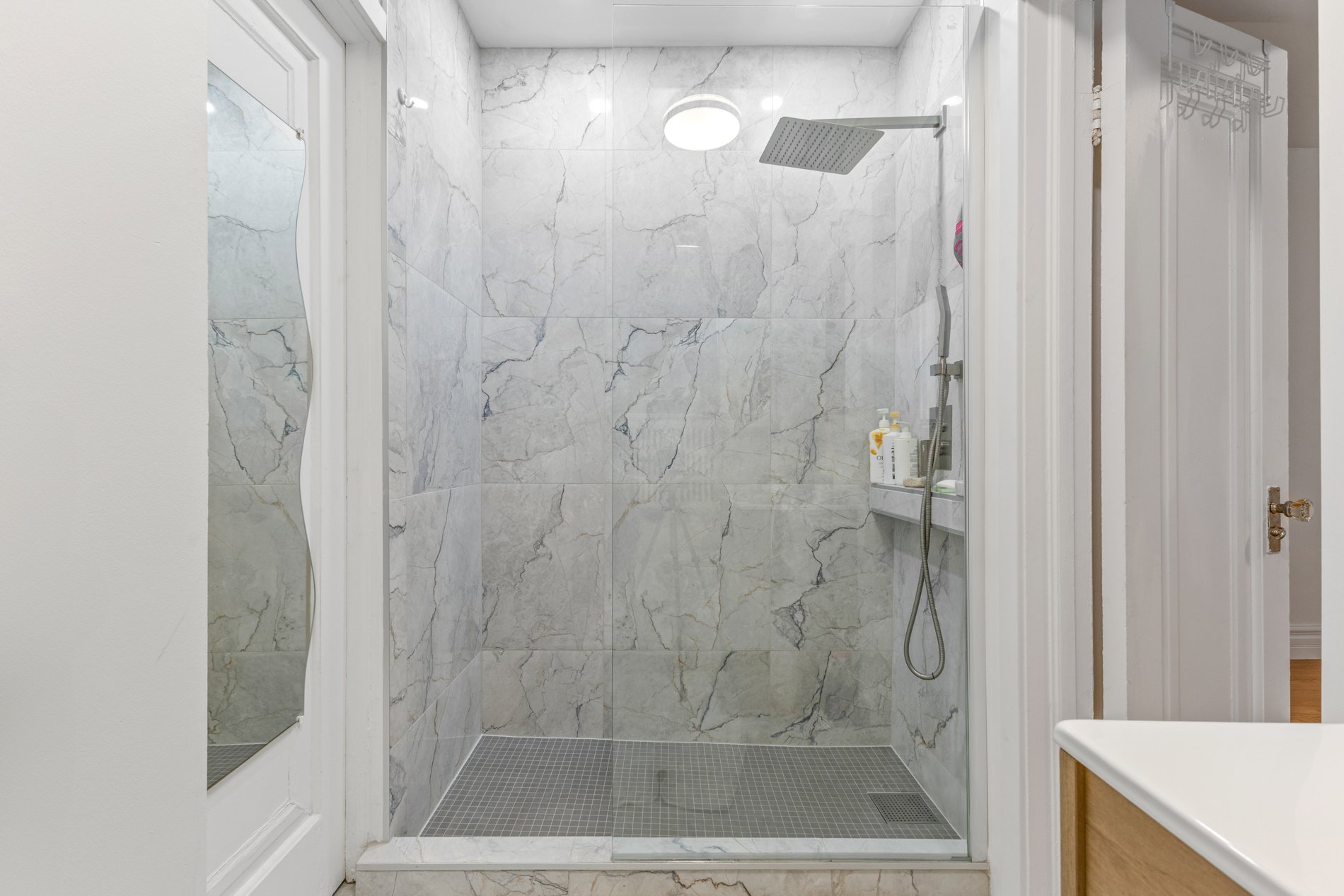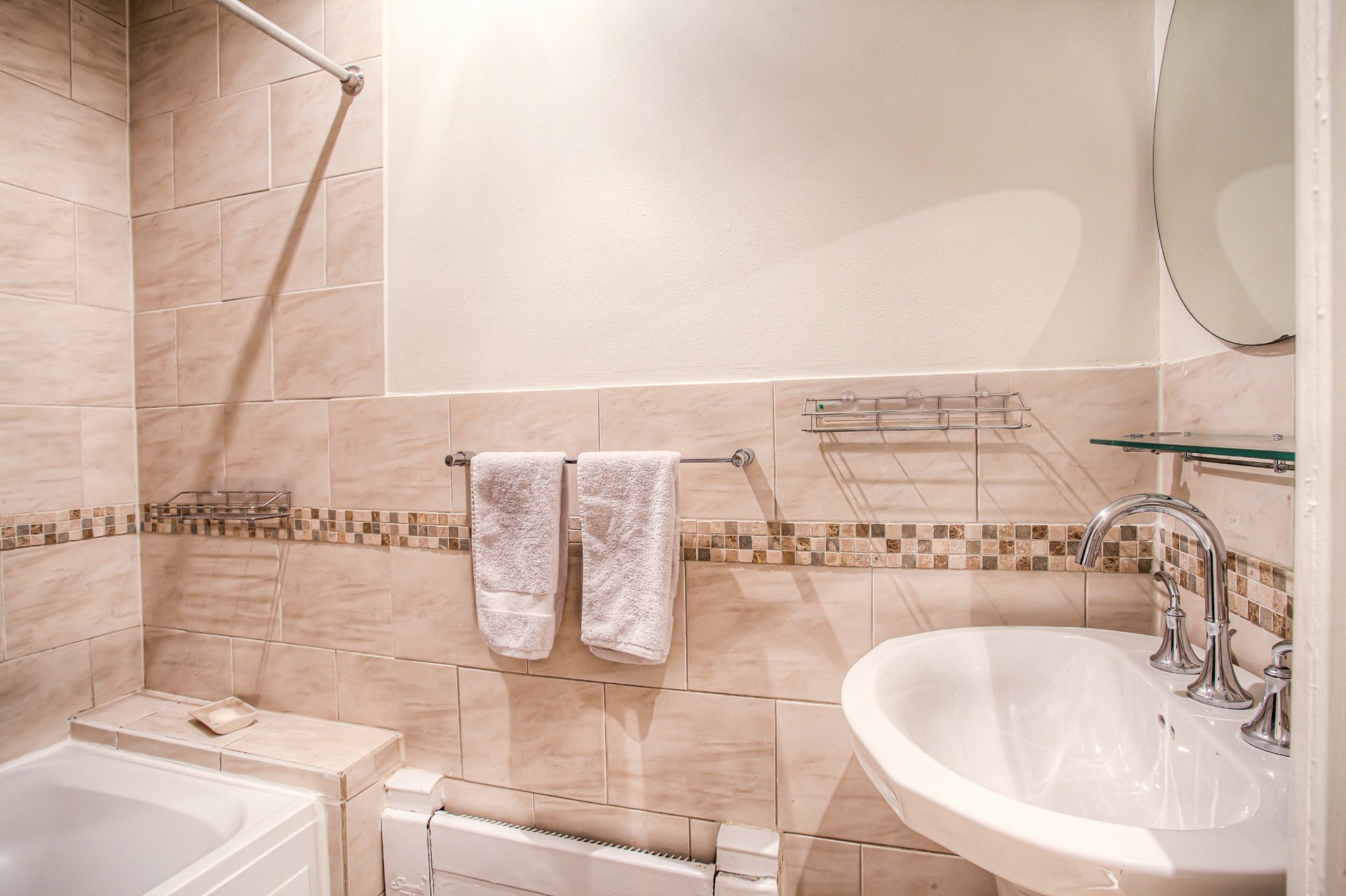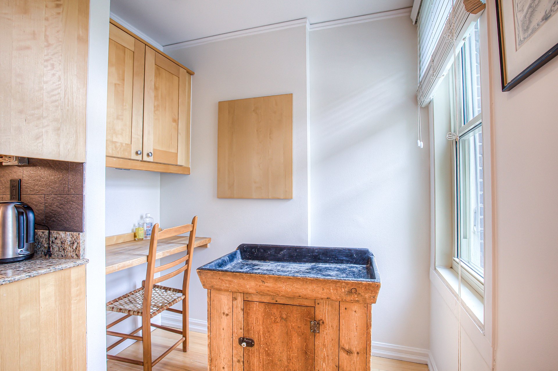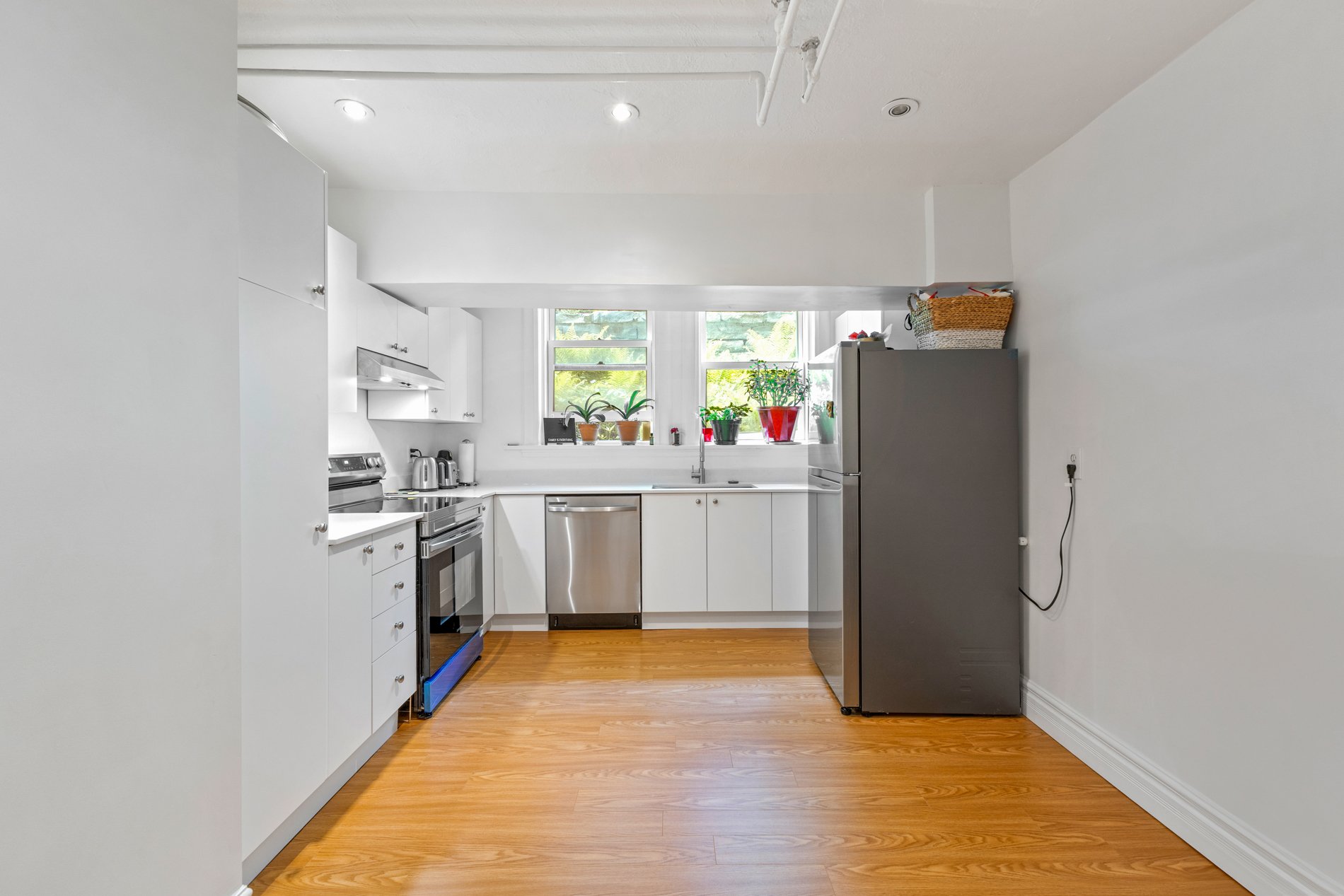 Unité bachelor entièrement fonctionnelle, située au sous-sol du bâtiment principal. Comprend 3 cacs, 1 sdb, un grand salon & une salle à manger. Entrée privée, cuisine & salle de bain récemment rénovées.