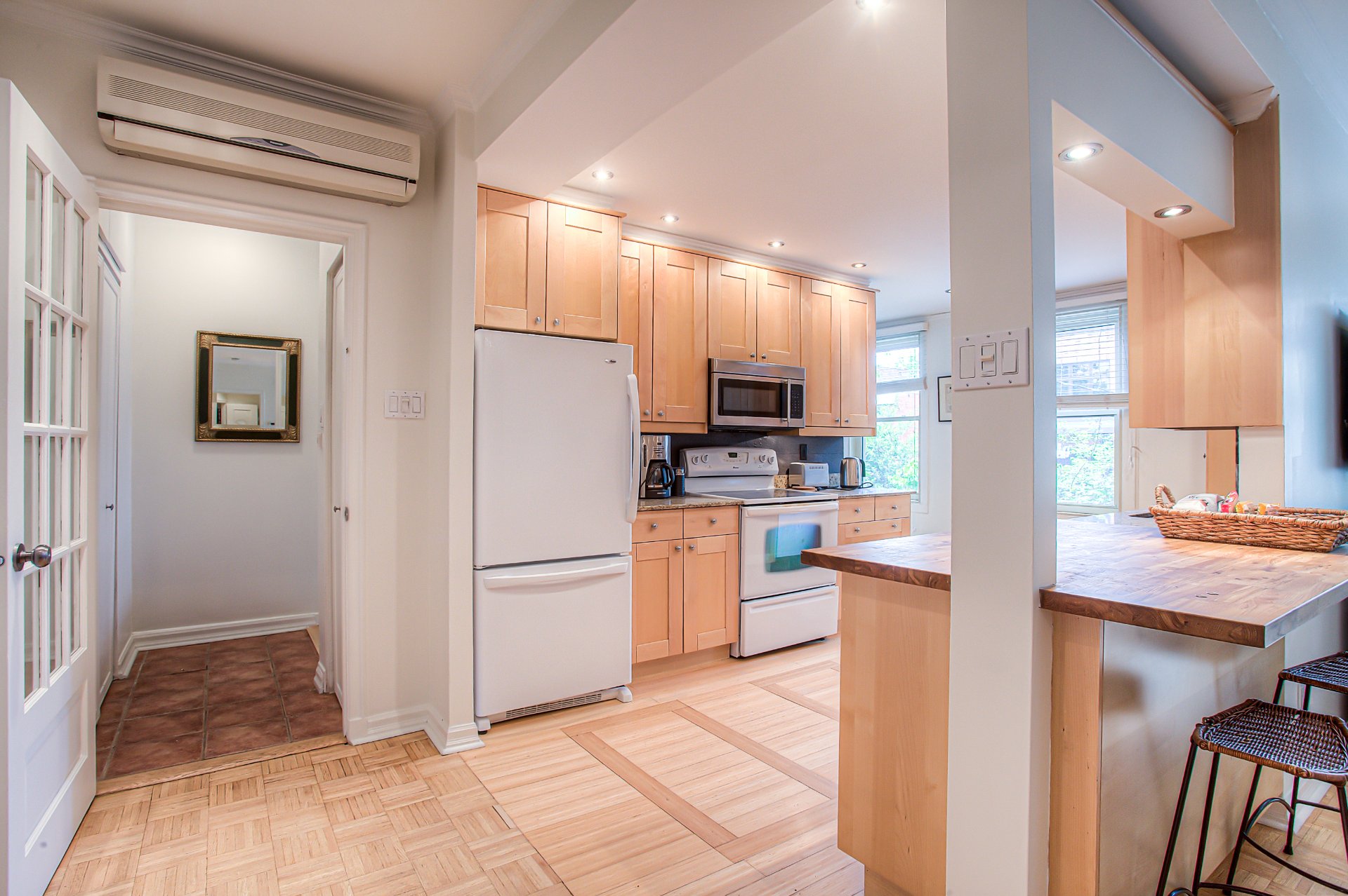 Unité unique, indépendante, de plain-pied, située au-dessus du garage, à l'arrière du bâtiment principal. Cette unité comprend 2 cacs & 1 sdb, une cuisine à aire ouverte, un salon & une salle à manger, ainsi qu'une laveuse/sécheuse. L'unité offre une grande intimité, sa propre entrée au niveau de la rue, & un parfait mélange d'authenticité & de confort moderne.