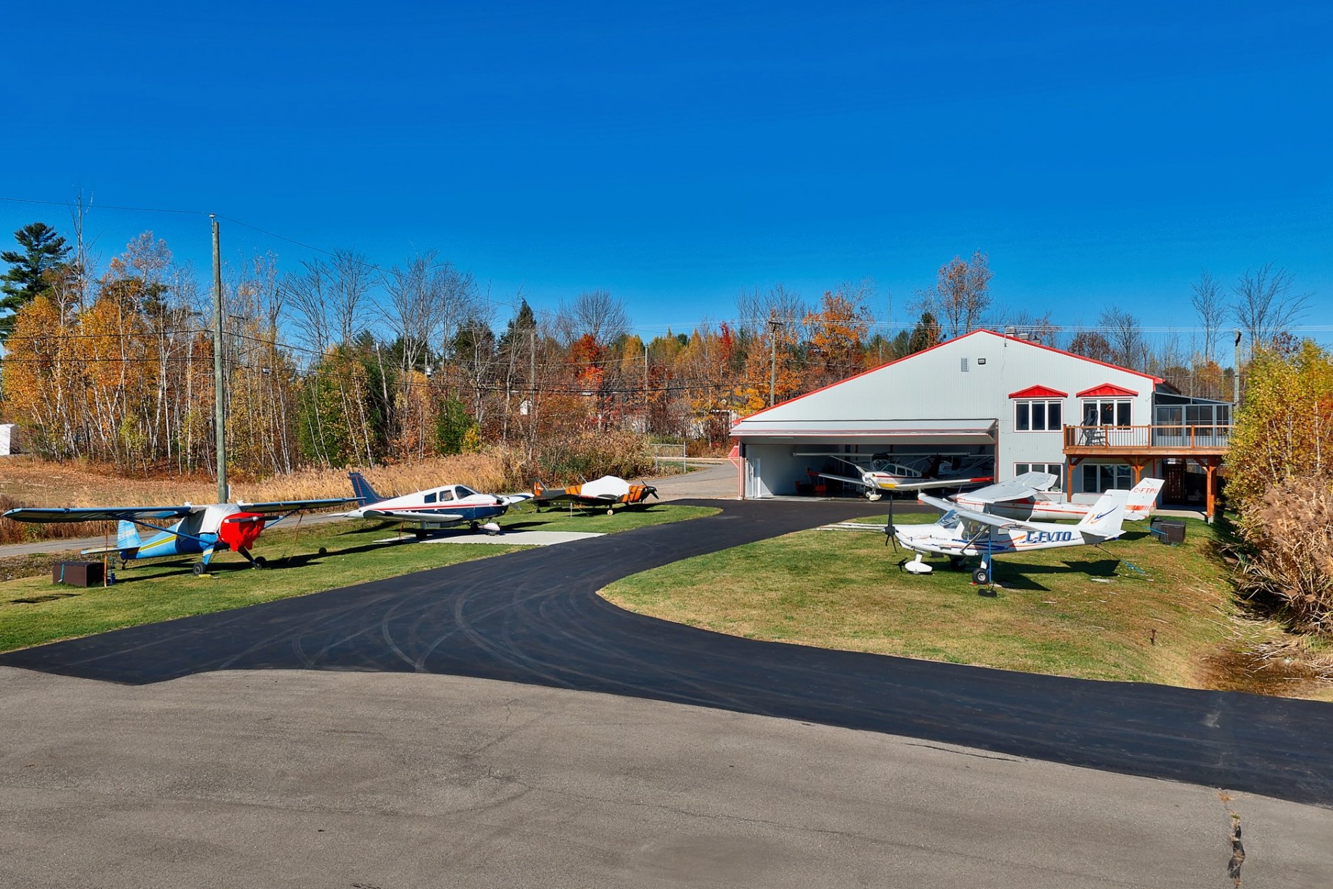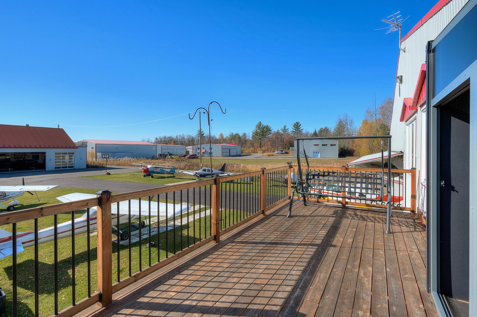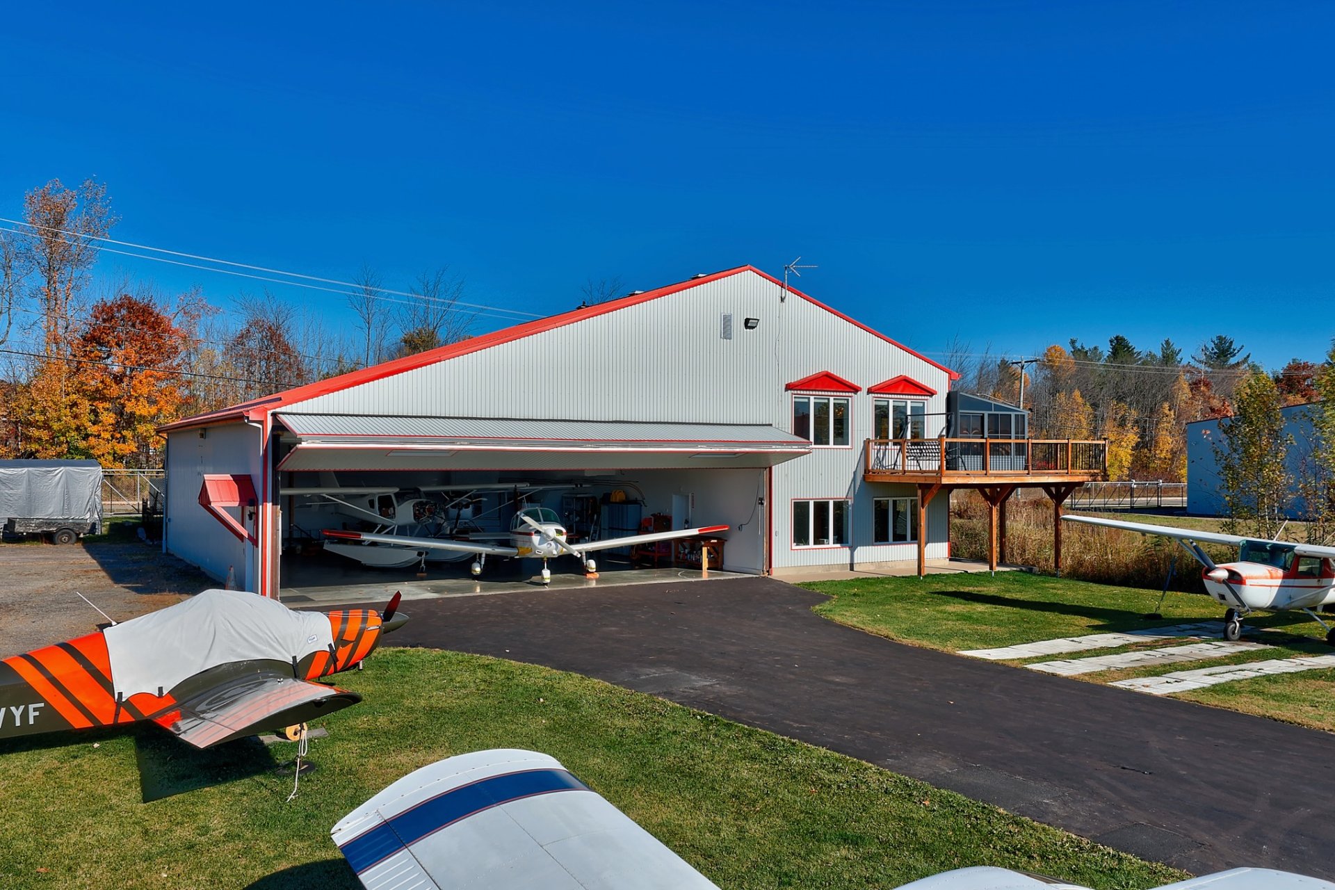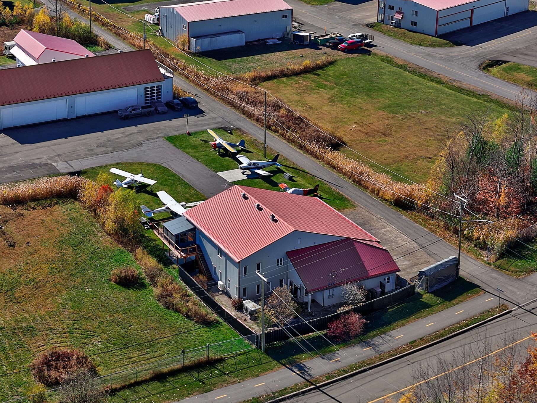 Située directement sur le site de l'aéroport de Lachute avec accès très facile à la route, cette propriété combine un hangar hautement fonctionnel et une résidence moderne baignée de lumière. Le hangar de plus de +/- 3,200 pc, chauffé et isolé, permet de stationner un ou plusieurs appareils à l'intérieur et certainement 6 à l'extérieur. À l'étage, l'espace de vie à aire ouverte offre une ambiance chaleureuse tandis que l'espace bureau au RDC offre une vue direct sur le terrain. Cour aménagée, piscine, terrasse et espace feu ajoutent au confort. Un lieu unique pour passionnés d'aviation en quête d'un mode de vie inspirant.