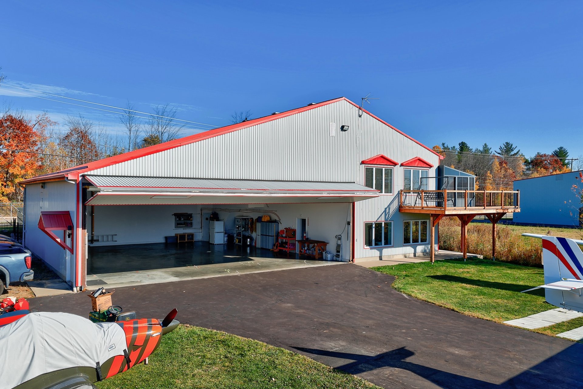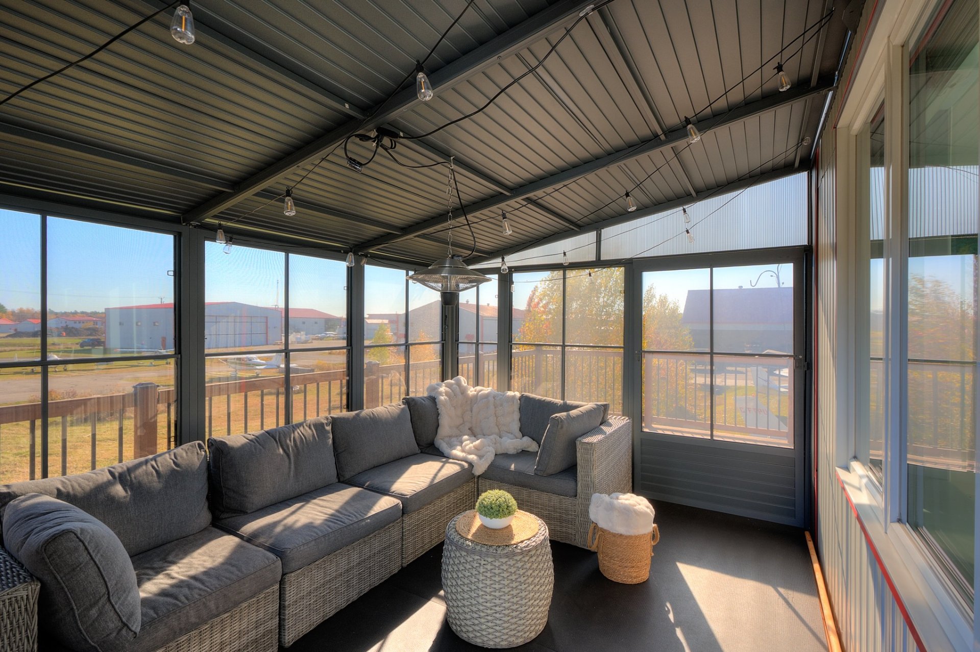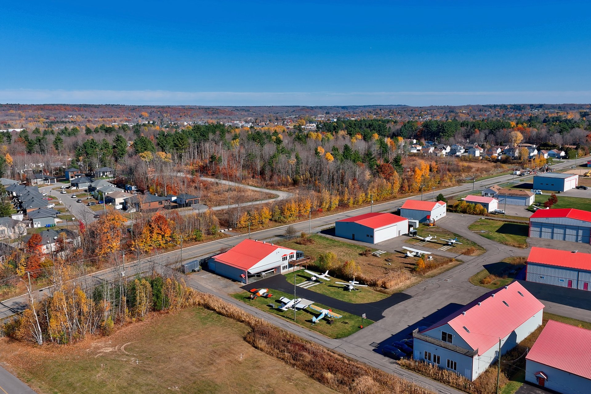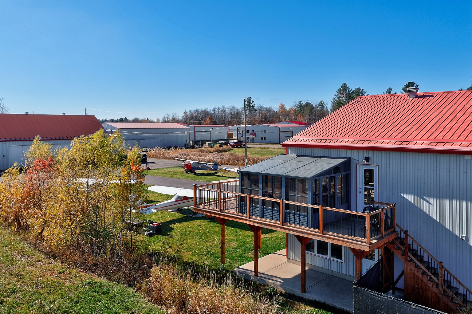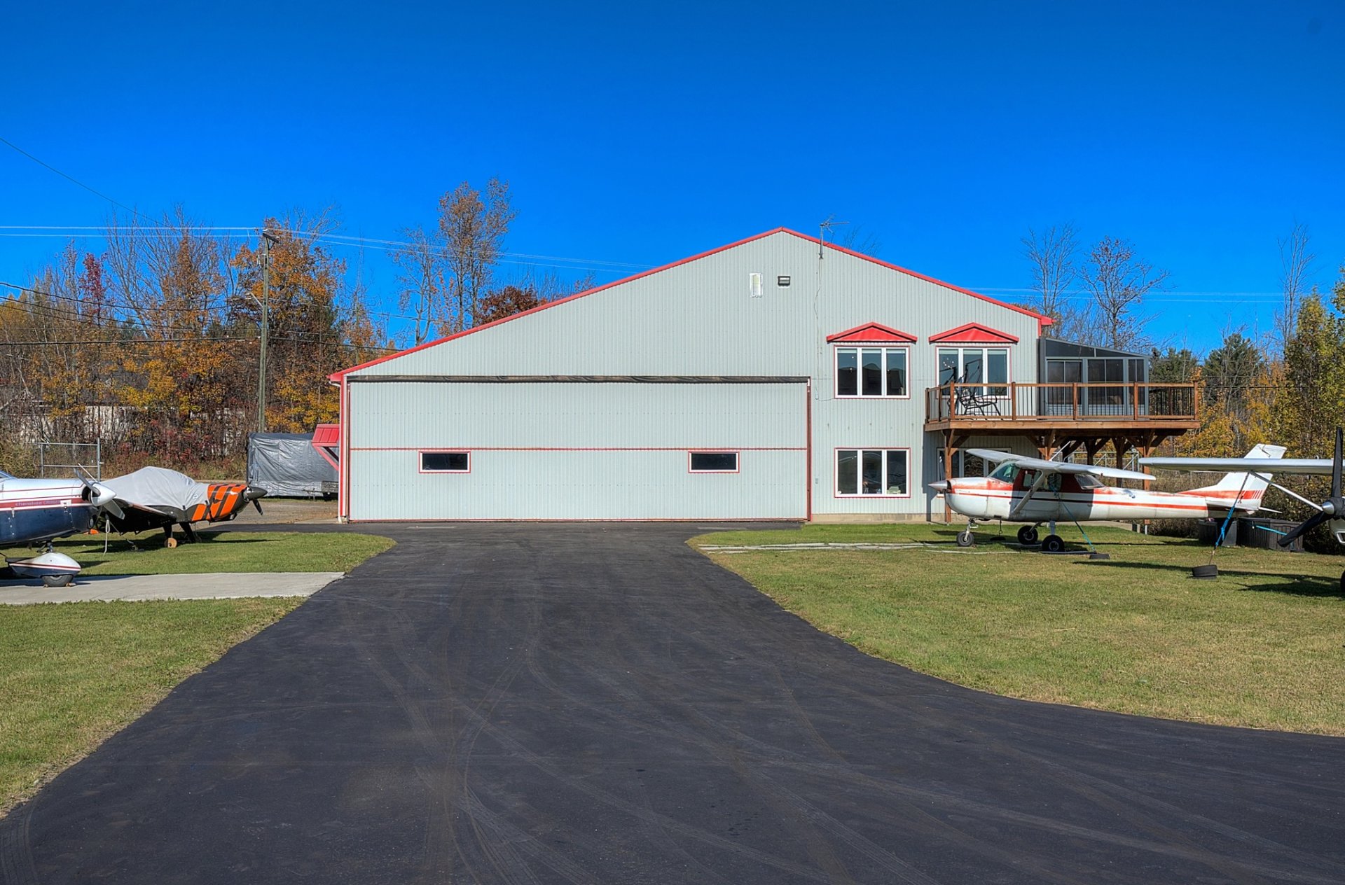 Située directement sur le site de l'aéroport de Lachute avec accès très facile à la route, cette propriété combine un hangar hautement fonctionnel et une résidence moderne baignée de lumière. Le hangar de plus de +/- 3,200 pc, chauffé et isolé, permet de stationner un ou plusieurs appareils à l'intérieur et certainement 6 à l'extérieur. À l'étage, l'espace de vie à aire ouverte offre une ambiance chaleureuse tandis que l'espace bureau au RDC offre une vue direct sur le terrain. Cour aménagée, piscine, terrasse et espace feu ajoutent au confort. Un lieu unique pour passionnés d'aviation en quête d'un mode de vie inspirant.