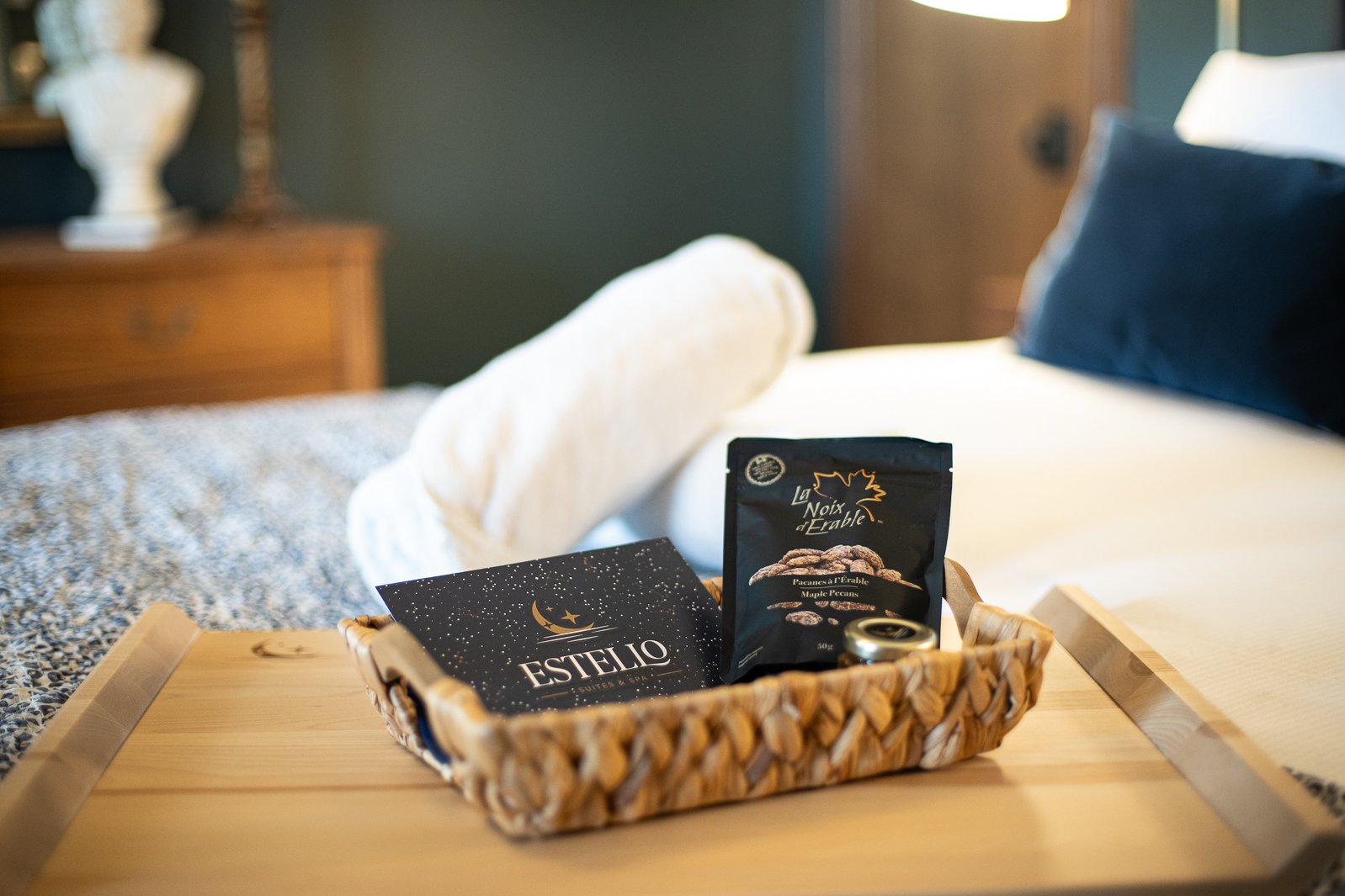 Composé de 12 unités haut de gamme, dont 9 suites de style appartement avec cuisinette et salon, et 3 chambres élégantes, Estello propose une expérience hôtelière raffinée et immersive. Véritable destination bien-être, il offre un spa nordique complet, une piscine au sel chauffée avec vue sur le lac, un sauna hammam, un sauna sec panoramique, une yourte de détente, ainsi qu'une plage et un quai privés.