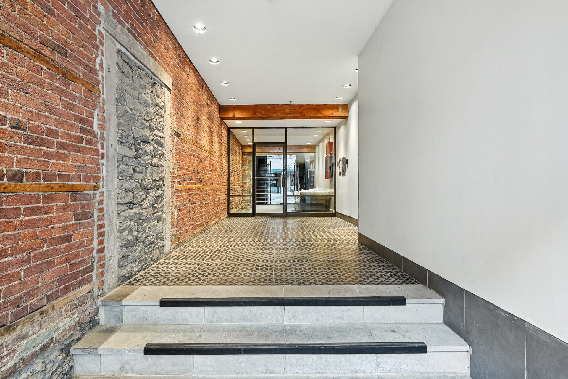 Nichée sur la rue Saint-Paul Ouest, cette unité de coin de 1 410 pi², située dans un immeuble en pierre au cachet historique, offre un rare potentiel résidentiel et commercial. Actuellement utilisée comme bureau, elle séduit par ses murs de briques et pierres apparentes, ses plafonds hauts et ses grandes fenêtres baignant l'espace de lumière. À quelques pas de la place Jacques-Cartier, du Vieux-Port, restaurants, boutiques et galeries d'art, cette propriété est idéale pour un espace de vie unique