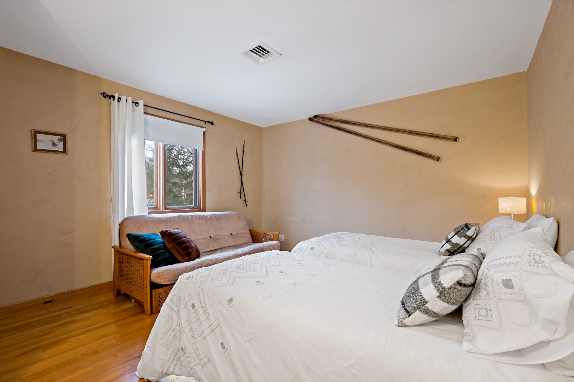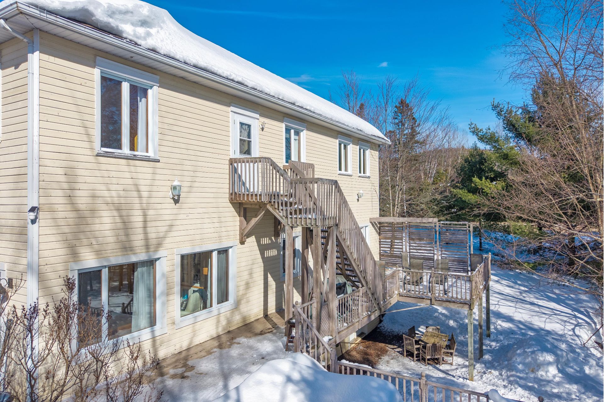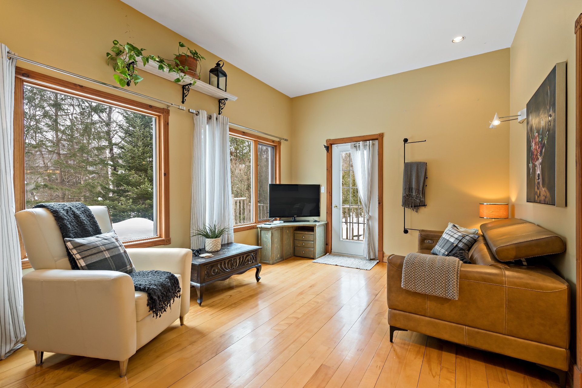 - Effets personnels, quelques décorations et souvenirs, cafetière Jura, 1 table basse en marbre grand salon, 1 table de bout en marbre grand salon. Causeuse marque Fornirama petit salon. Tableau cervidé dans petit salon. Tableau Chapelle Tremblant dans 2e entrée. Lits ajustables dans chambre du logis parental. Mobilier extérieur ensemble conversation 2 places. Table de bout en vitrail grand salon, Banc d'entrée Principale et Banc de quêteux dans le bureau/entrée du rez-de-jardin.