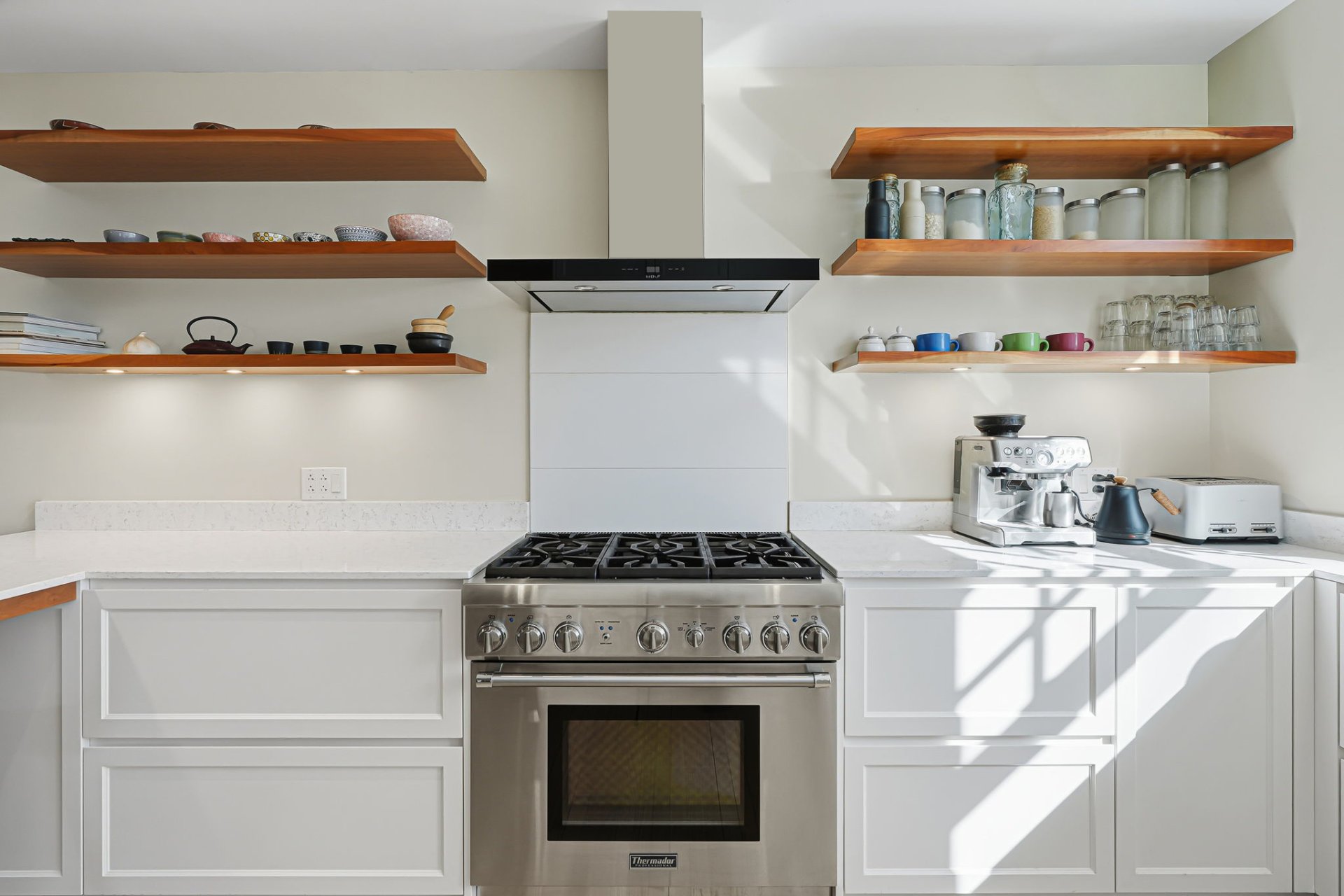 cuisinière au gaz six ronds Thermador, hotte Wolf, lave-vaisselle Thermador et lave-vaisselle Bosch,
