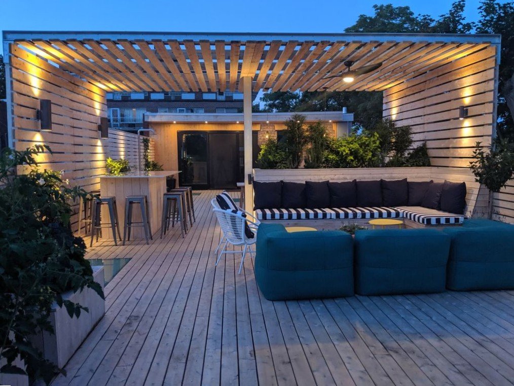 téléviseurs et supports, système d'irrigation Hydrawise sur la terrasse contrôlé par application,