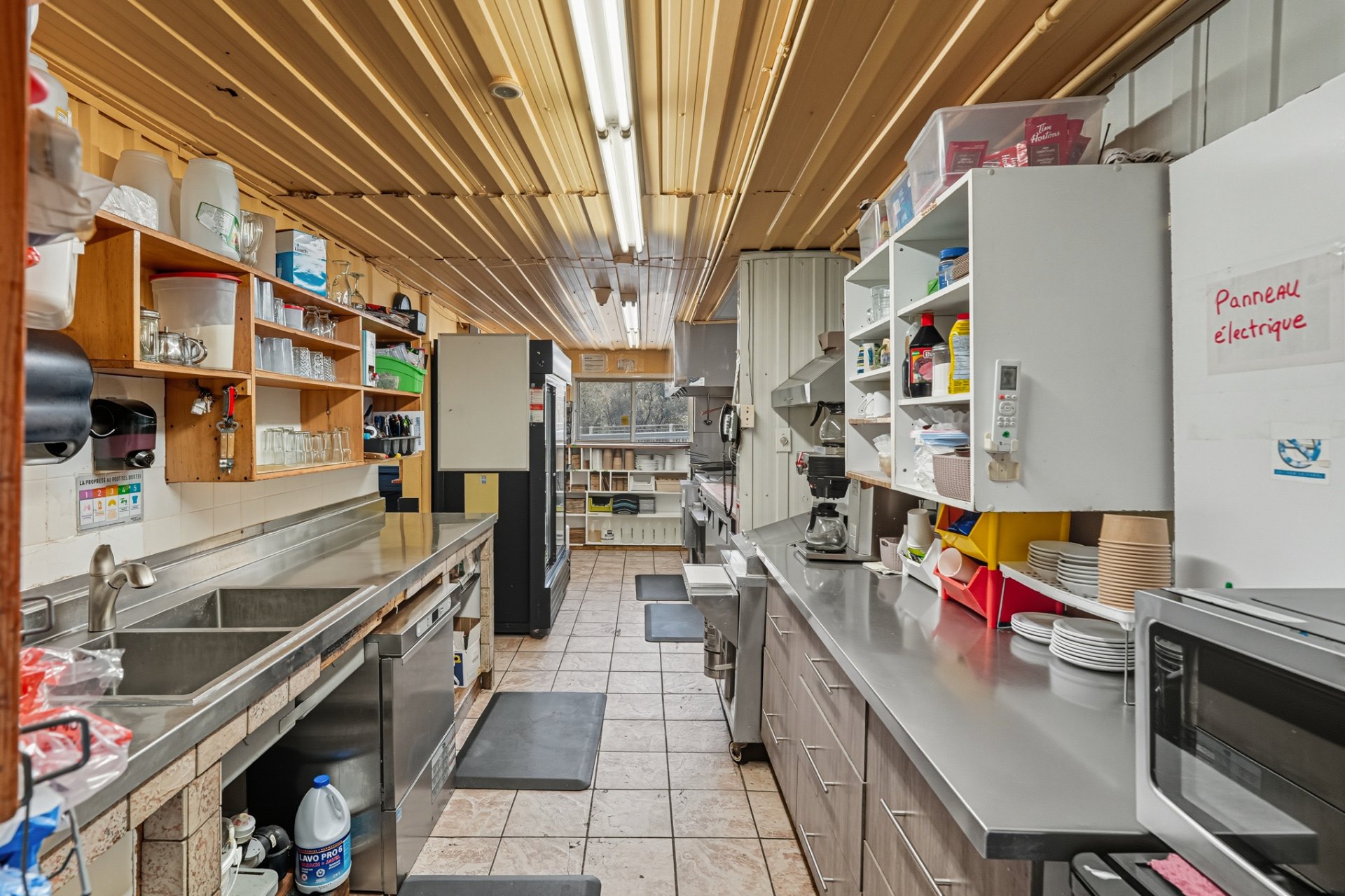 - Liste d'équipements du restaurant :Génératrice au diesel, chambre froide extérieure, 1 réfrigérateur commercial, 9 congélateurs, 1 poêle-fourneau au propane, 1 lave-vaisselle commercial, 1 cafetière commerciale, 1 cuiseur vapeur (steamer), 1 réfrigérateur de comptoir, 1 plaque de cuisson au propane, 1 friteuse au propane, ainsi que verres, assiettes et ustensiles.Tous les équipements sont fonctionnels mais vendus sans garantie légale.