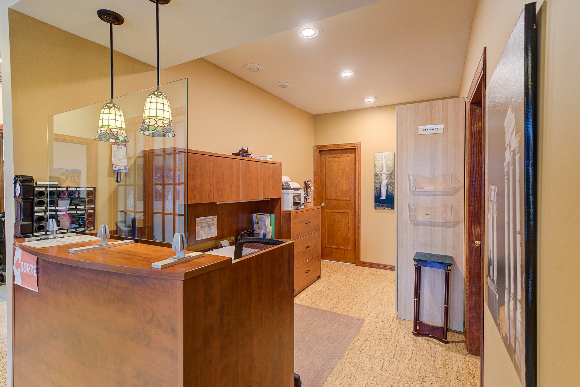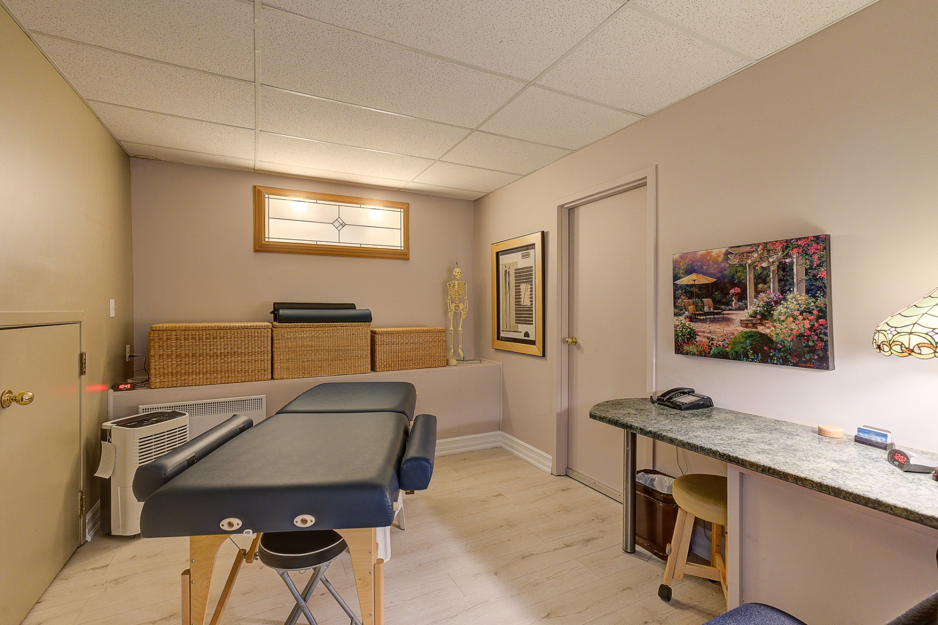 La propriété comprend huit bureaux fermés, une aire d'attente avec réception, trois salles de bain, une cuisine, une salle de conférence ainsi que plusieurs espaces de rangement. Un stationnement extérieur permet d'accueillir jusqu'à six véhicules, un atout important pour la clientèle et les professionnels.