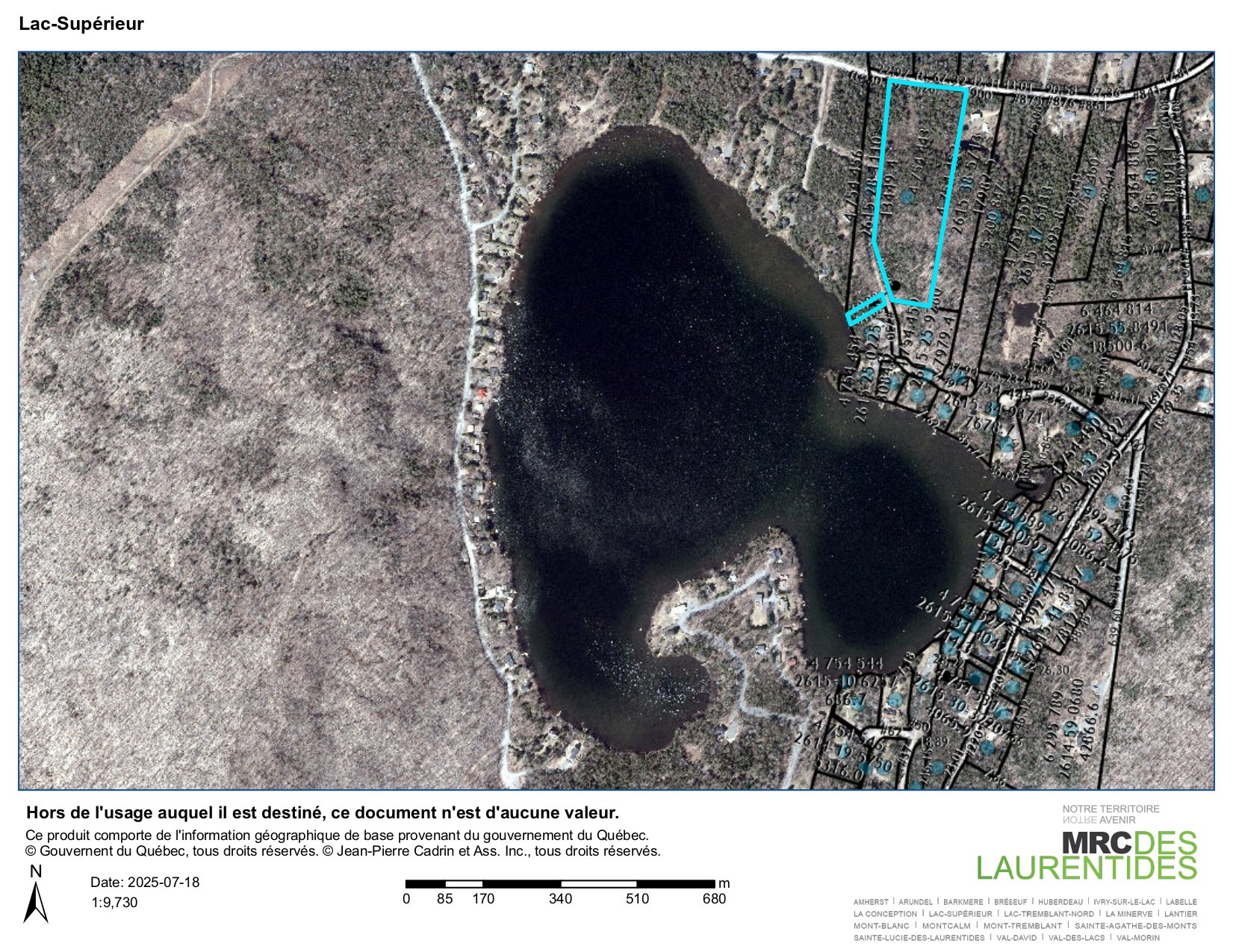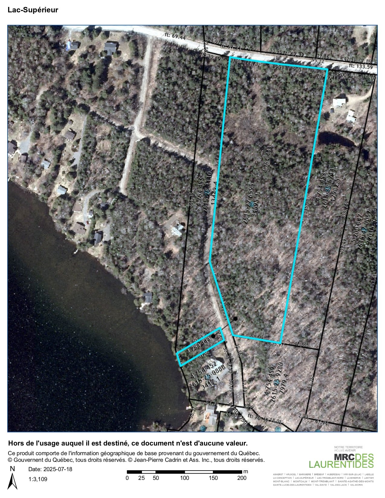 Découvrez ce vaste terrain exceptionnel de près de 9 acres, bordé par les eaux limpides du lac Gauthier. Profitez d'un bord de l'eau privé en pente douce avec fond de sable, plein sud et facile d'accès, parfait pour la baignade, le kayak, la pêche ou la détente. Ce plan d'eau tranquille autorise les moteurs électriques et est ensemencé de truites. Le terrain boisé est doté d'une topographie favorable, idéal pour y construire le chalet de vos rêves ou une résidence principale. Du haut de la propriété, vous bénéficierez d'une vue spectaculaire sur les montagnes, incluant le Mont-Tremblant une combinaison unique de lac et panorama! Voir Addenda