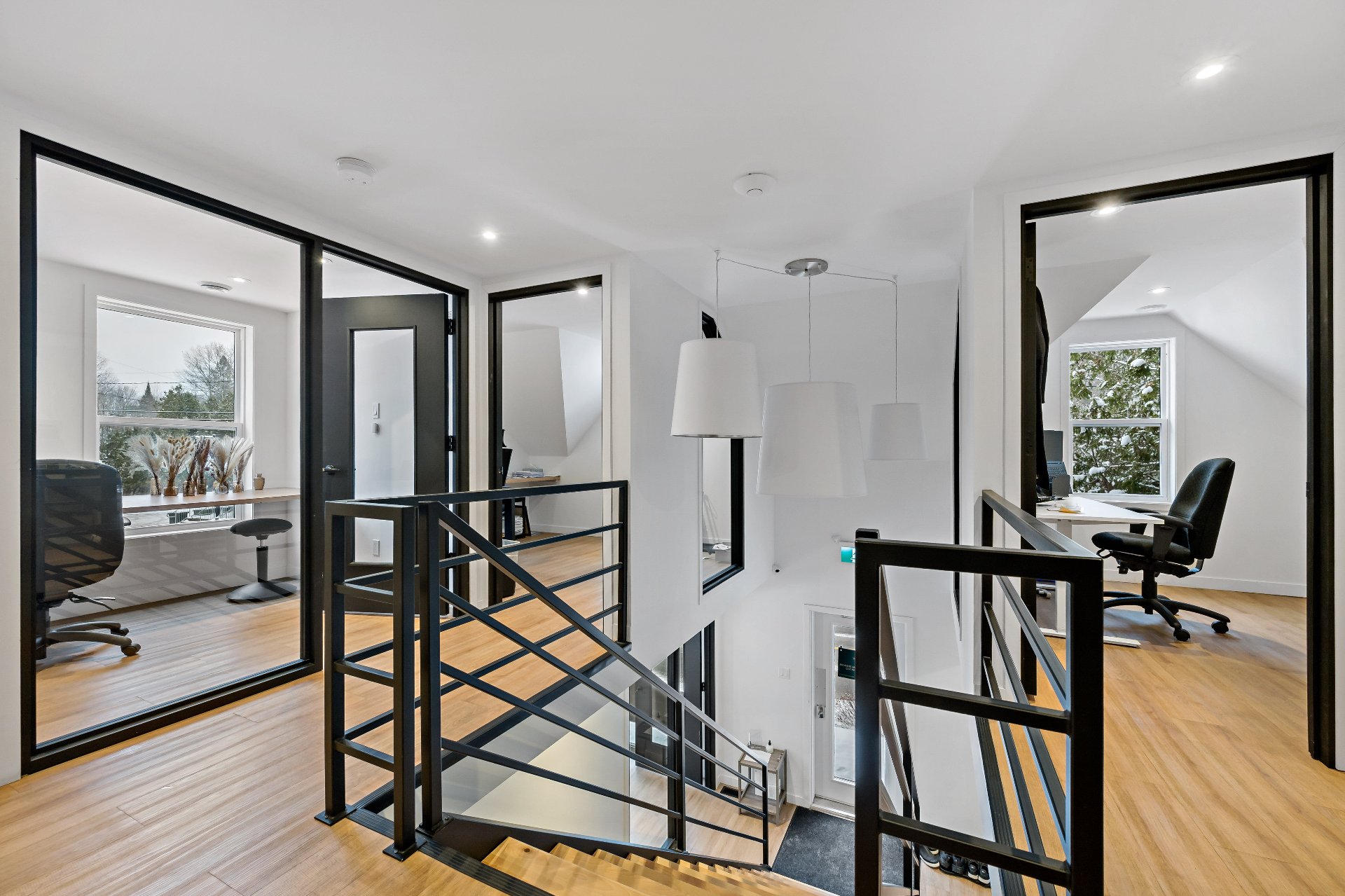 Cet espace commercial maintenant disponible à la location est idéalement situé et ce en plein coeur du vieux village de Tremblant. D'une superficie de 2250 pieds carrés, ce lieu propose des bureaux fermées et vitrées ultra moderne avec beaucoup de fenestration. Cet espace comporte 12 pièces fermées dont 4 par étage incluant pour certaines du mobilier de bureau. De plus, 3 stationnements sont à votre disposition. Ce local destiné à des activités économiques, vous permettra de vous dédier pleinement à vos occupations.