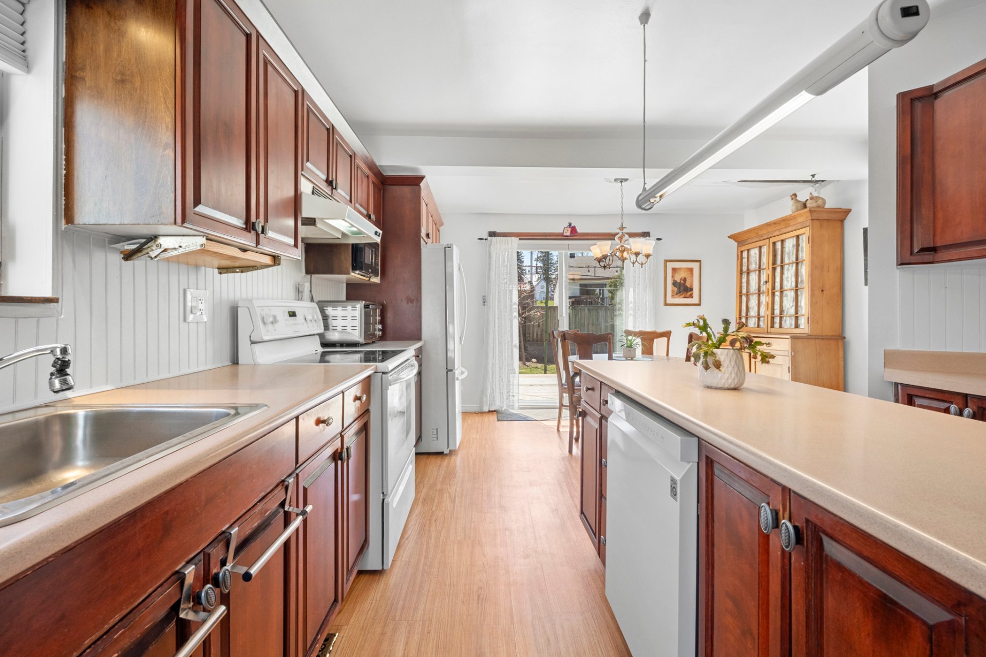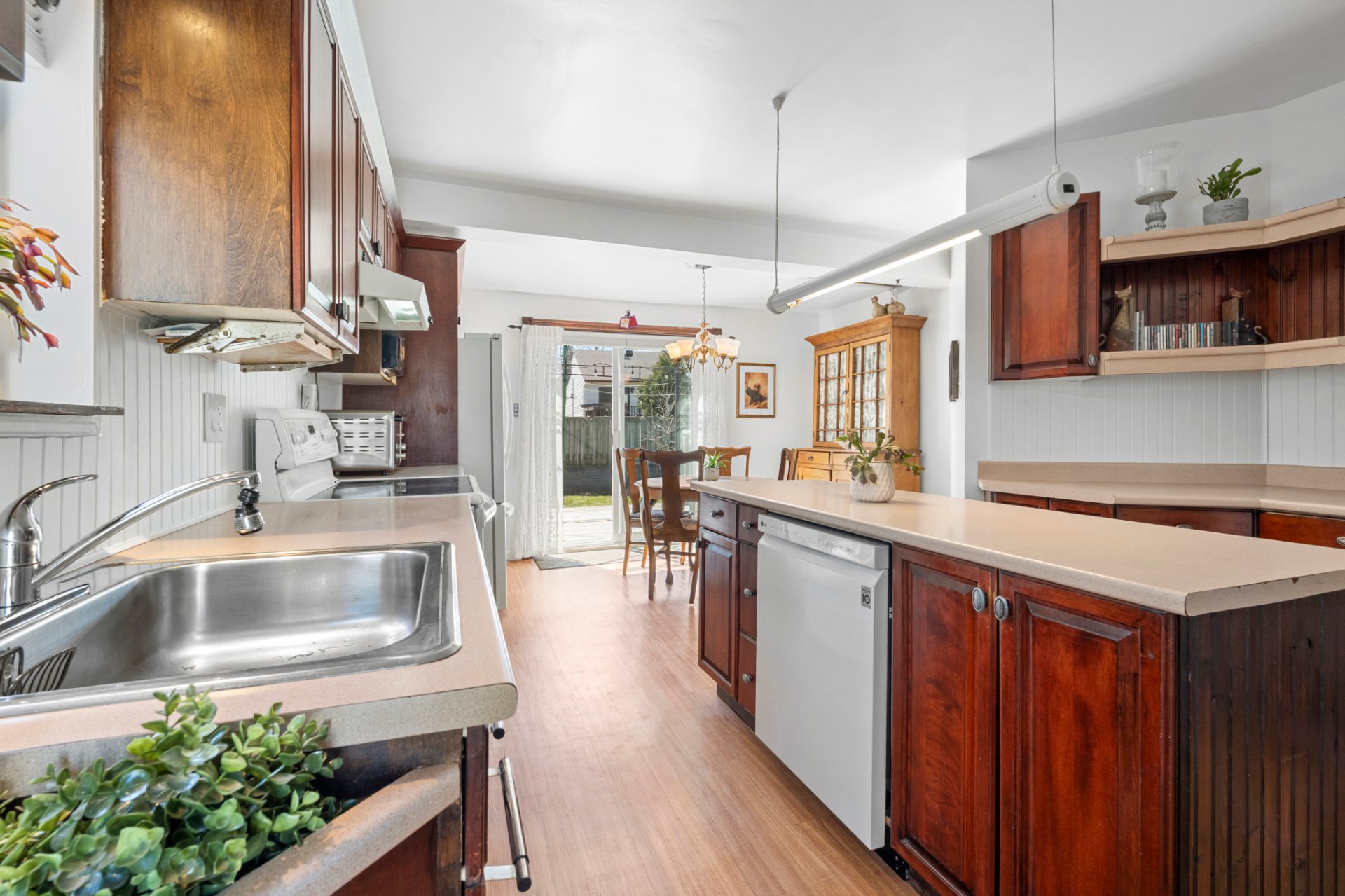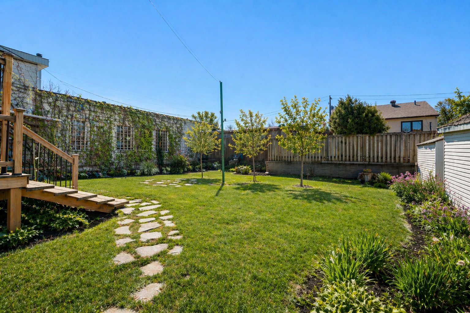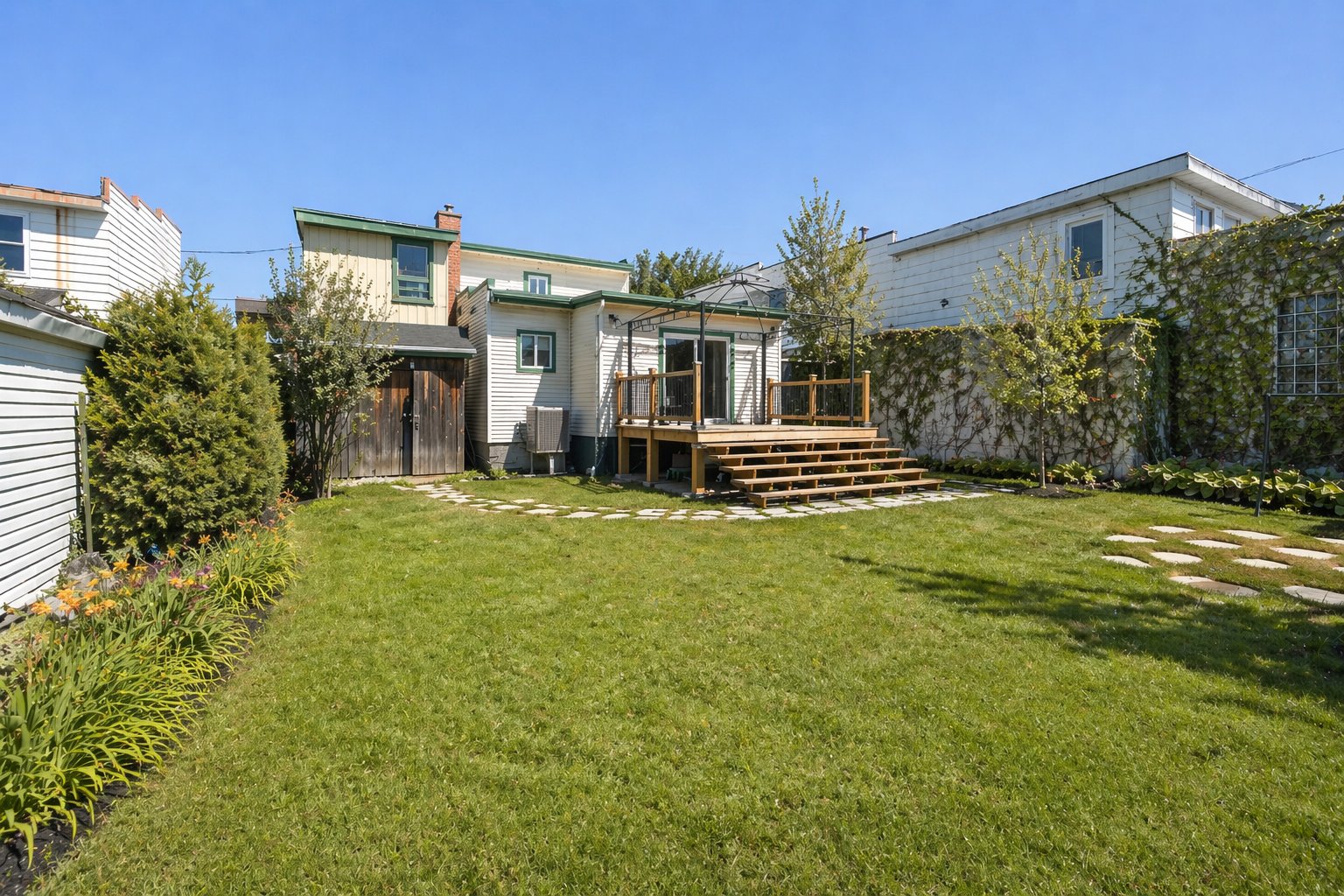 À l'extérieur, vous trouverez une grande cour arrière intime et aménagée, parfaite pour profiter de la belle saison, ainsi qu'un spacieux cabanon en bois. Stationnement pouvant accueillir jusqu'à trois petites voitures ou deux de taille moyenne.